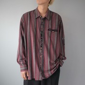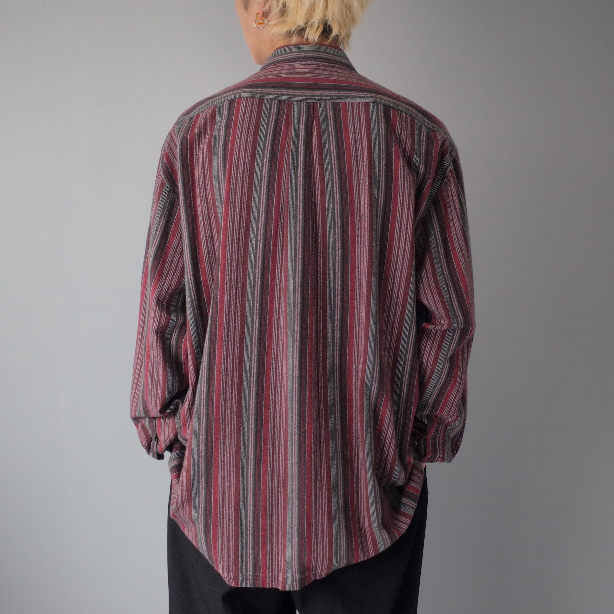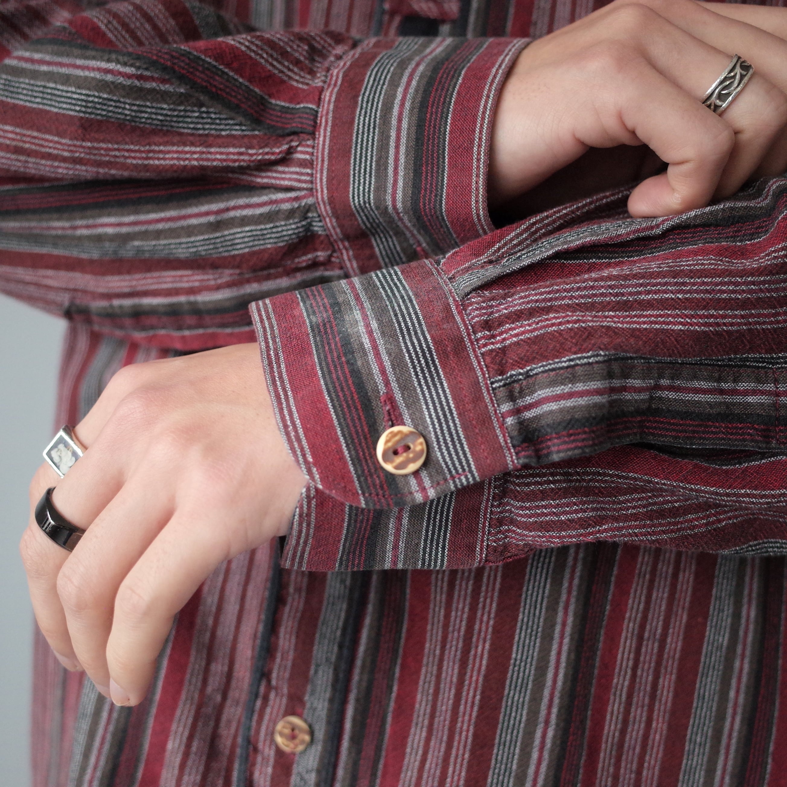 燻んだ赤や控えめなグレー色で構成されたストライプ柄が