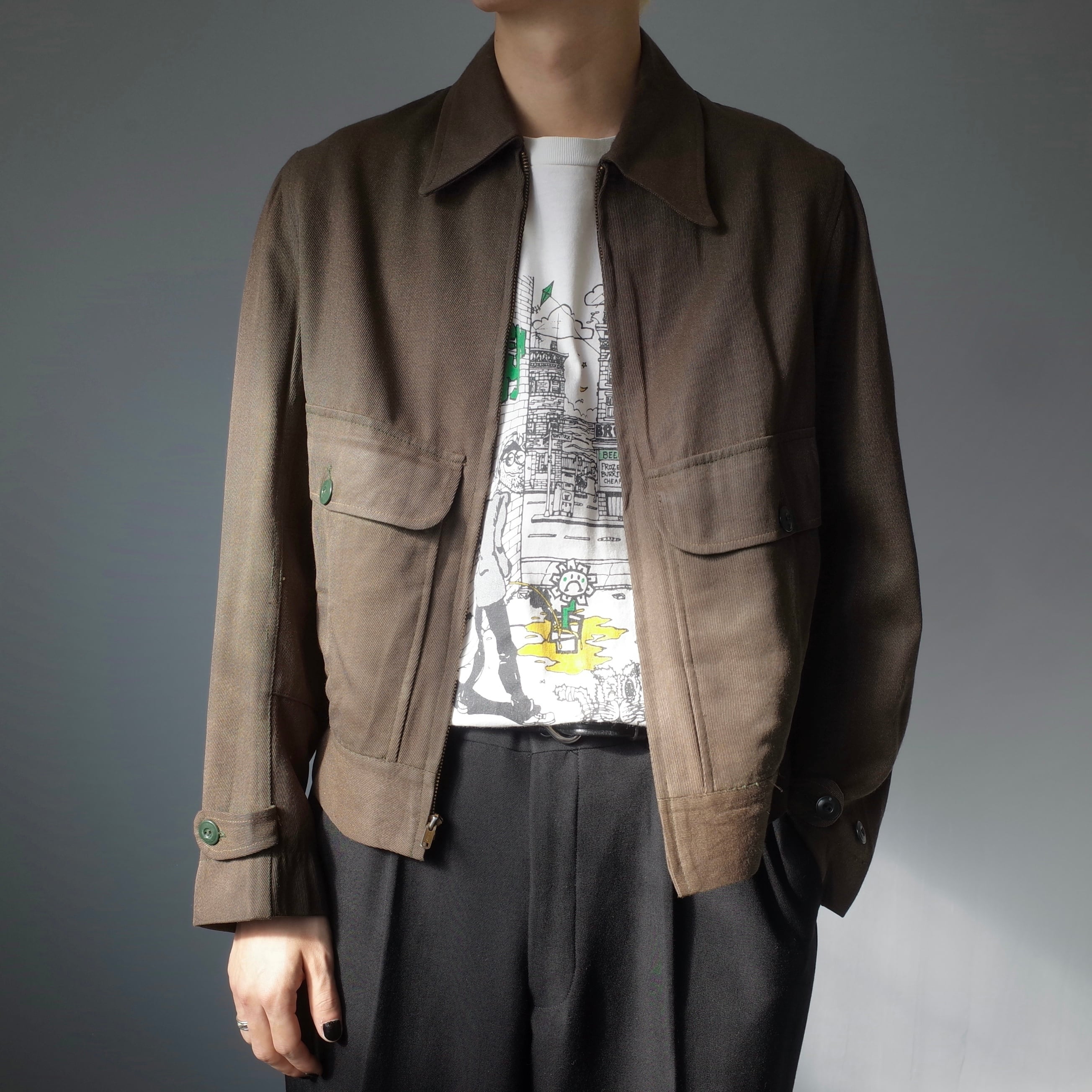 【VINTAGE】 “HERCULES” 50’s~ Wool Gabardine Zip-Up Jacket
