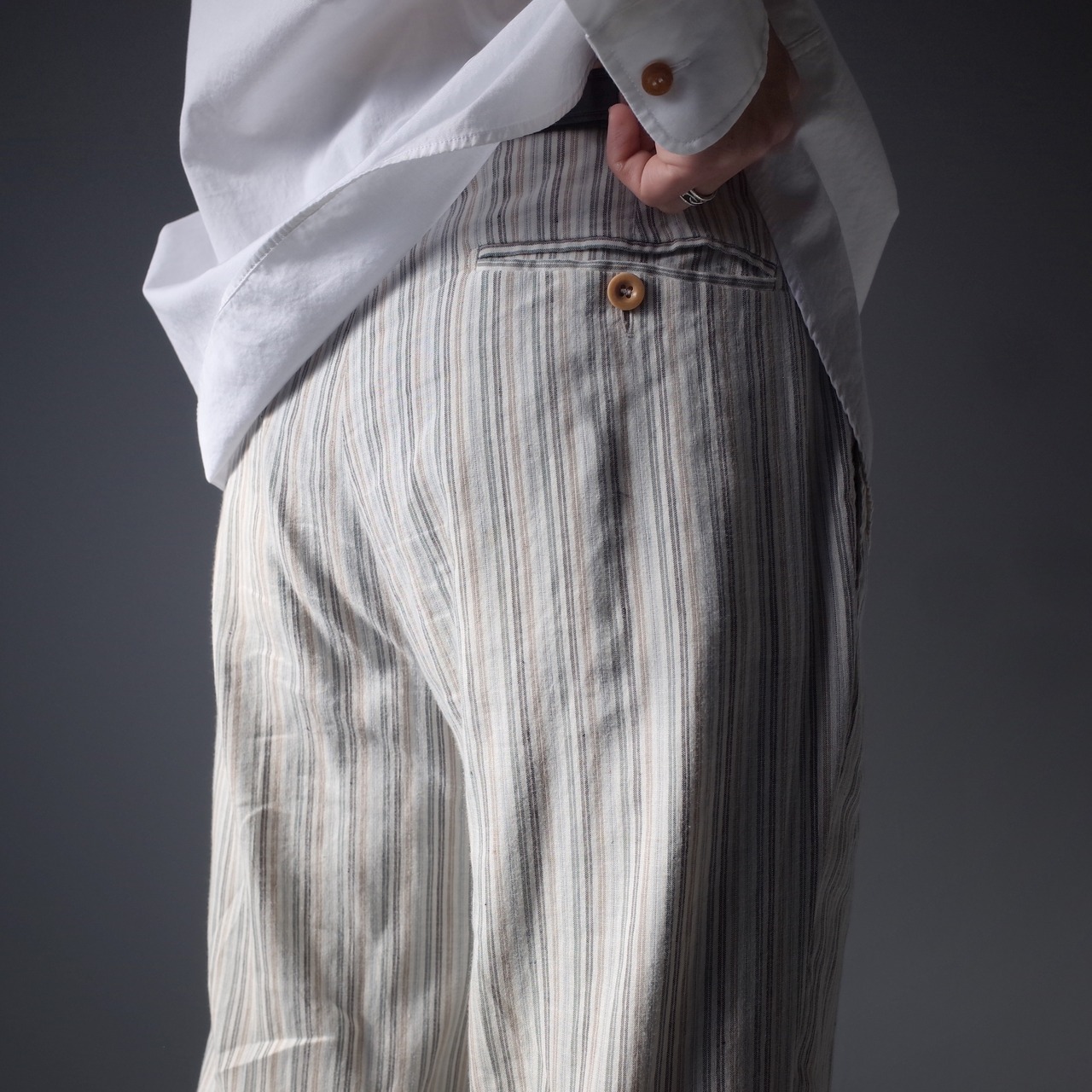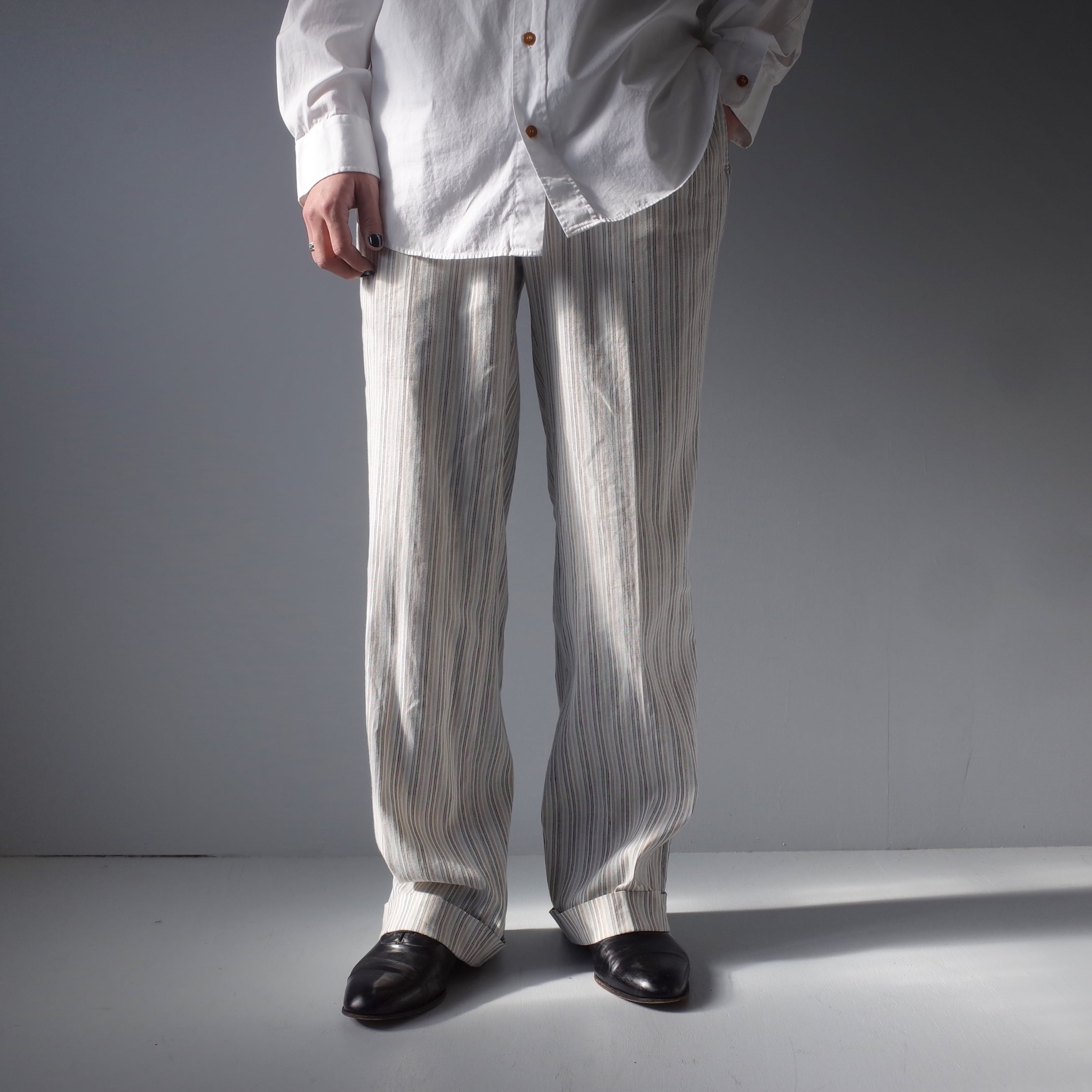 SIZE 50、ウエスト 83cm、股上 28.5cm、股下 82.5cm、わたり幅 33cm、総丈 108cm