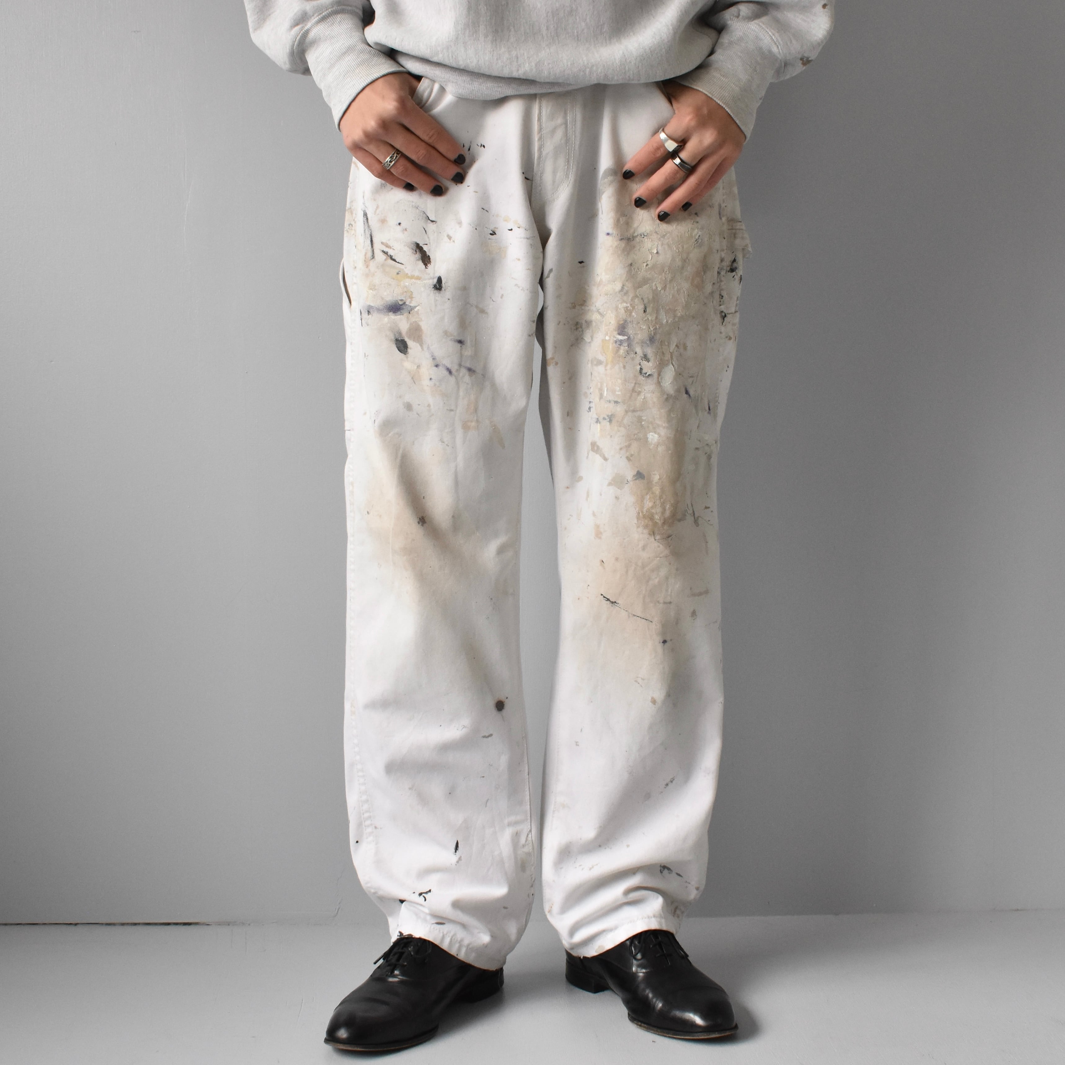 今回も"Dickies"の真っ白な一本に、仕事やDIYによってペンキが飛んだワークパンツの魅力が詰まっている逸品。