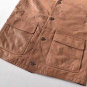きめ細かなシボの表情が魅力の厚みある一枚で、滑らかで柔らかく身体に馴染みながら、しっかりと重量があり、着用時には包み込まれる様な安心感を覚えます。是非。