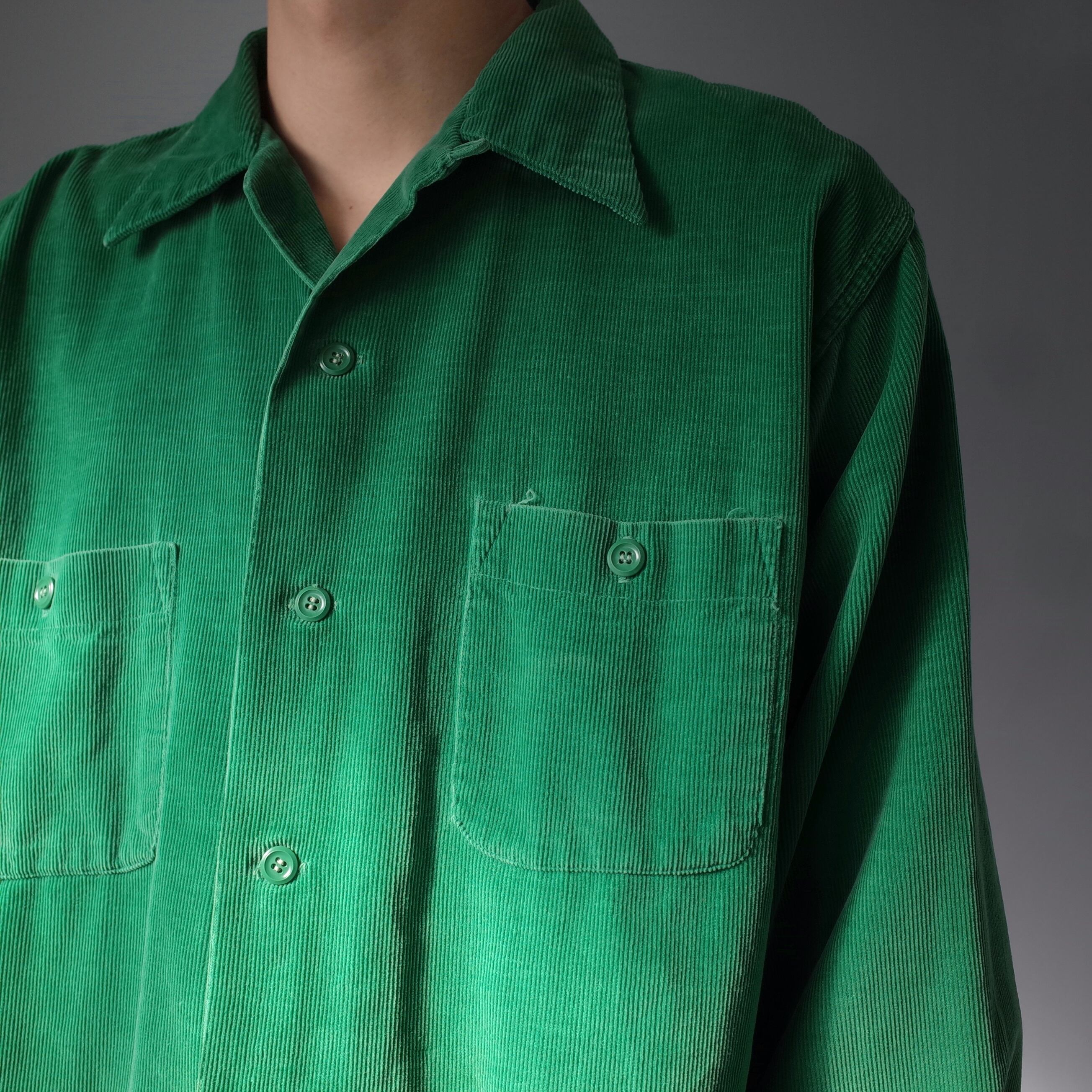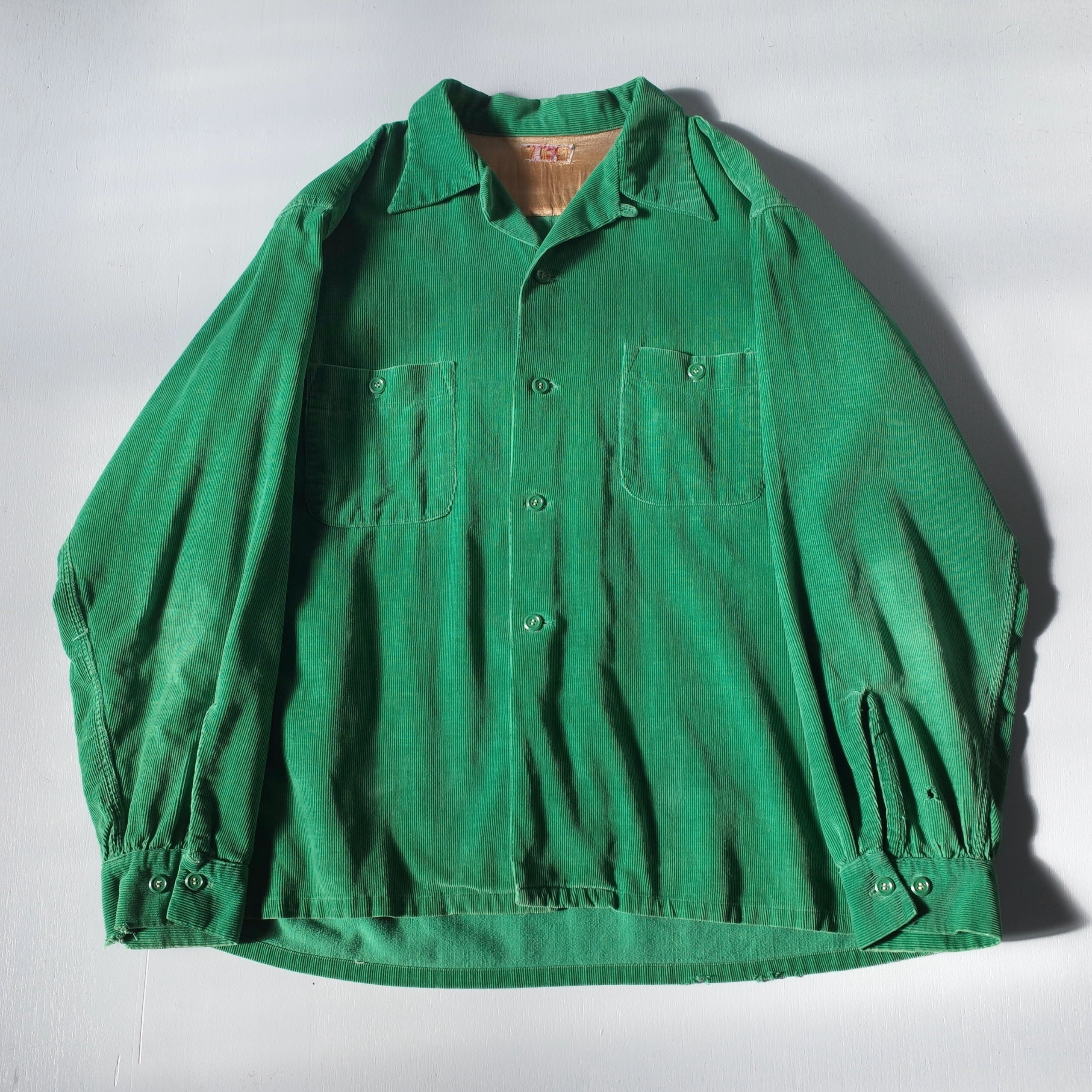 【VINTAGE】 50's~ Corduroy Fabric Open Collar Shirt l/s