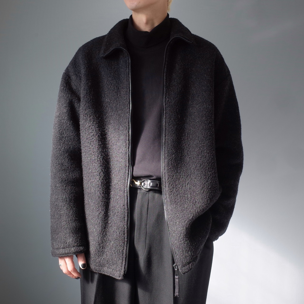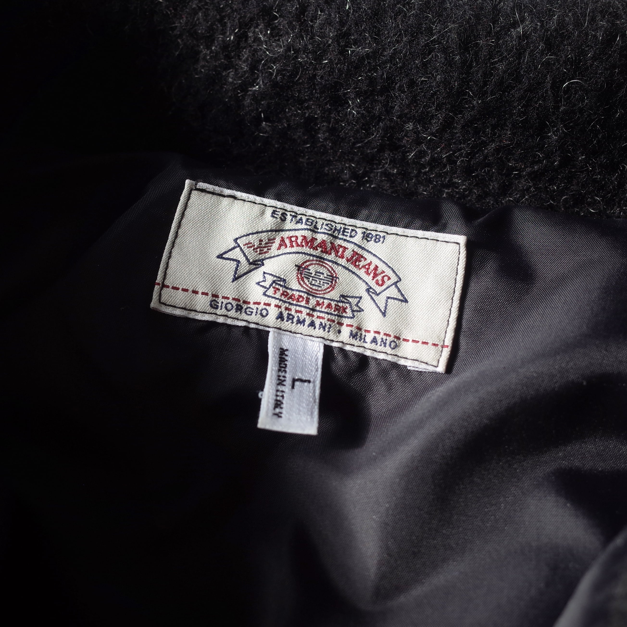 “ARMANI JEANS” Made In ITALY Wool Fabric Zip-Up Bomber Jacket