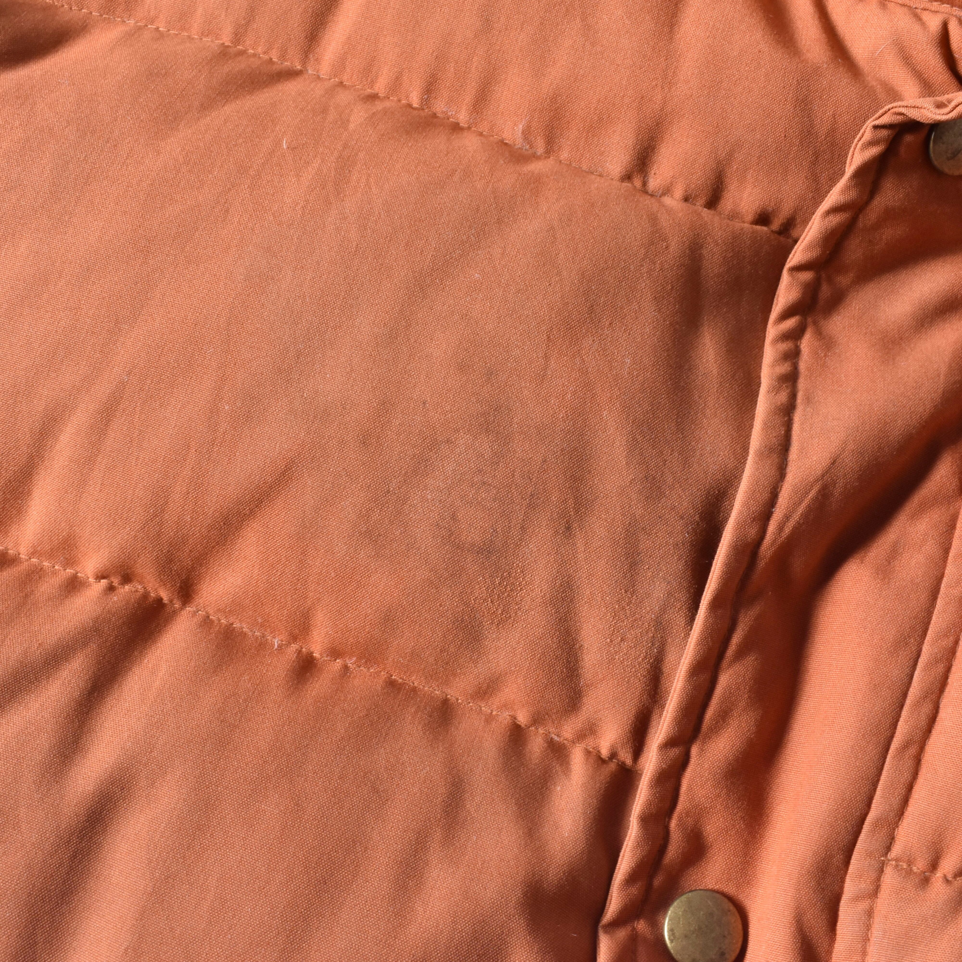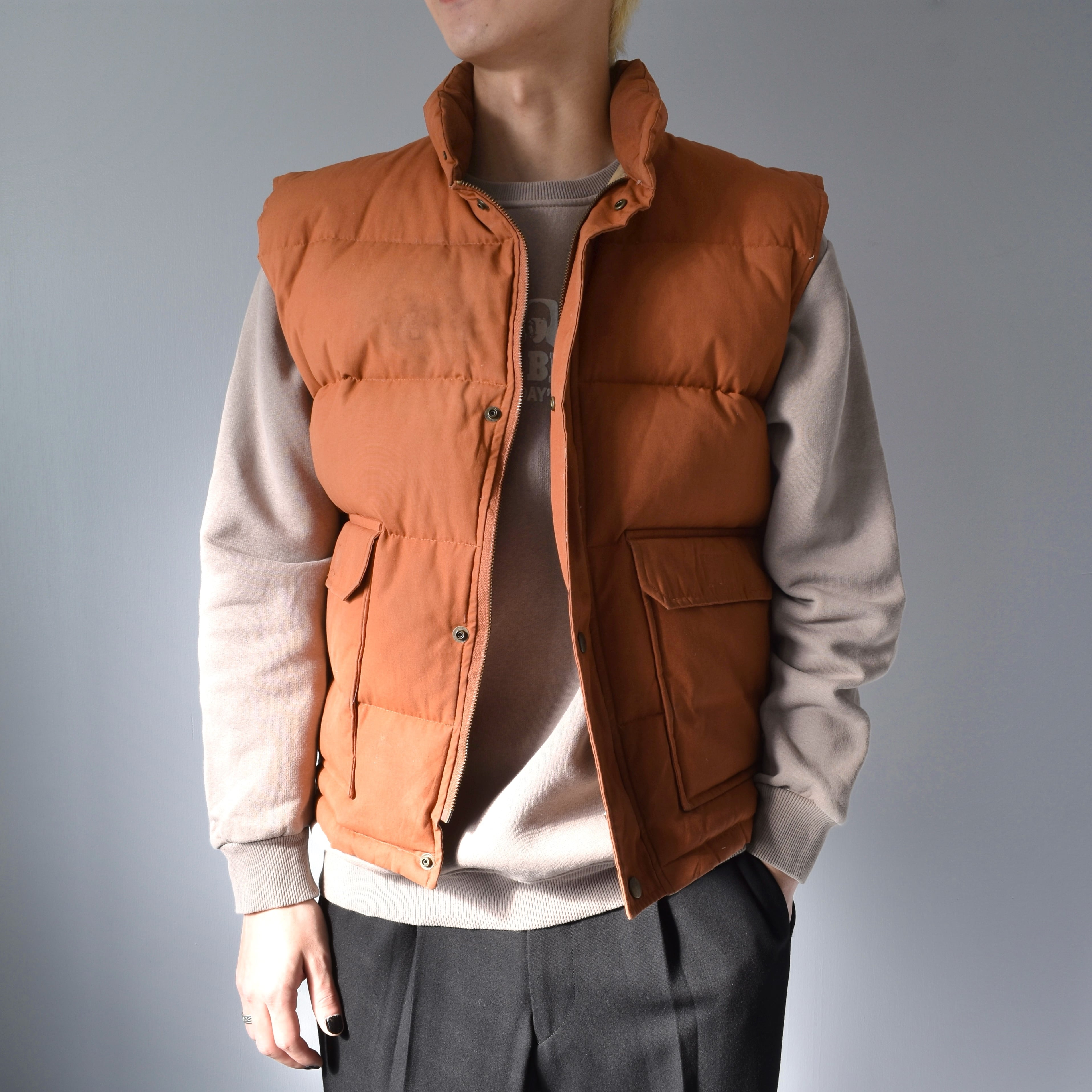 パファーベスト。光沢感の少ないマットな生地感が身体に