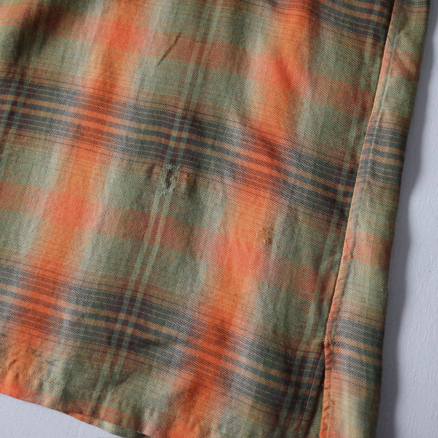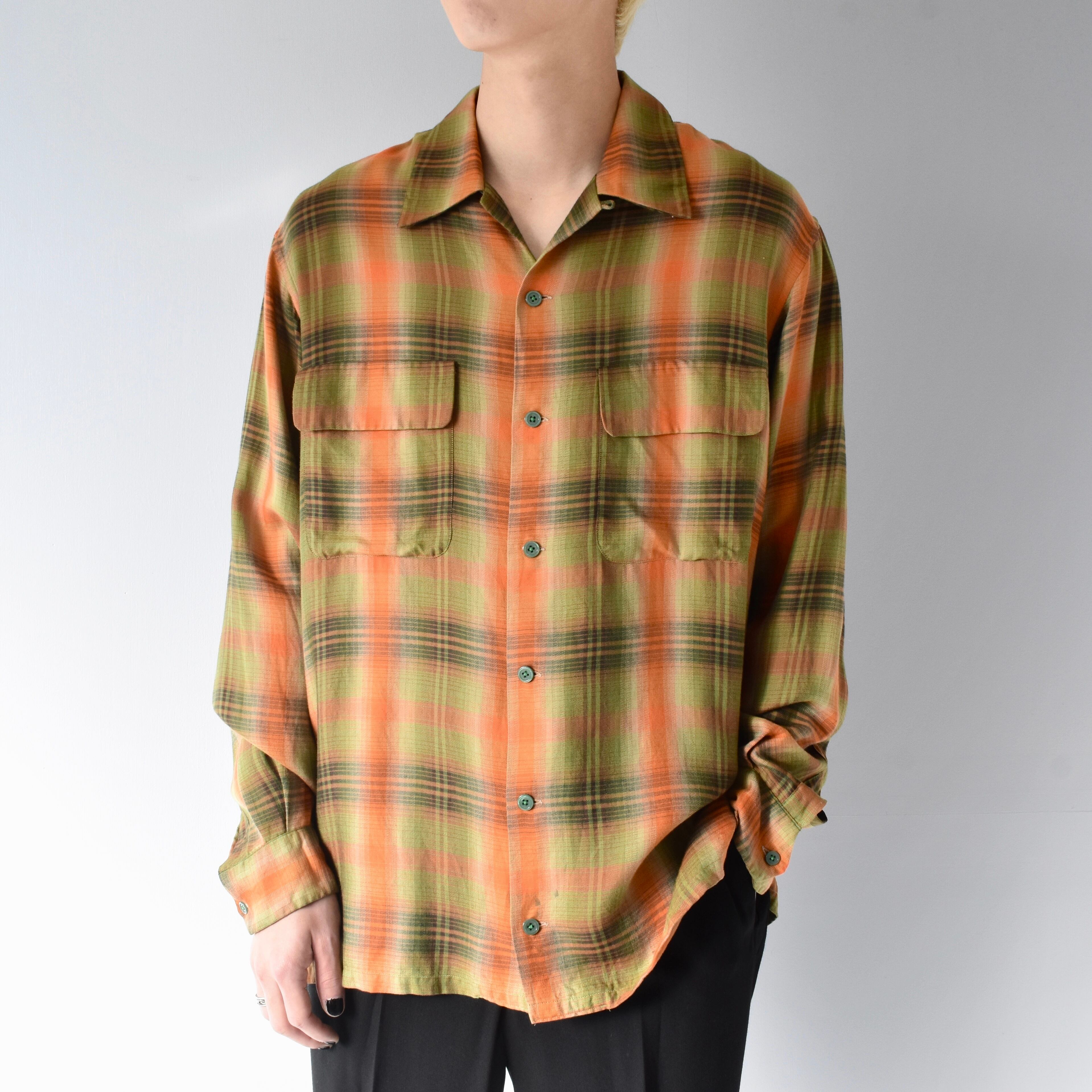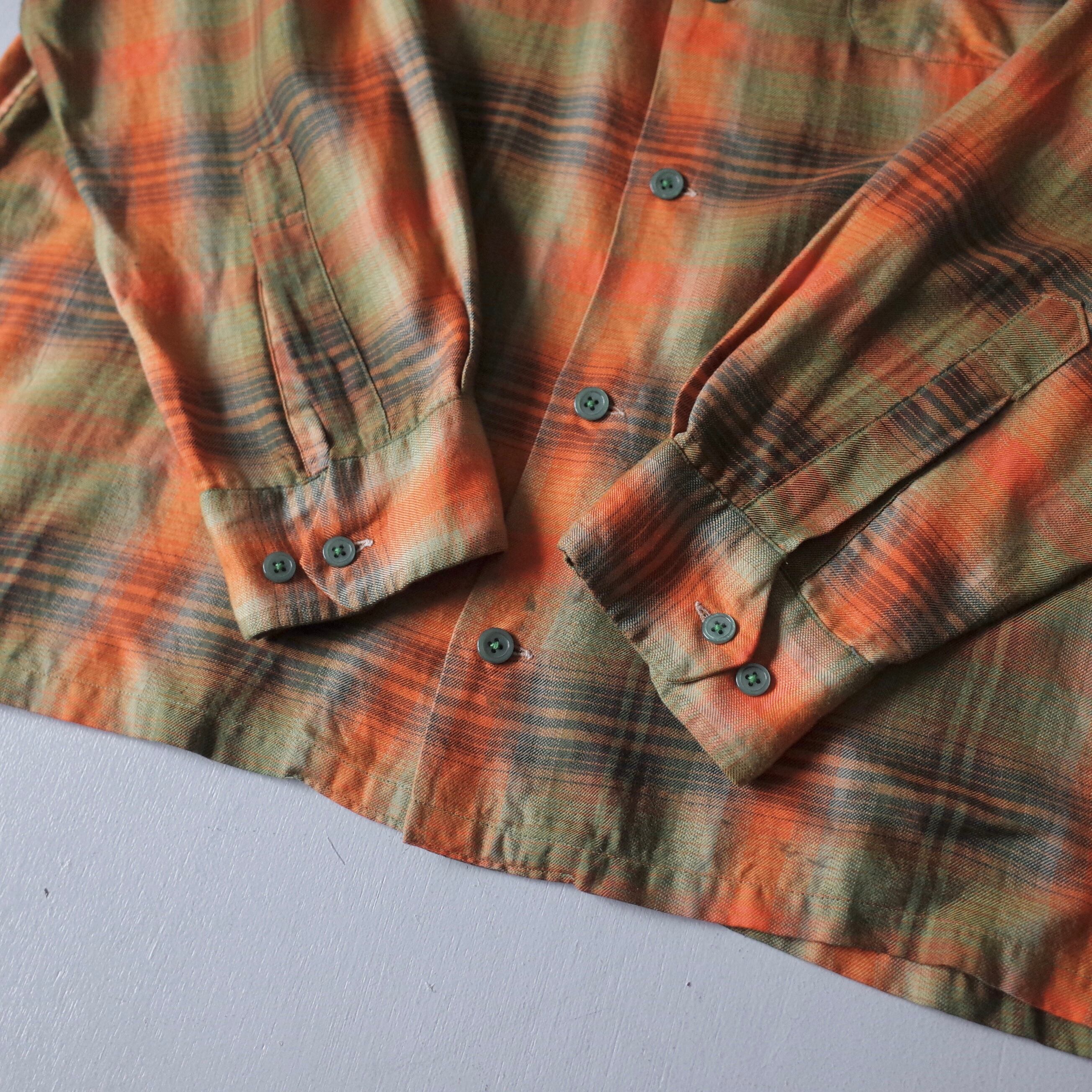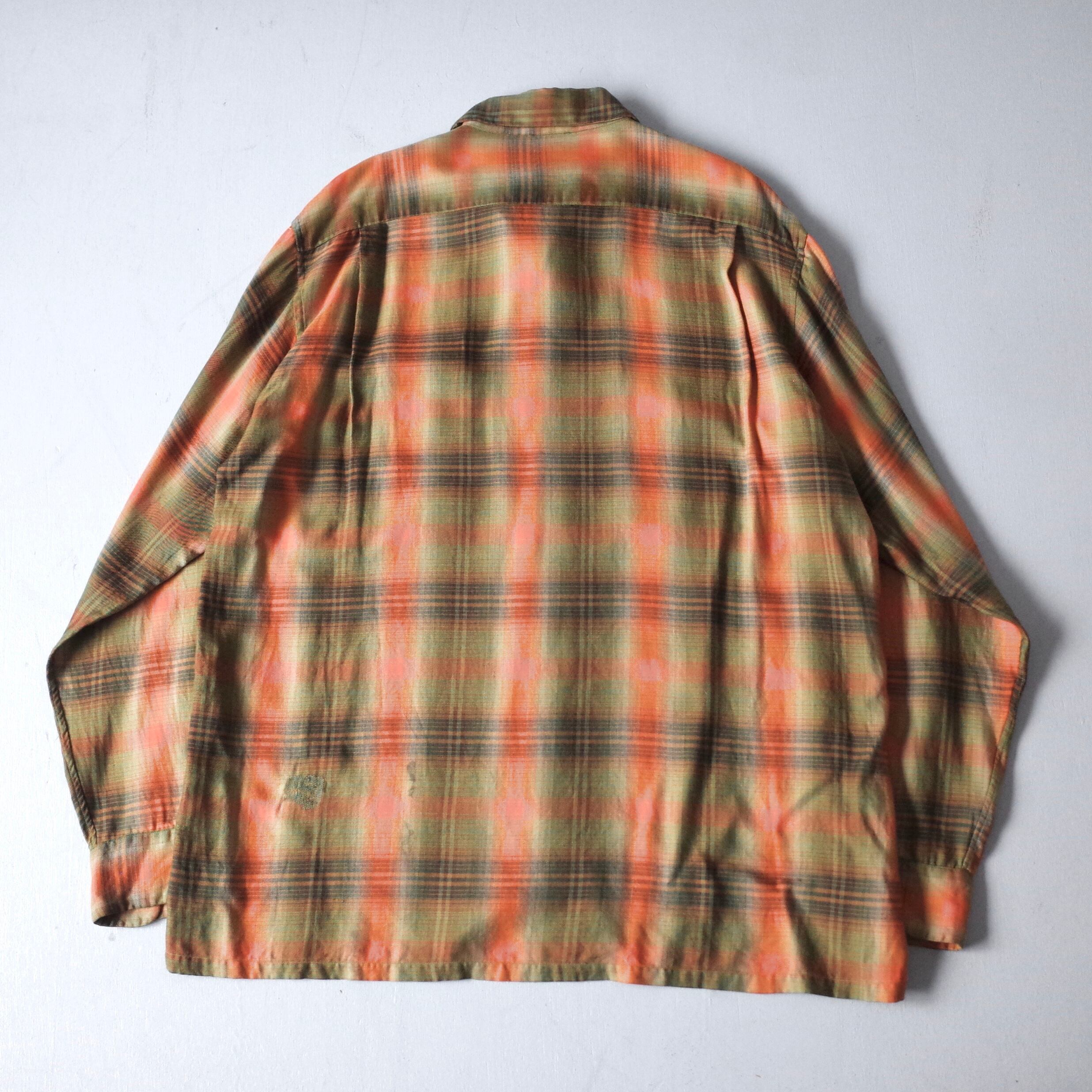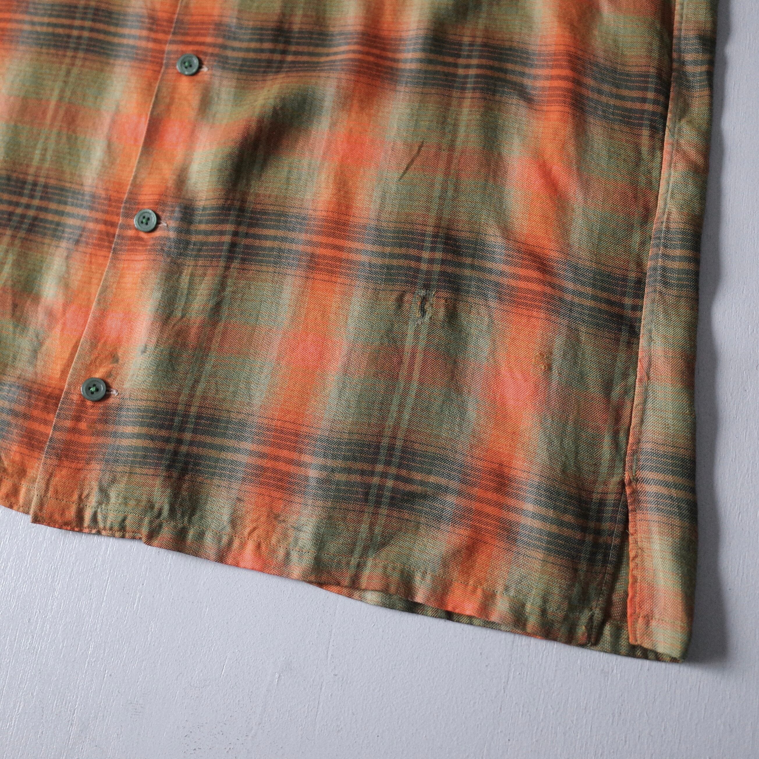 【VINTAGE】 60’s~ Ombre Check Patterned Rayon Shirt l/s