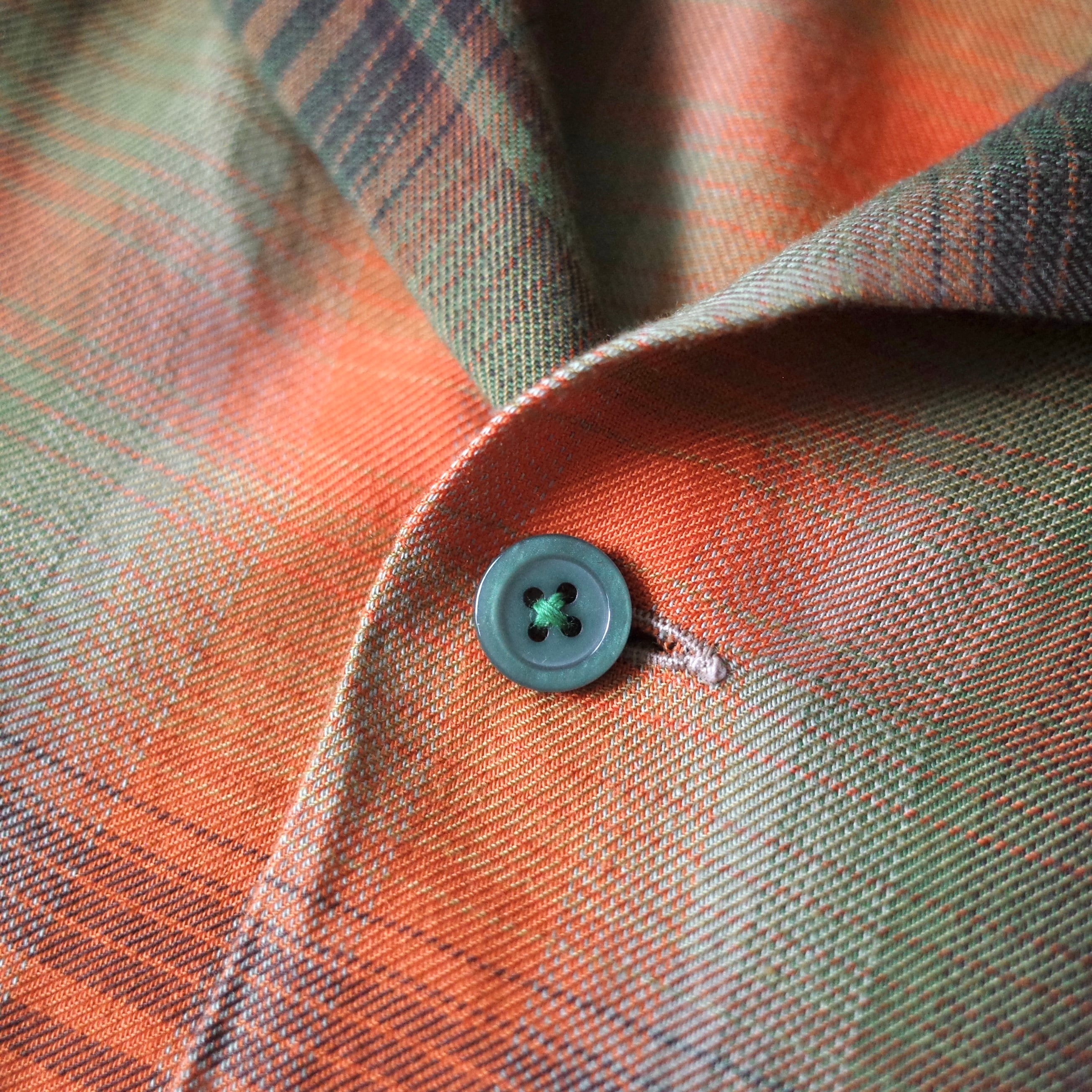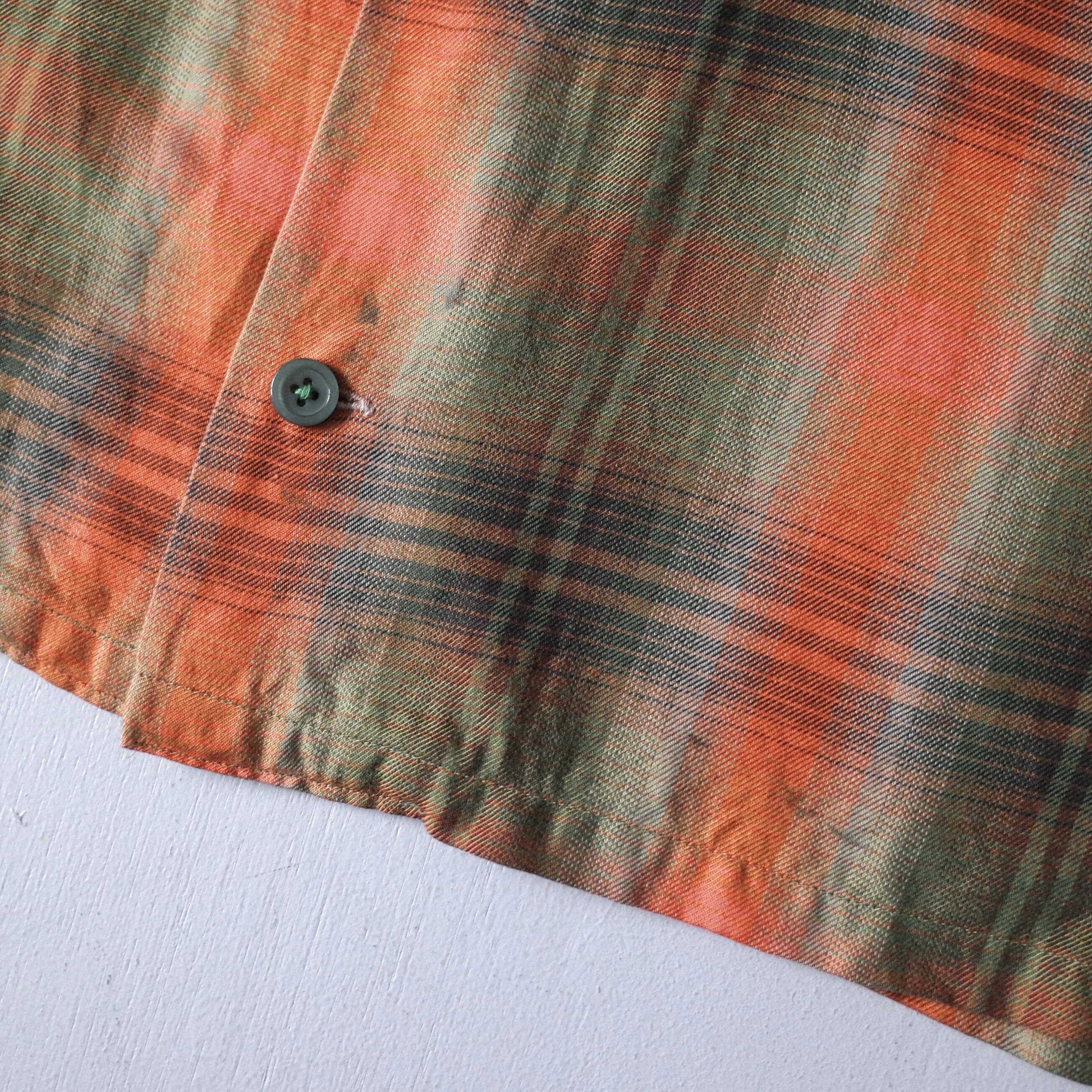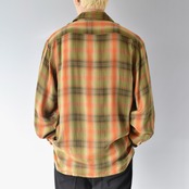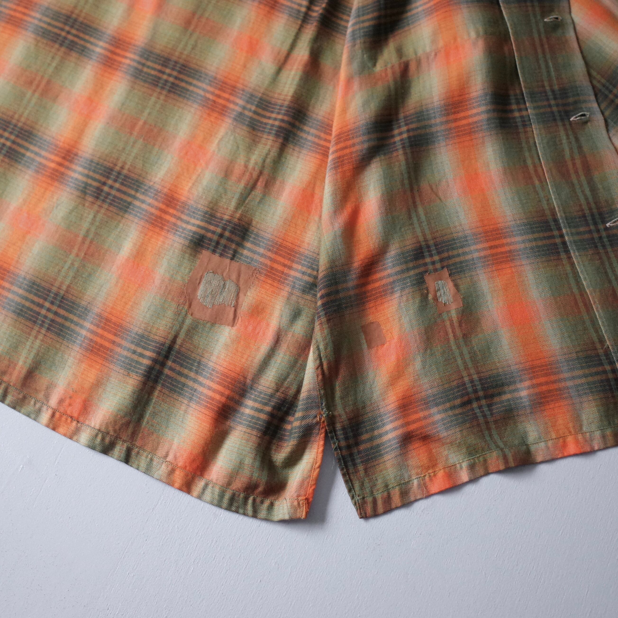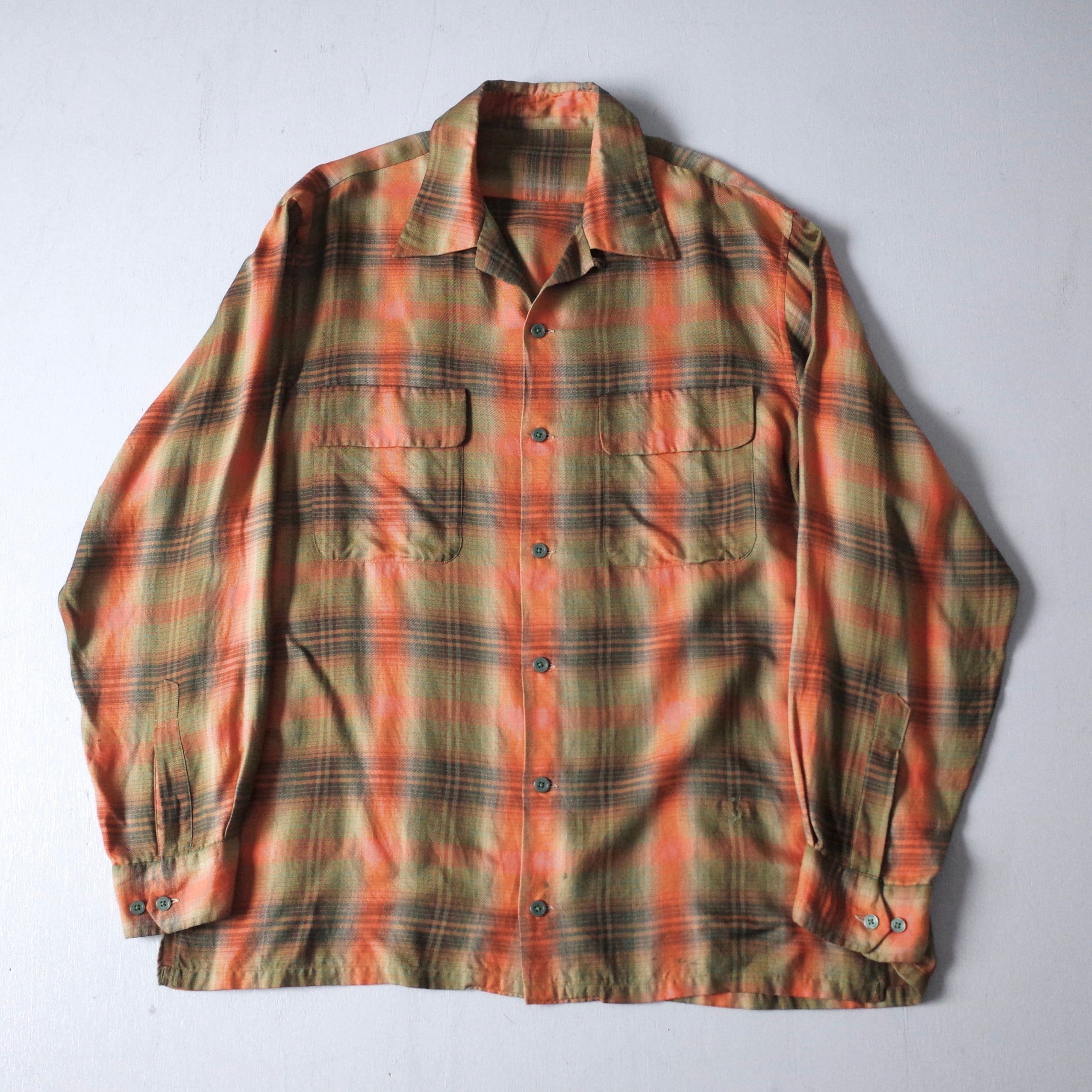 【VINTAGE】 60’s~ Ombre Check Patterned Rayon Shirt l/s