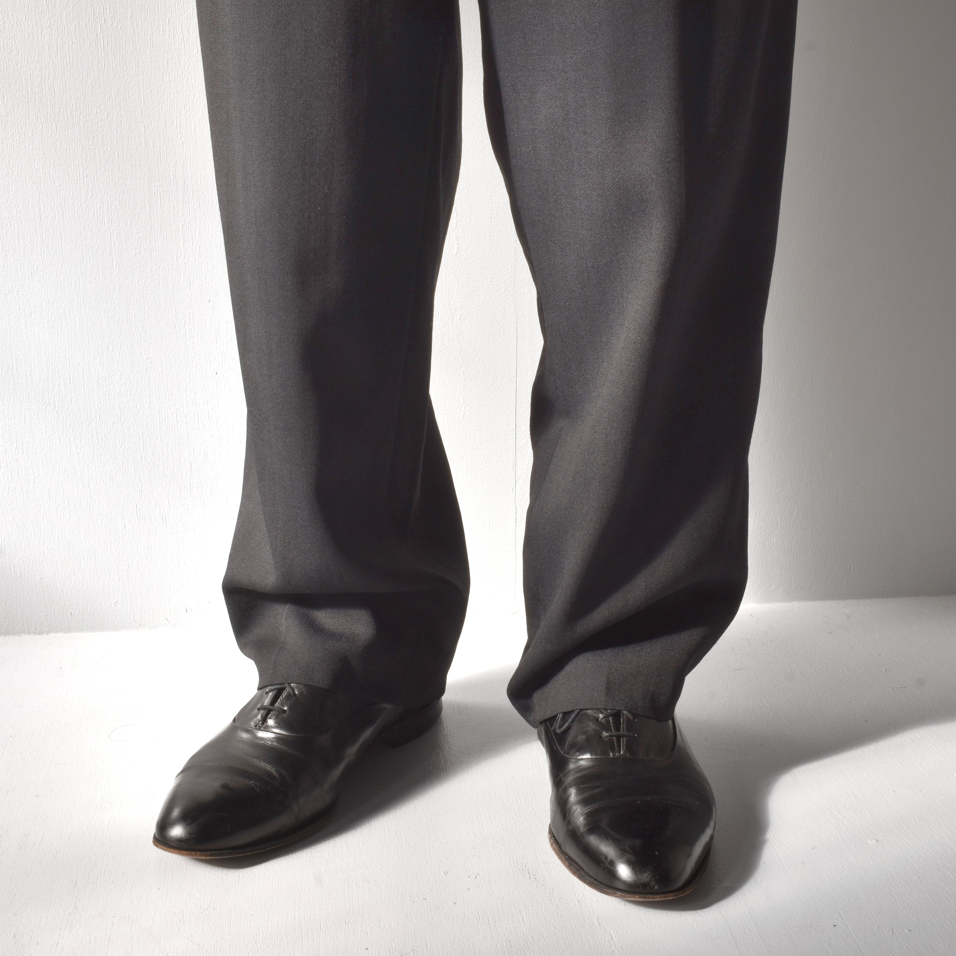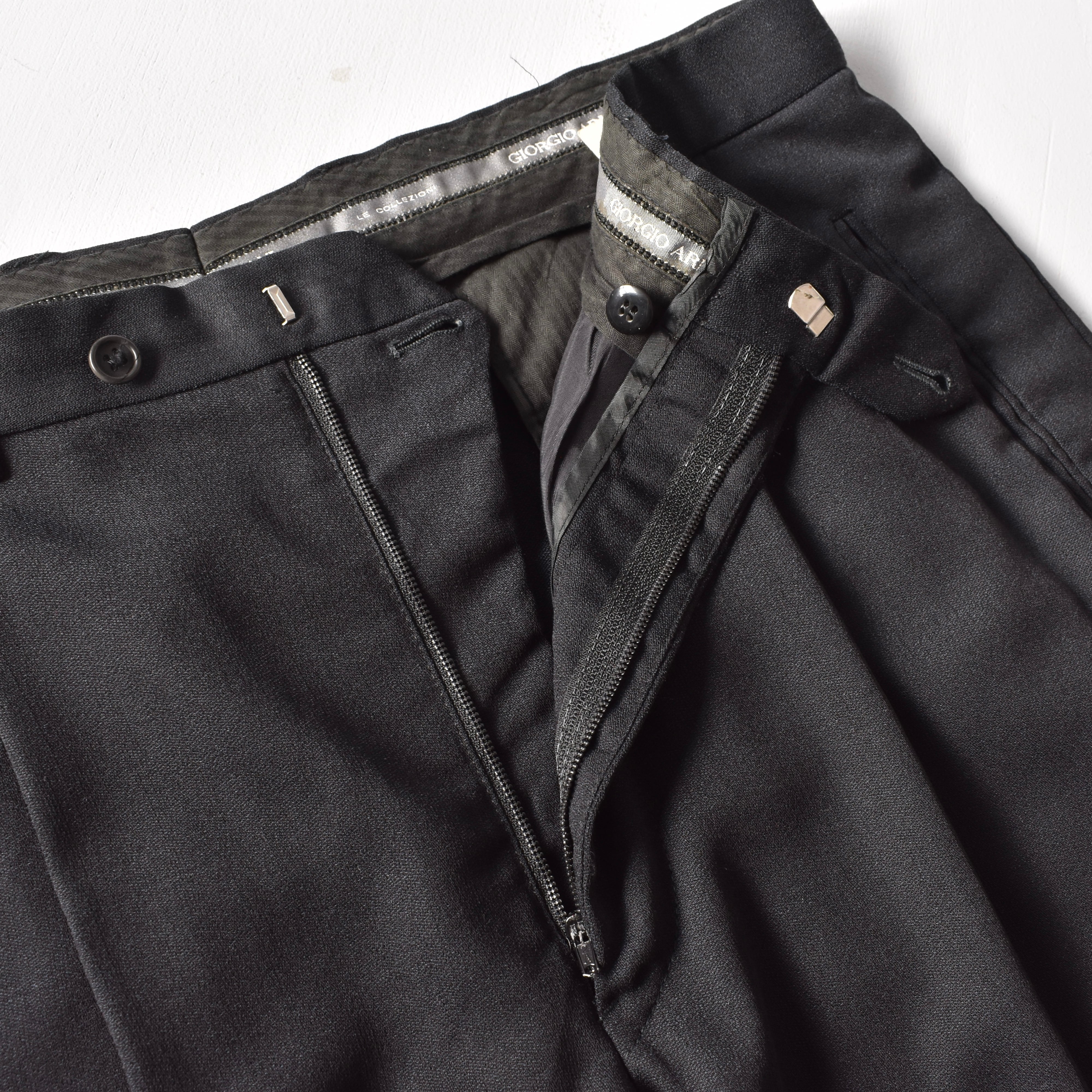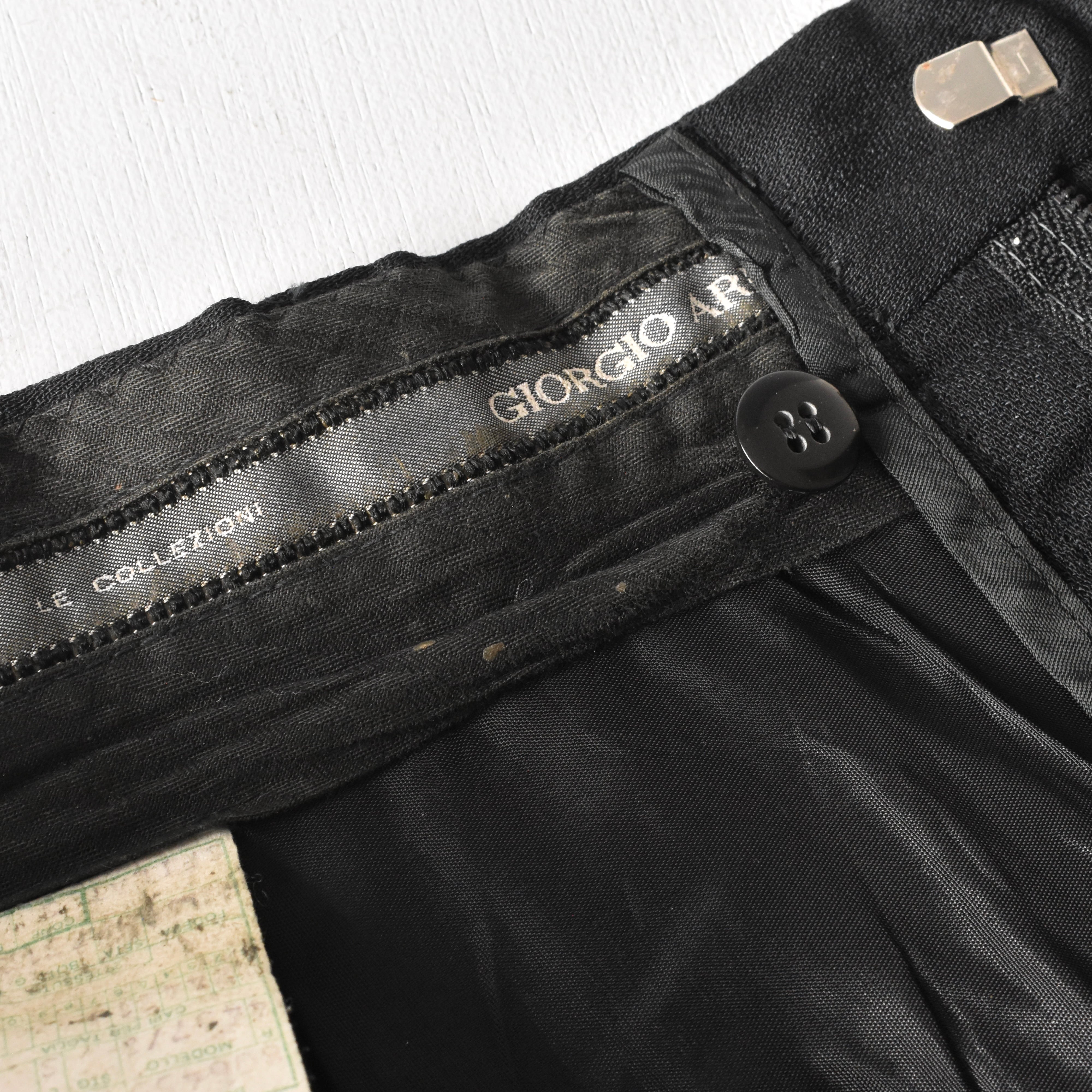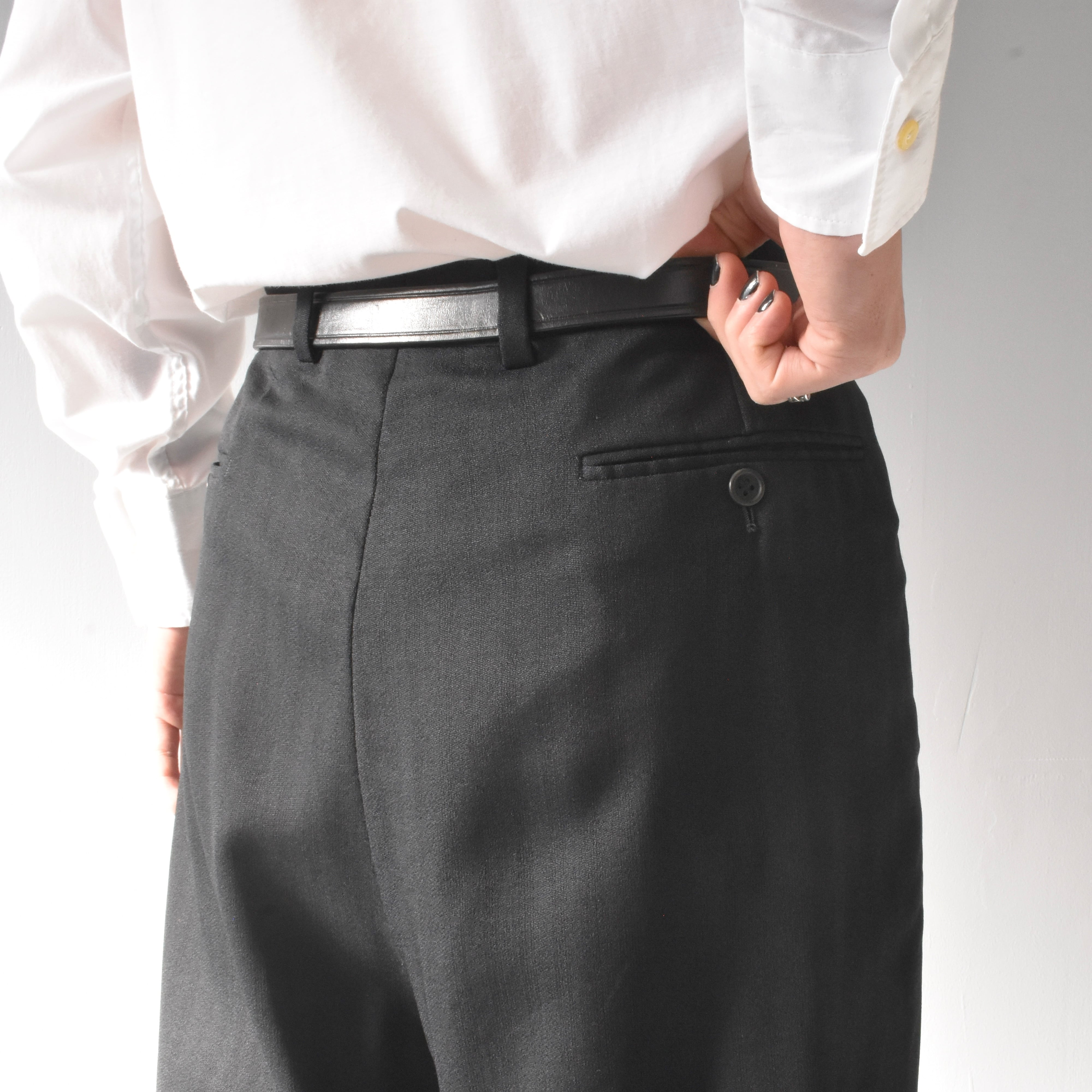 SIZE 不明、ウエスト 88cm、股上 33cm、股下 75cm、わたり幅 37cm、総丈 105.5cm
