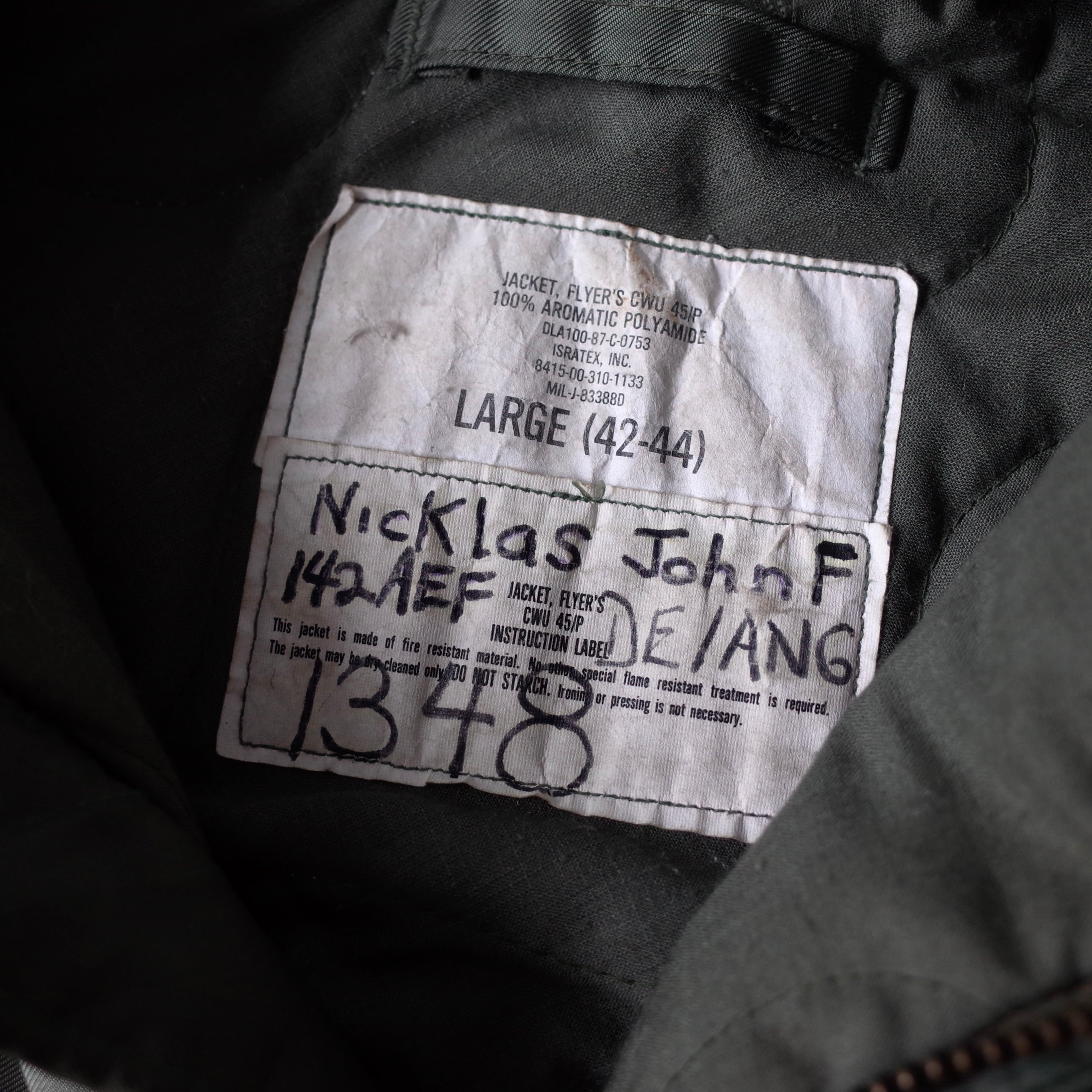 SIZE LARGE(42-44)、肩幅 56.5cm、身幅 67.5cm、着丈 66cm、袖丈 66.5cm