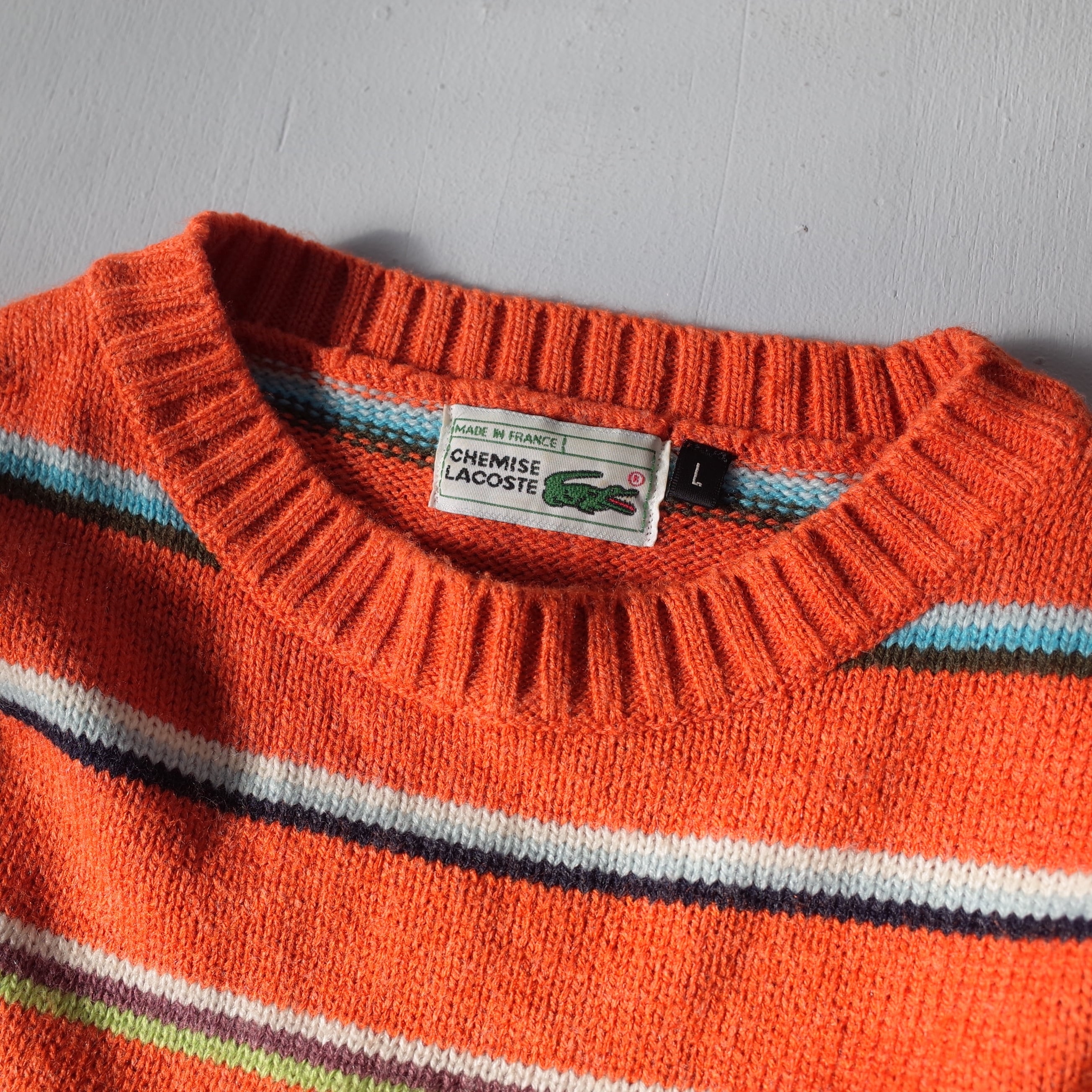 【VINTAGE】 "CHEMISE LACOSTE” 70’s~80’s Made In FRANCE Striped Knit Sweater | FINCH vintage and archive store