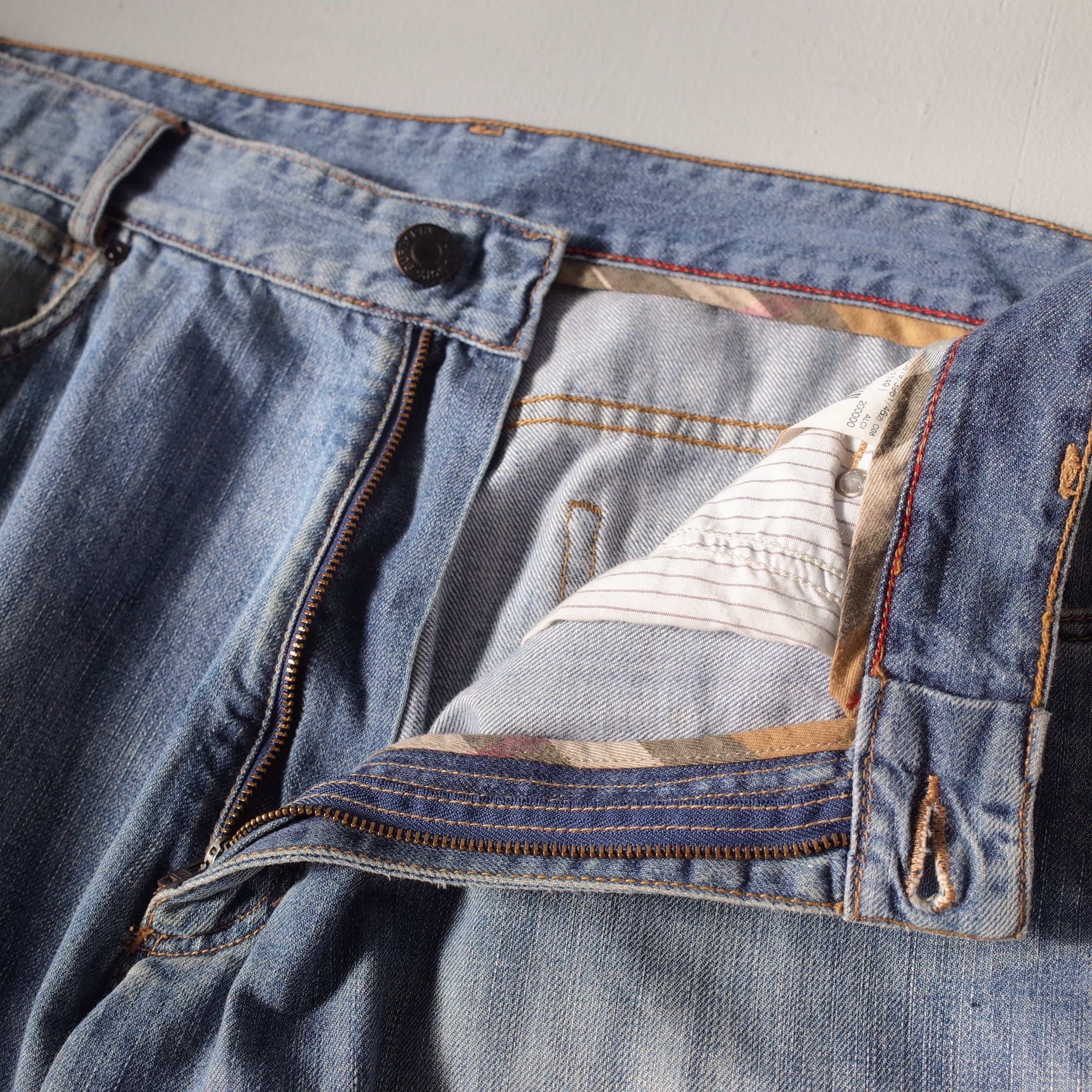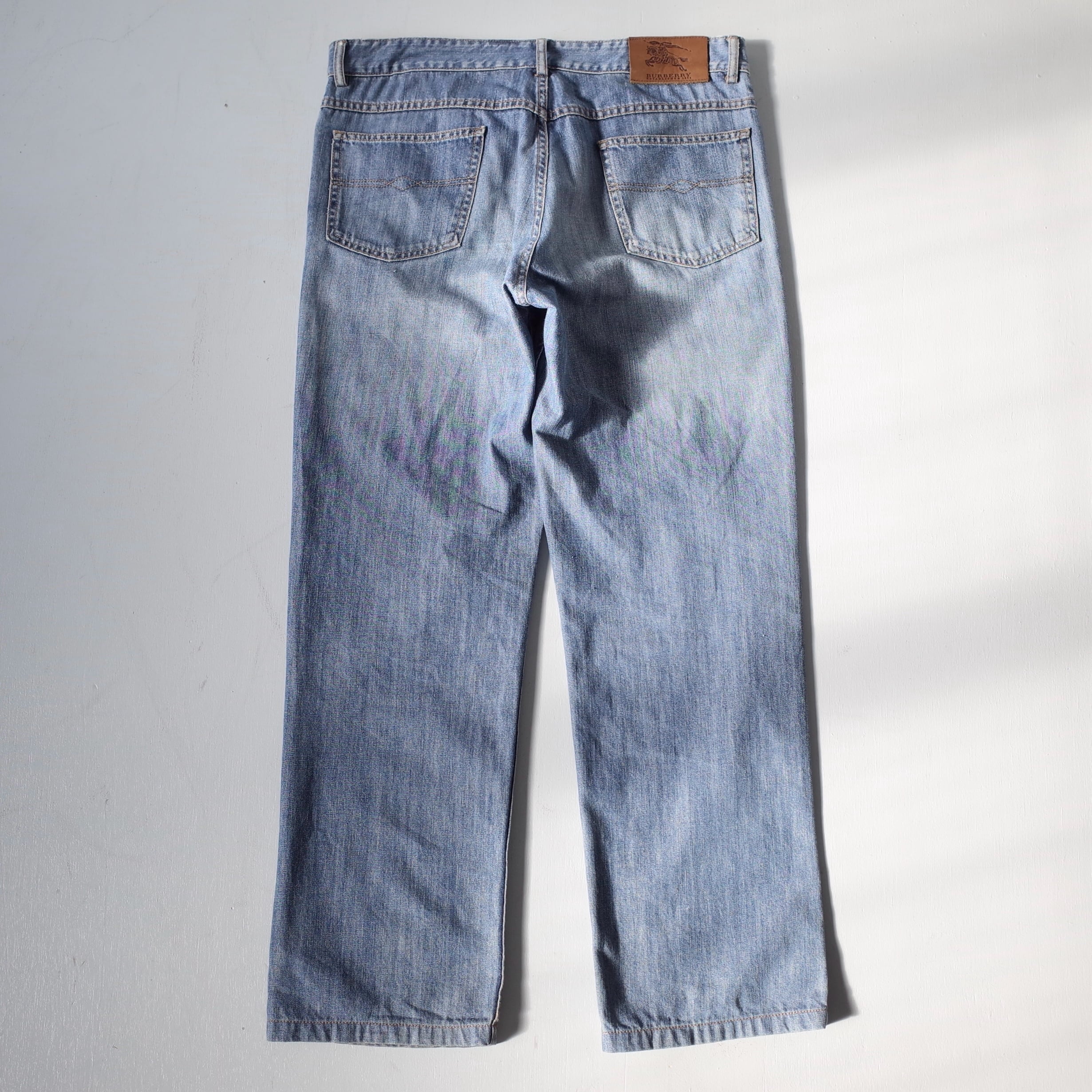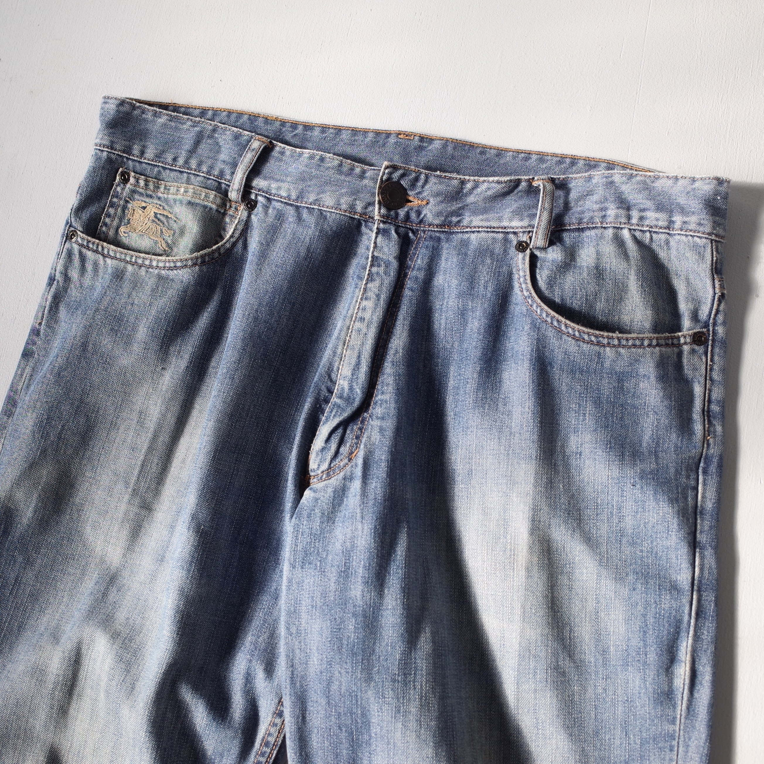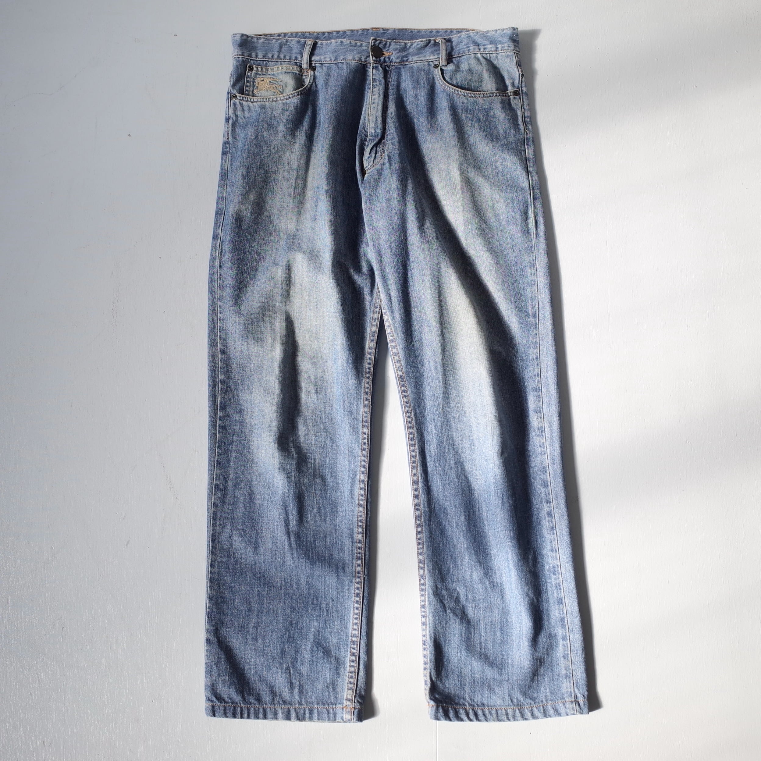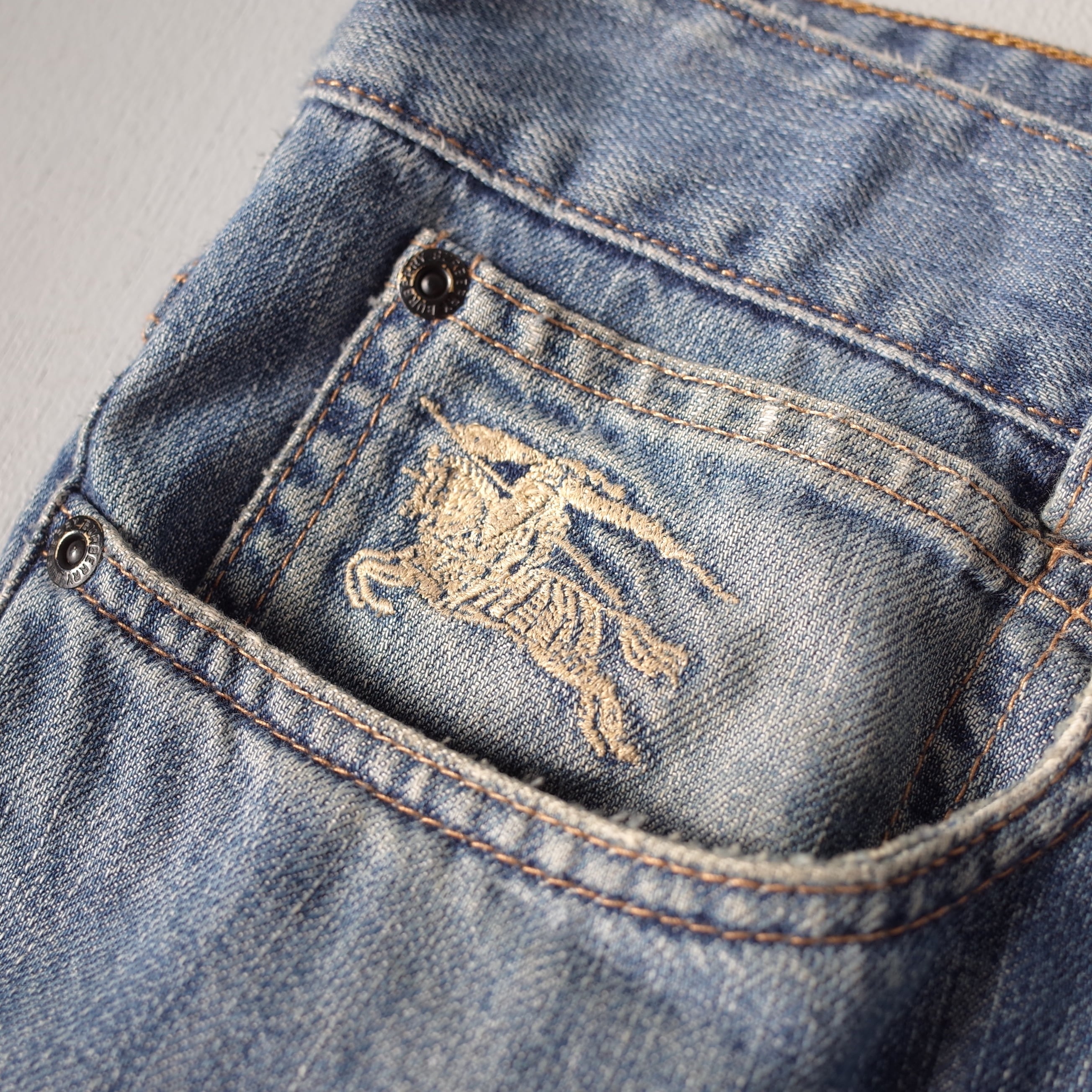 "BURBERRY” Logo Embroidered Wide Denim Pants