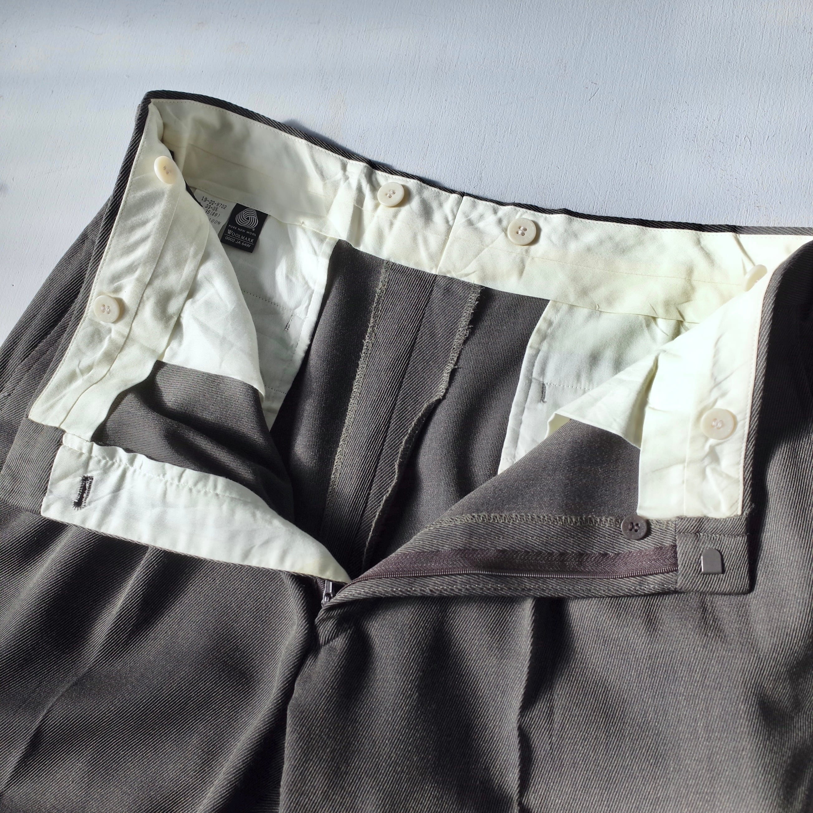 SIZE 35(89)、ウエスト 87cm、股上 31.5cm、股下 78.5cm、わたり幅 33.5cm、総丈 107cm
