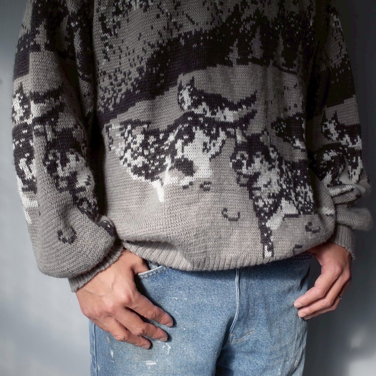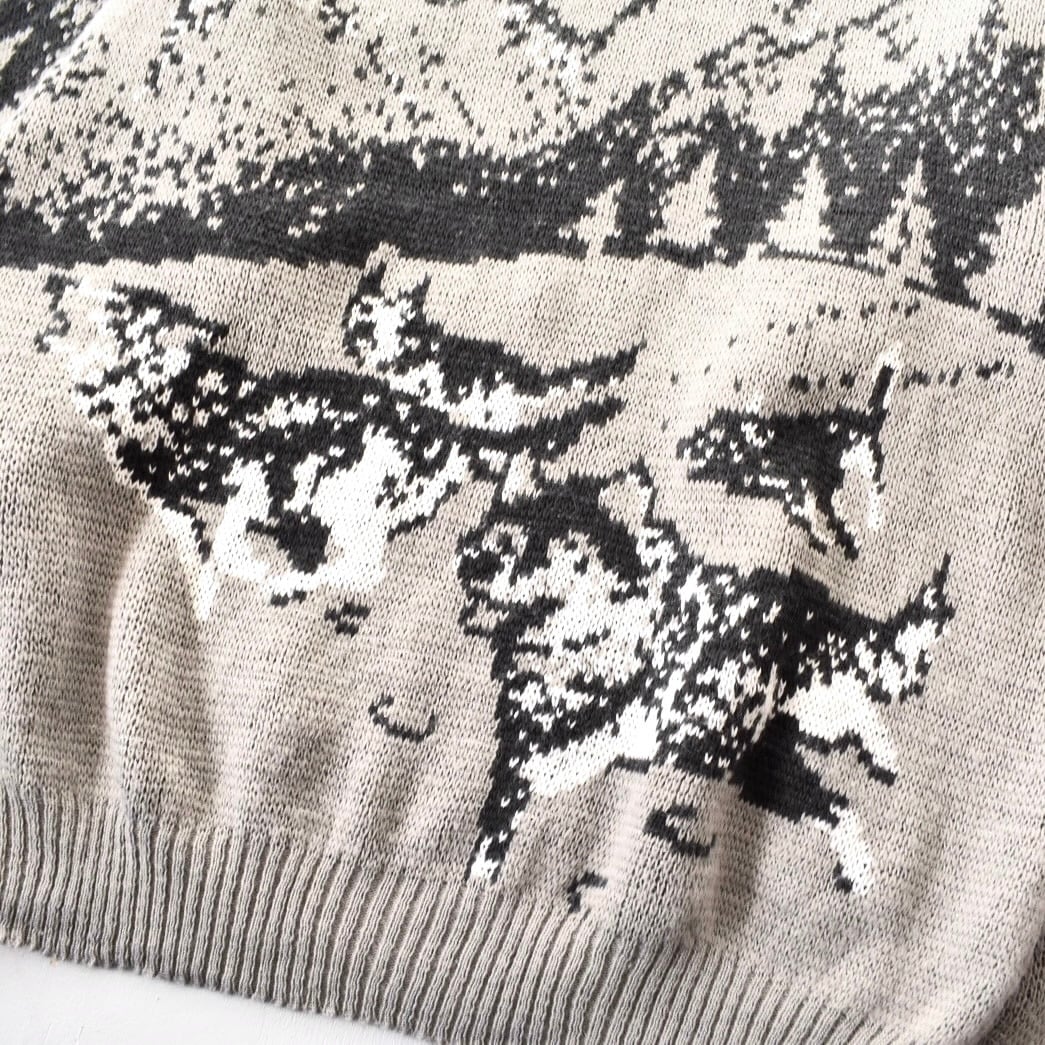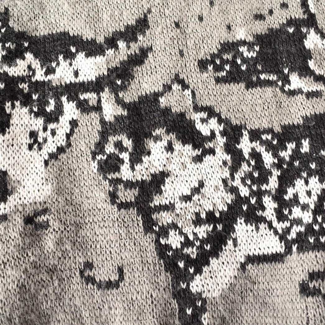 表現された伊製のデザインニット。袖にも柄がしっかりと