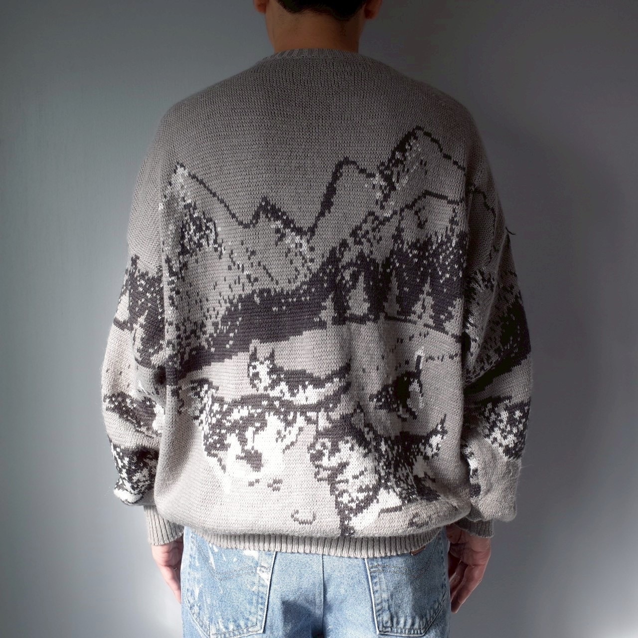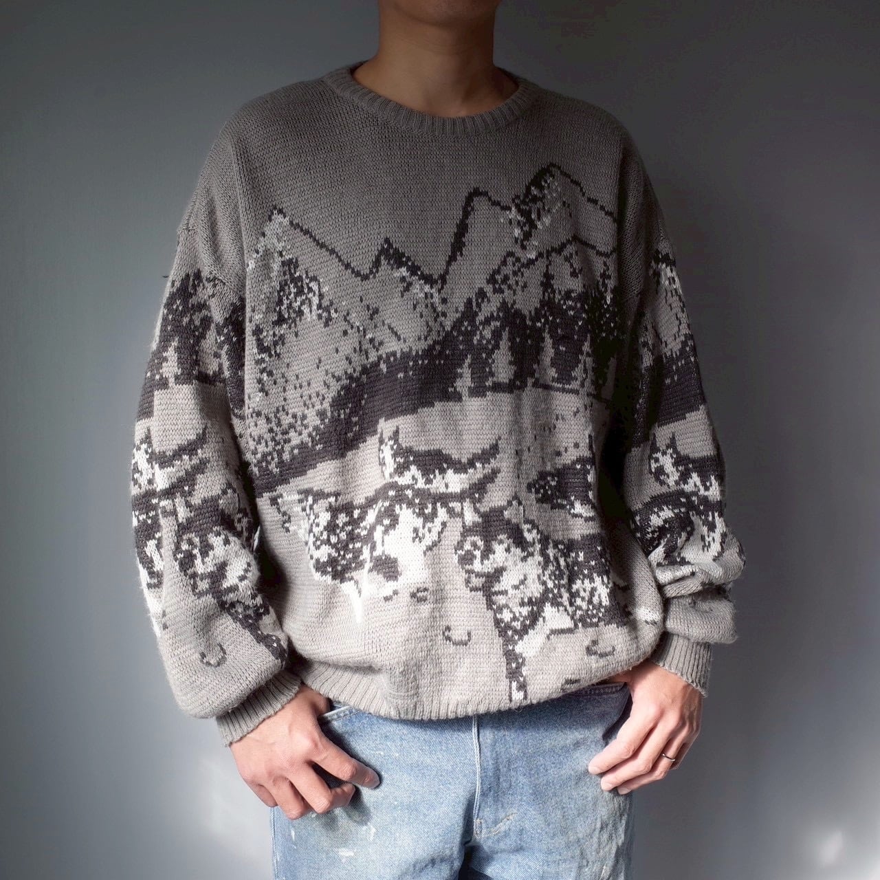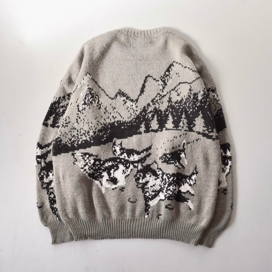表現された伊製のデザインニット。袖にも柄がしっかりと