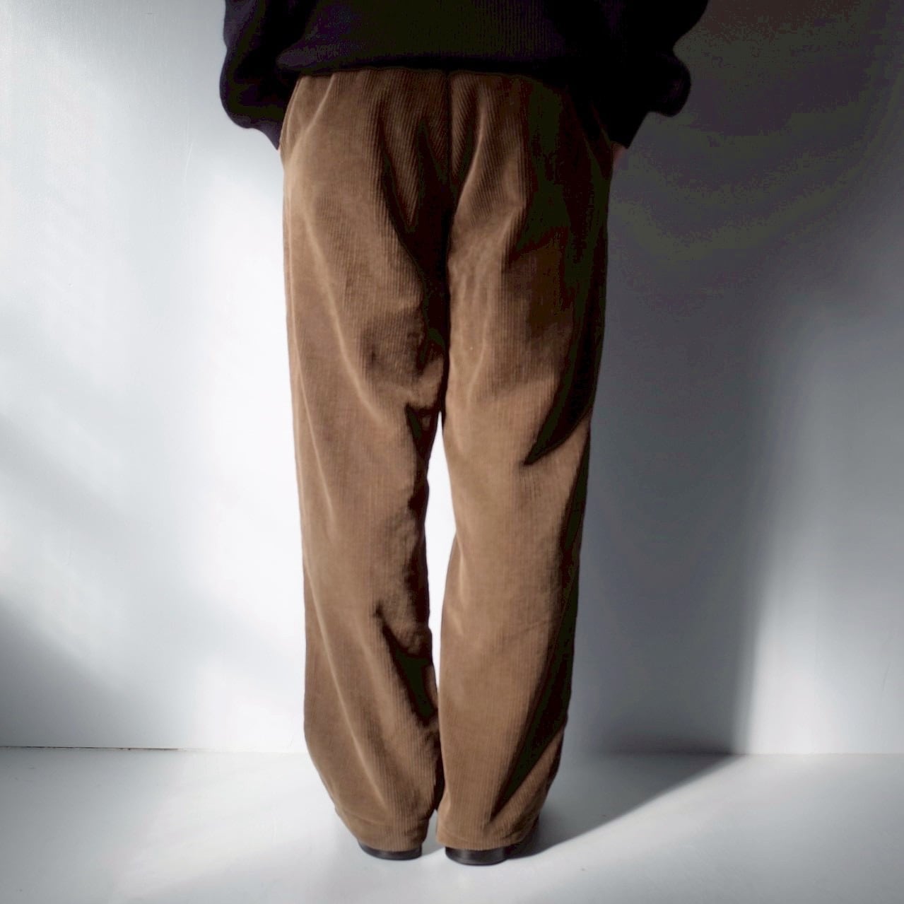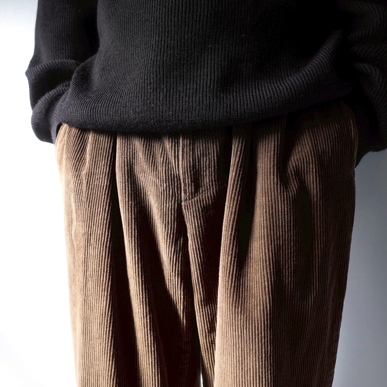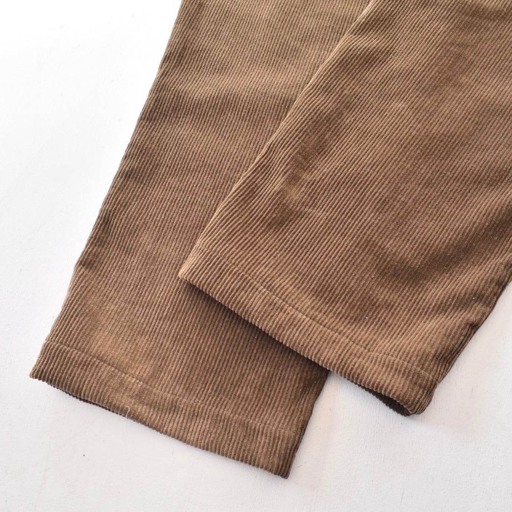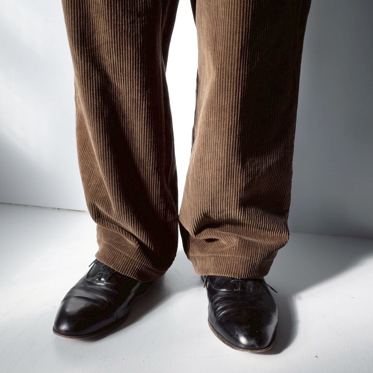 コーデュロイ生地によるトラウザーズ。程よい太さを持つ