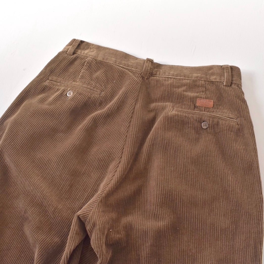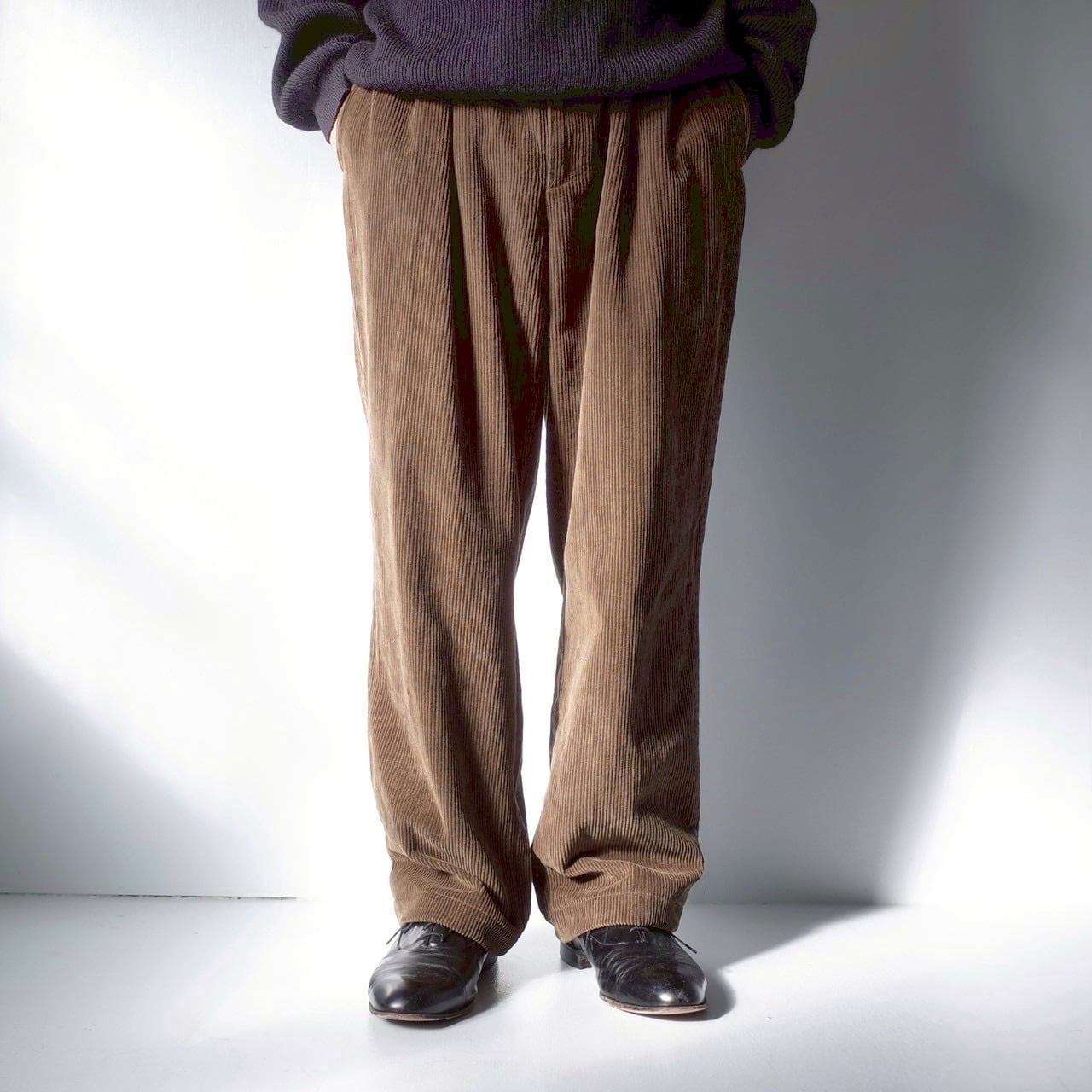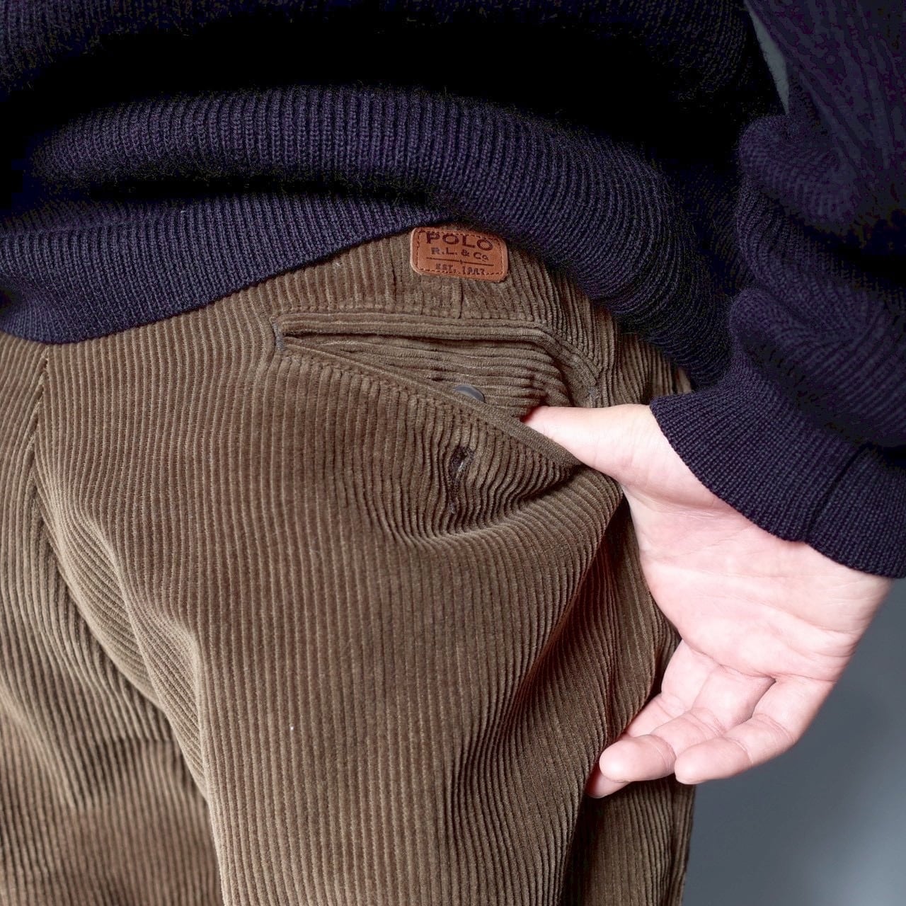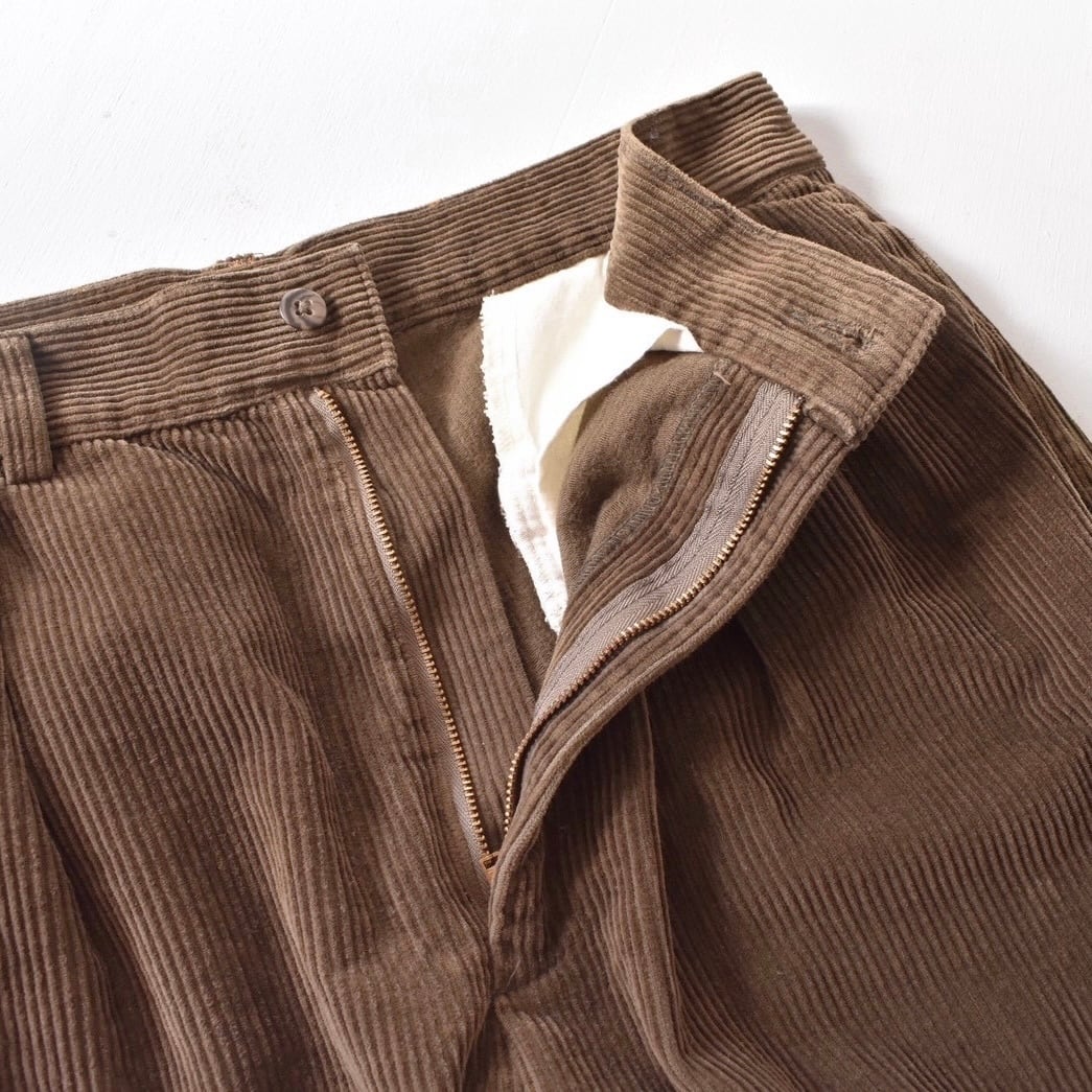 コーデュロイ生地によるトラウザーズ。程よい太さを持つ