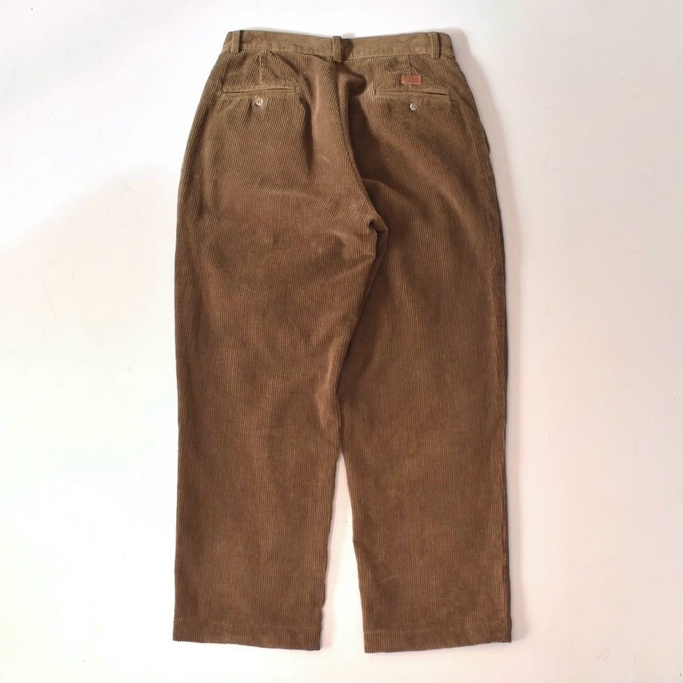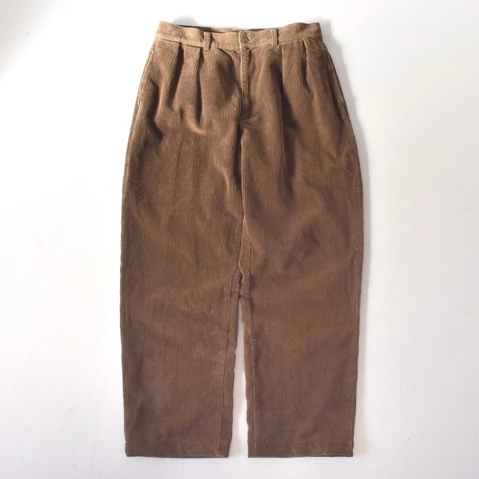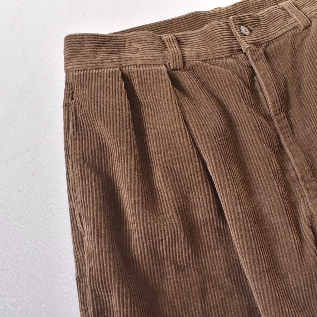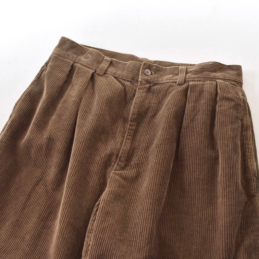 コーデュロイ生地によるトラウザーズ。程よい太さを持つ