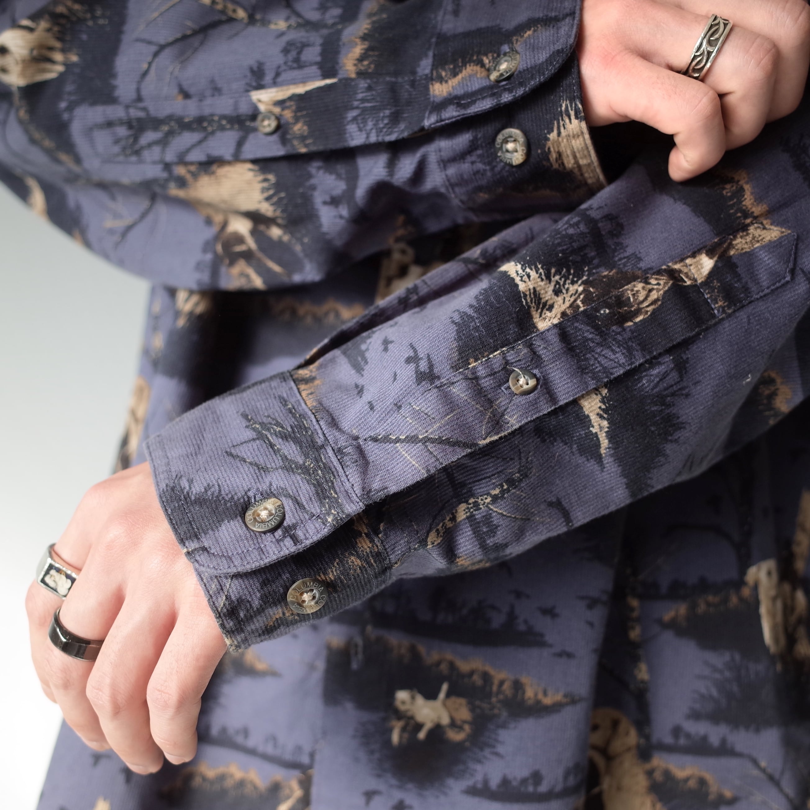 “Columbia”の総柄シャツ。畝のある特徴的な生地感から