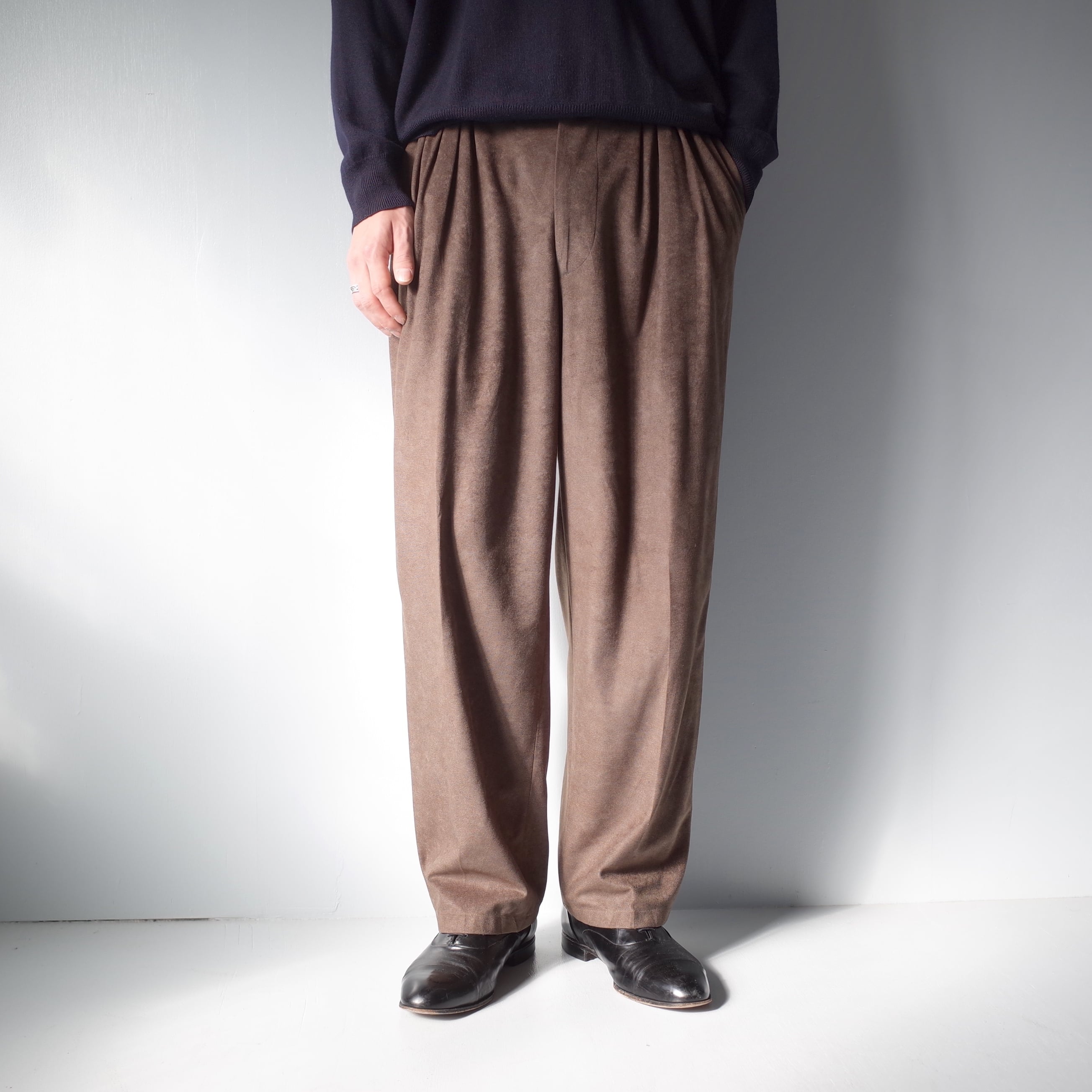 用いたタックトラウザーズ。