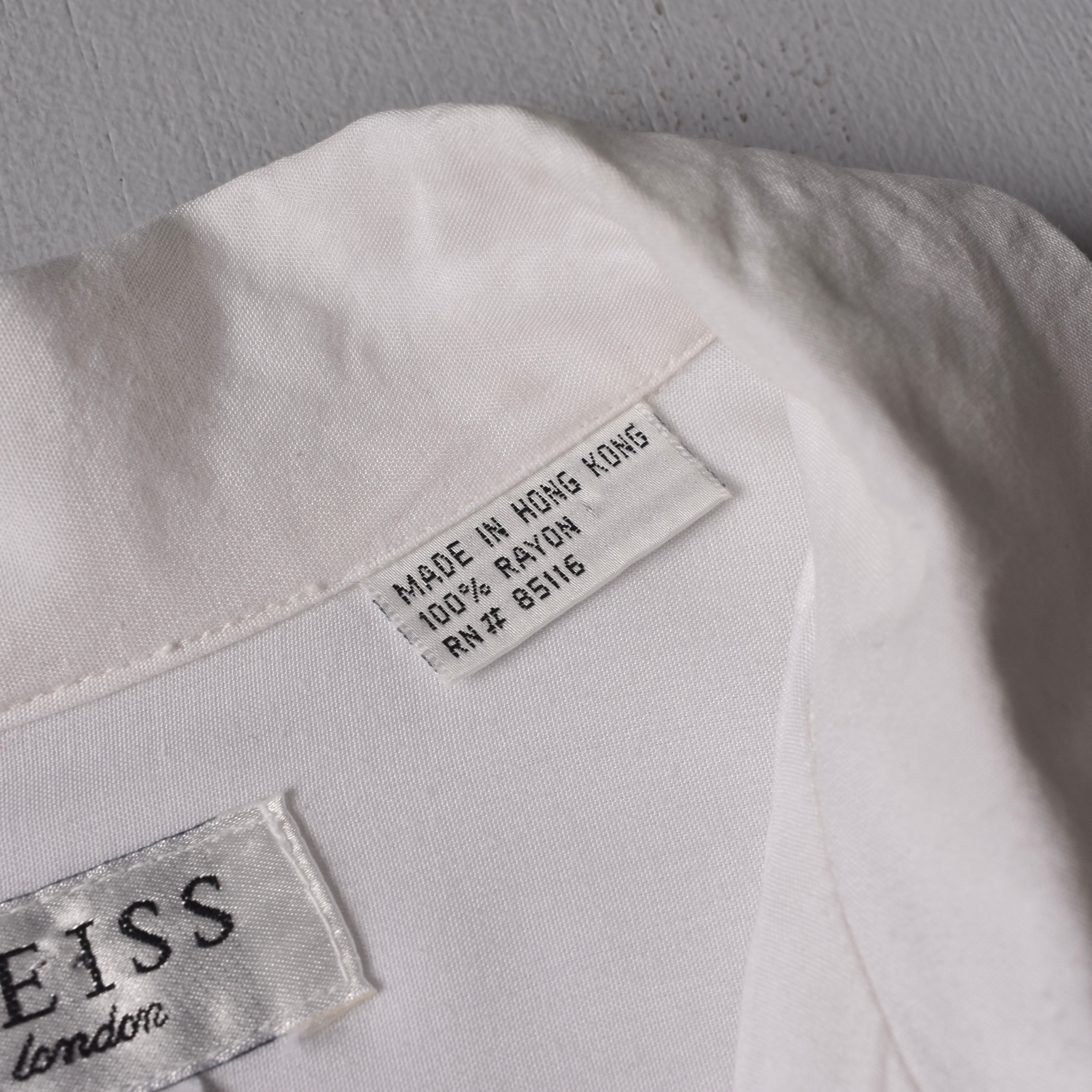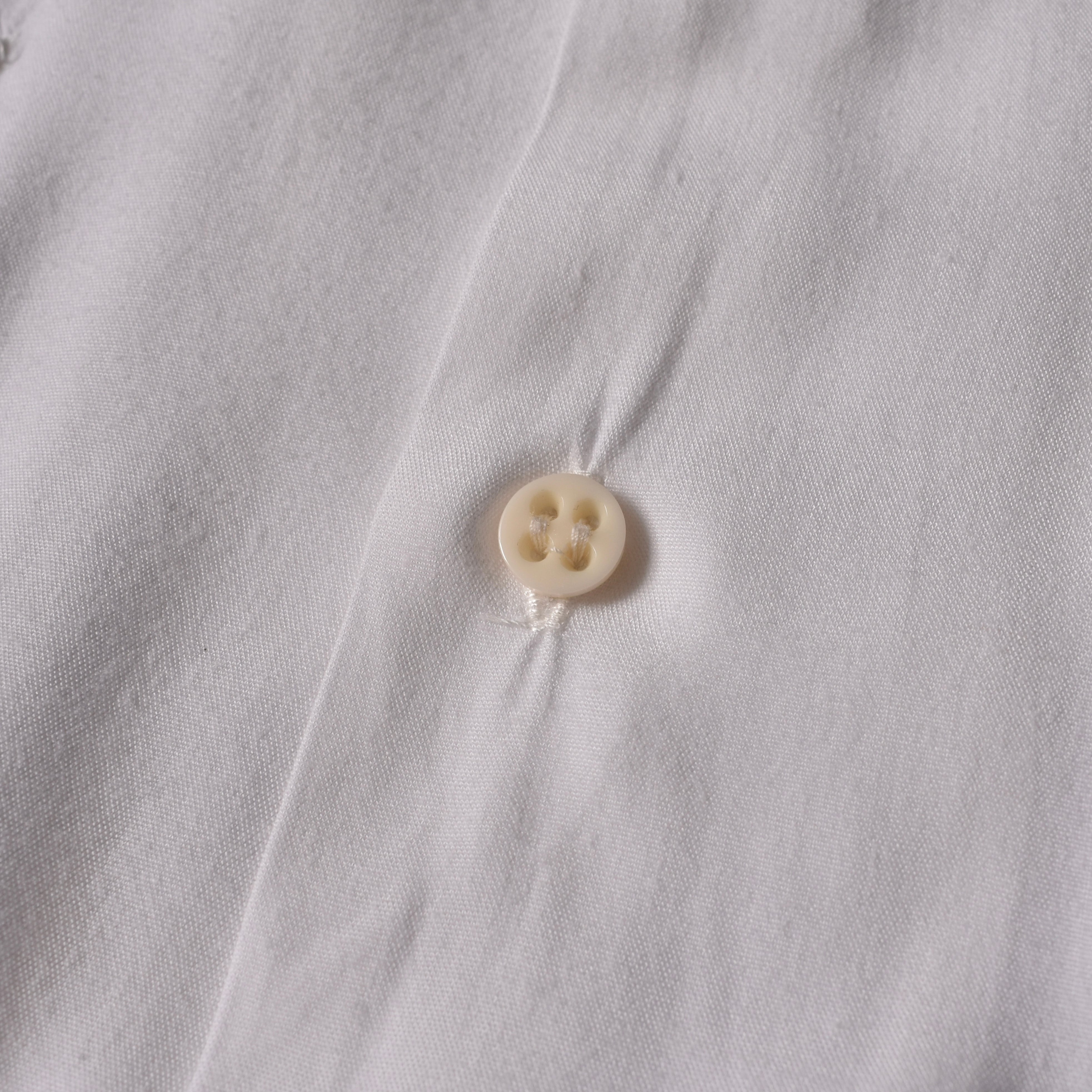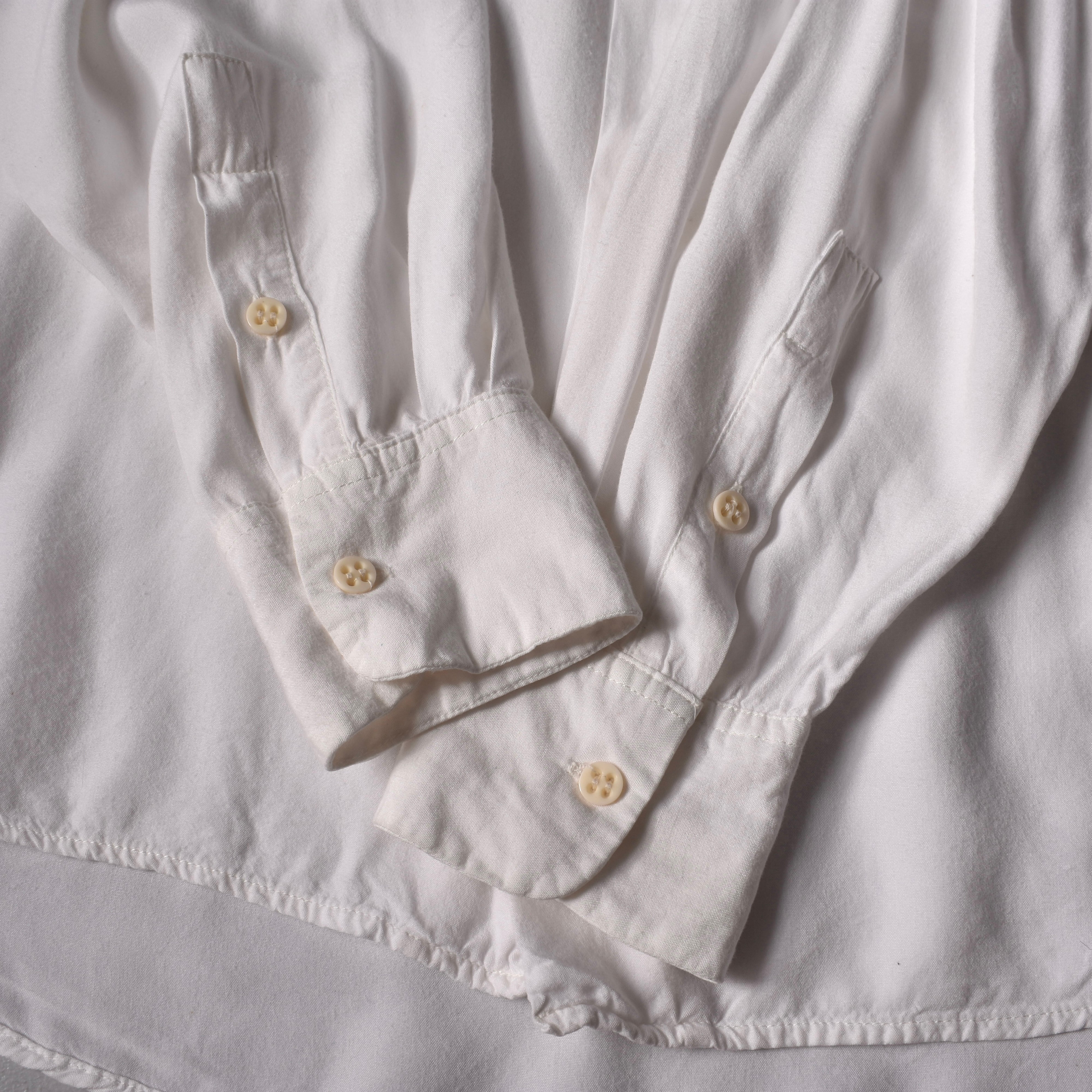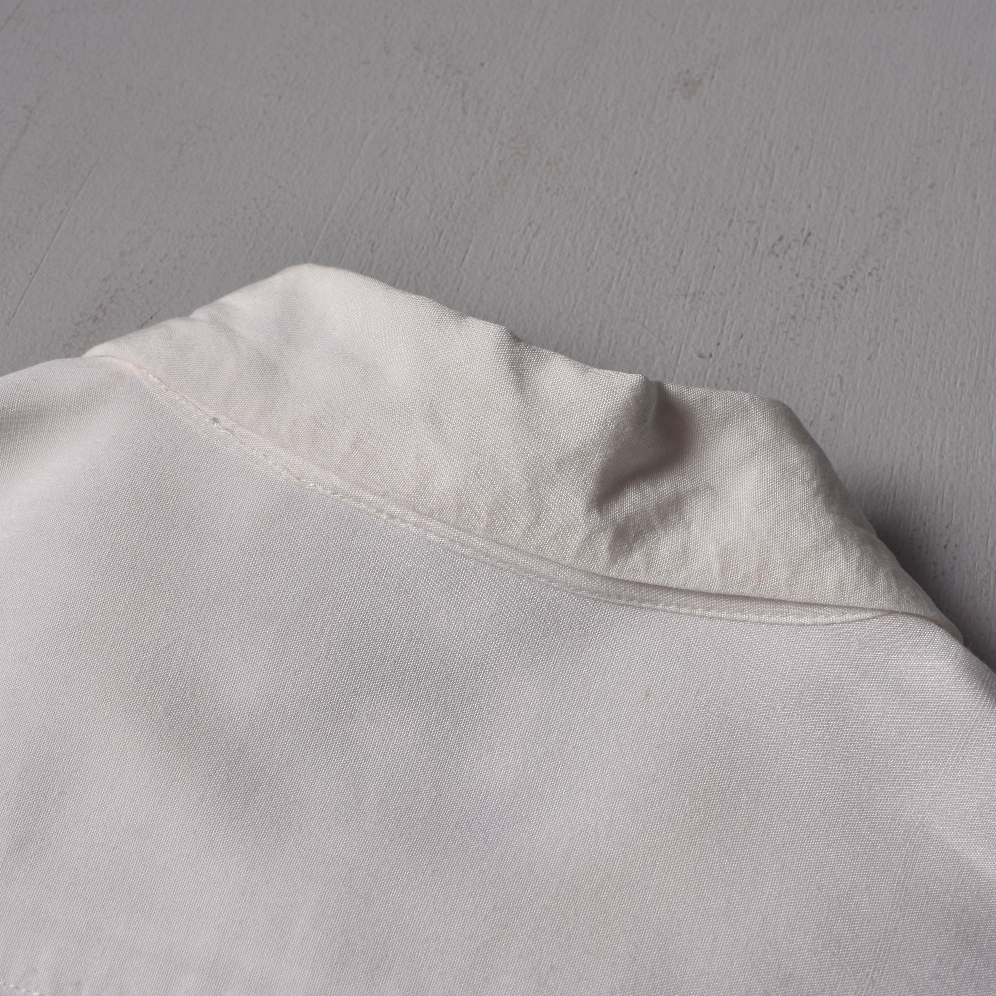 風を受け優しく揺れる純白レーヨン生地が魅力的な一着。両胸にはフラップポケットを備えるヴィンテージライクなデザインで、レーヨン100%の白シャツは年代問わず、洋服好きが揃えておきたいアイテムの一つかと。是非。