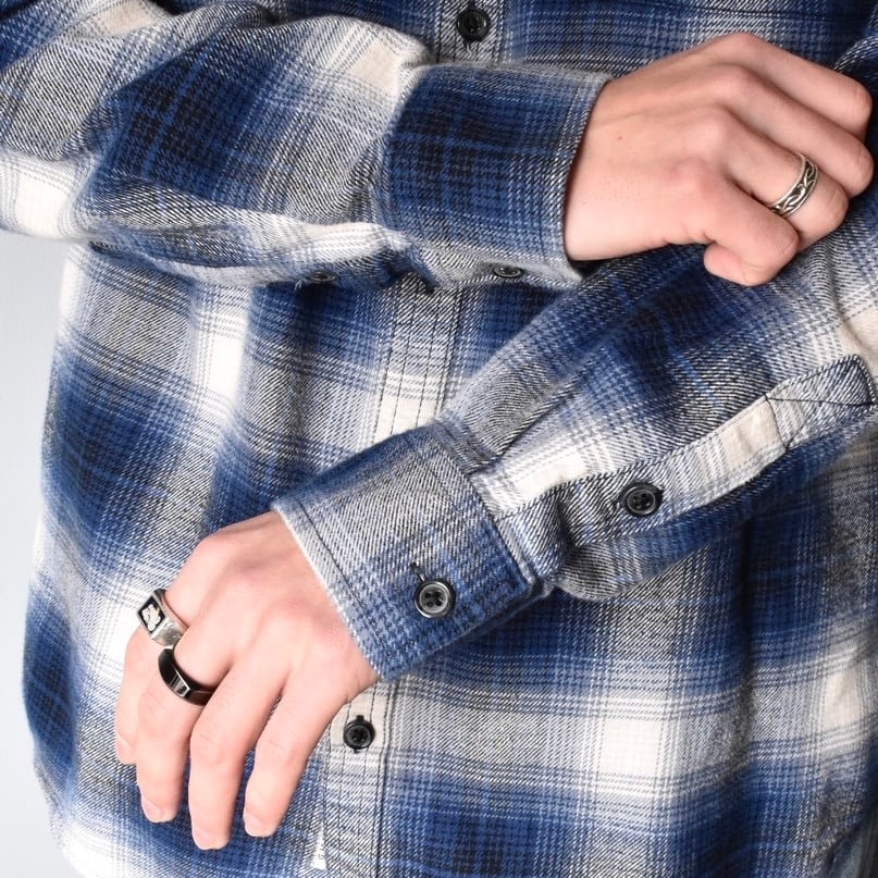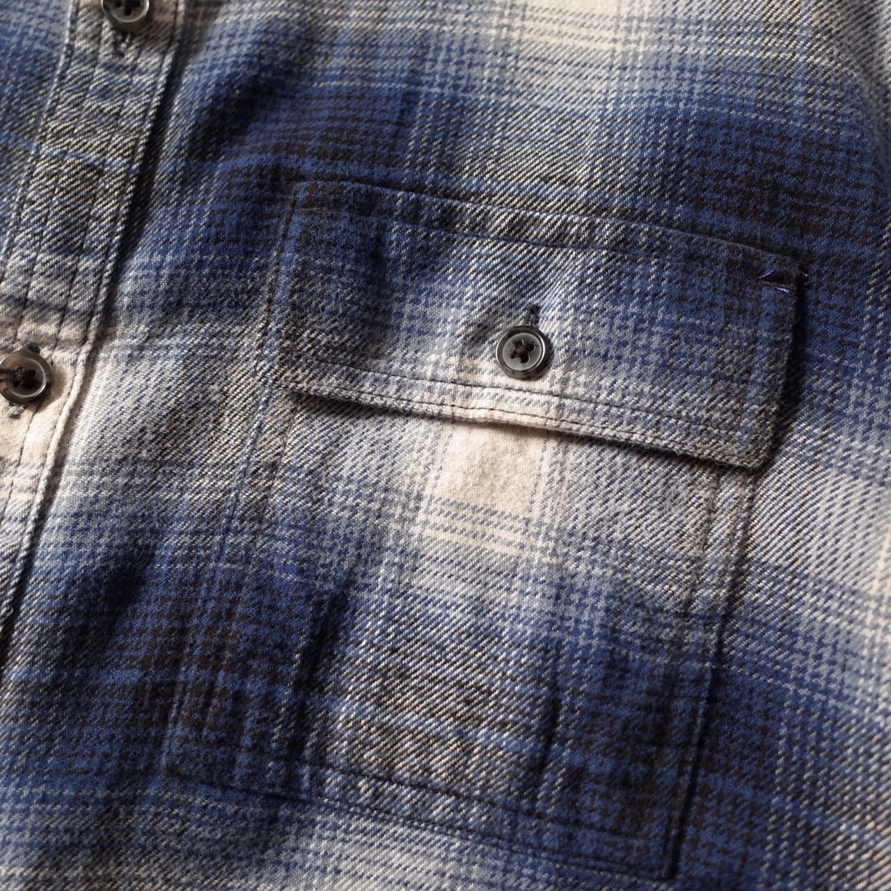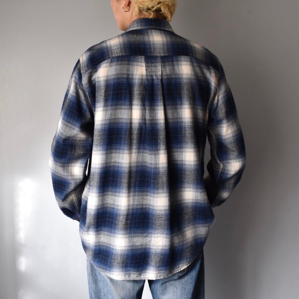 基調とした好配色なオンブレチェック柄シャツ。ピッチも
