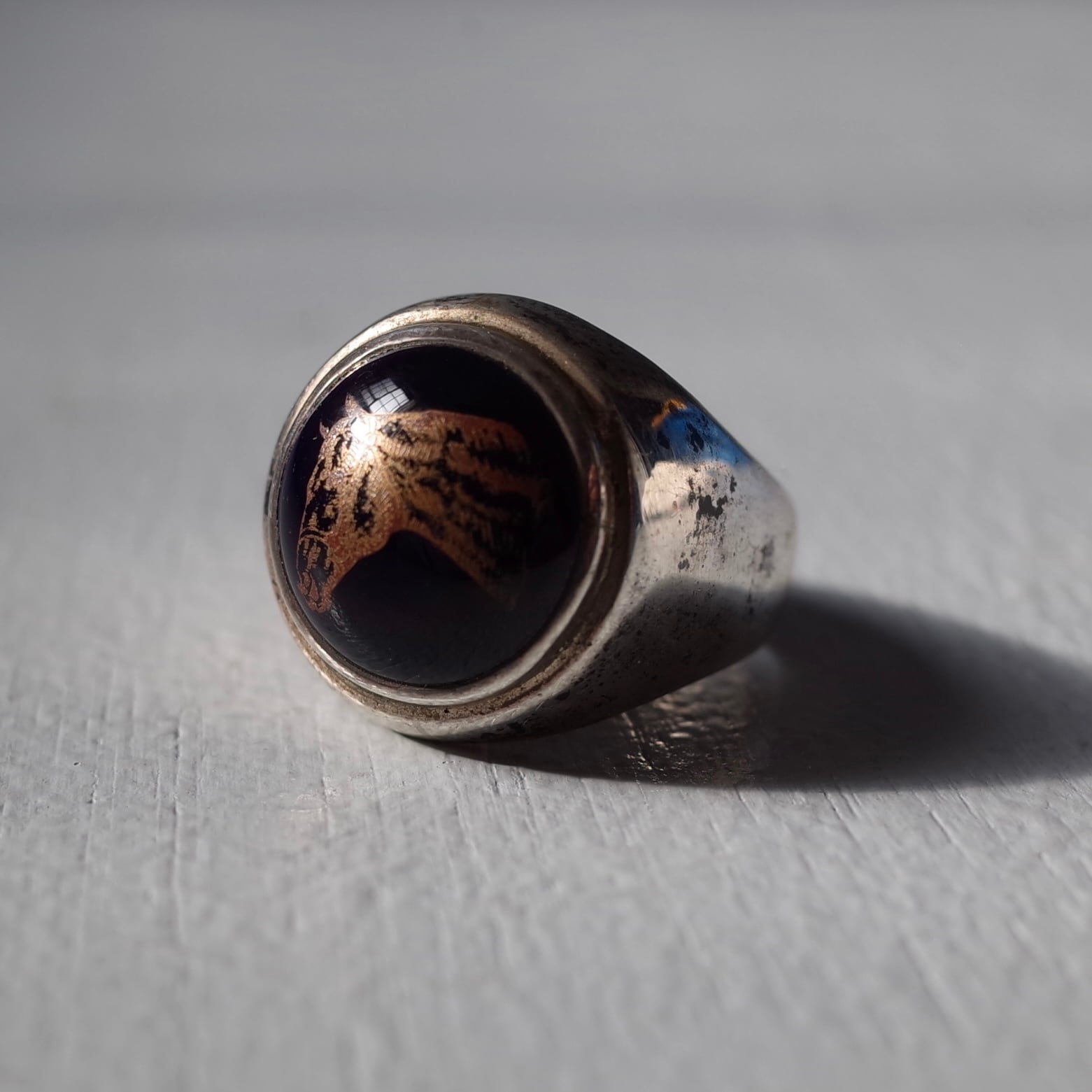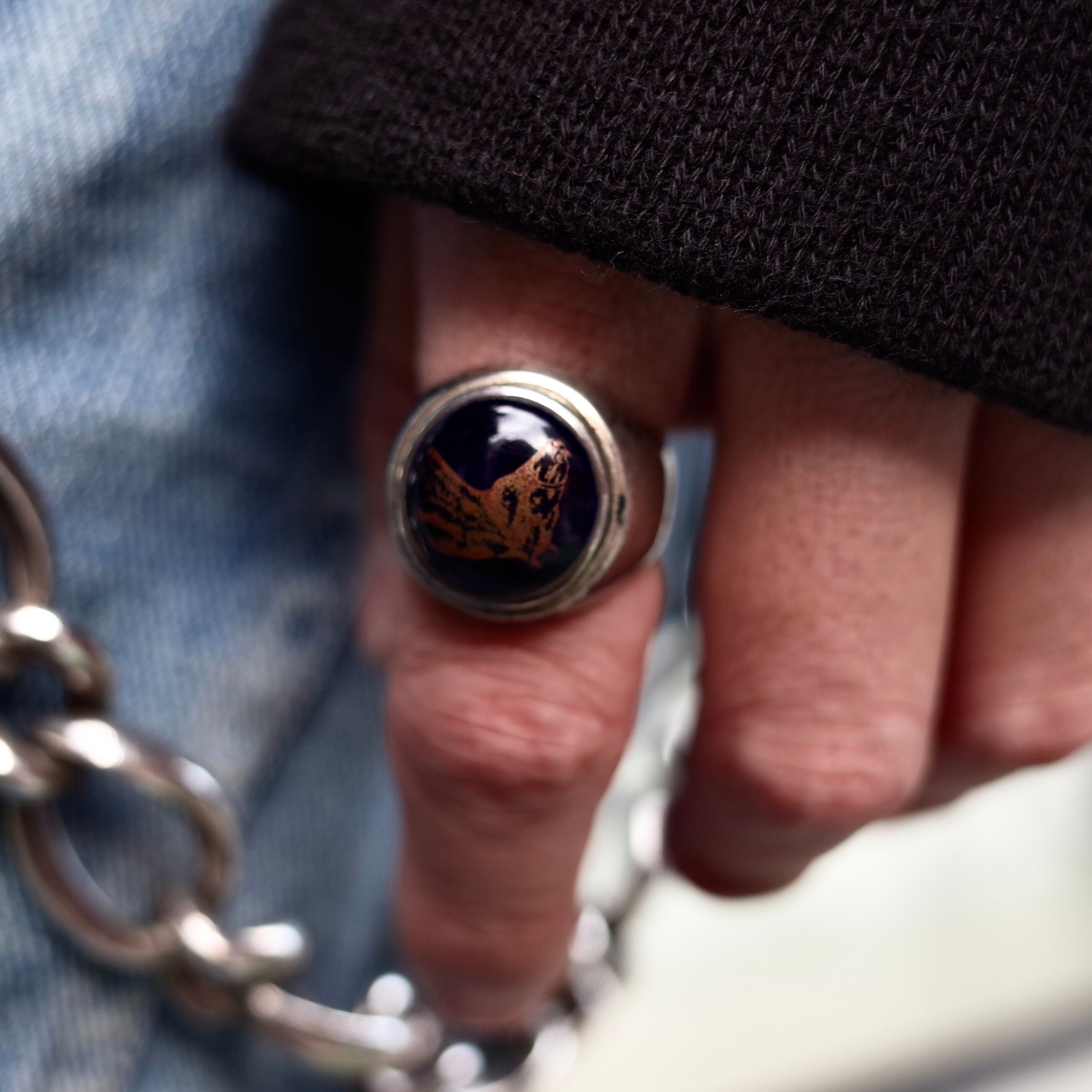 ブルーストーンに馬が描かれた神秘的なリング。美しさも
