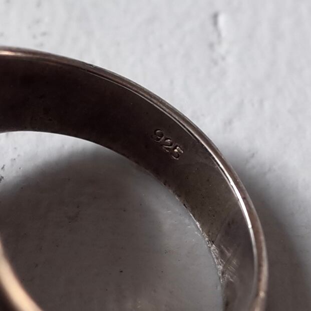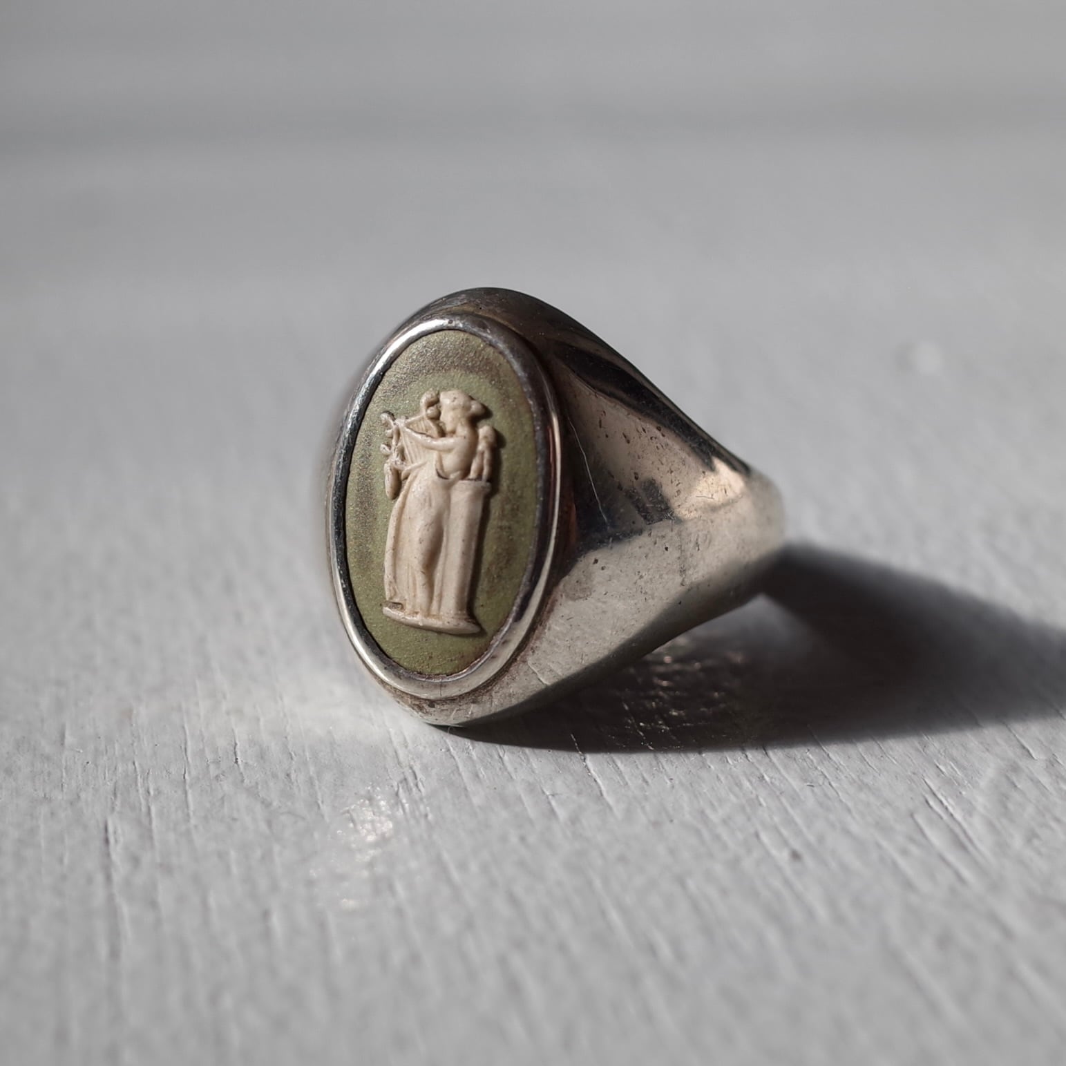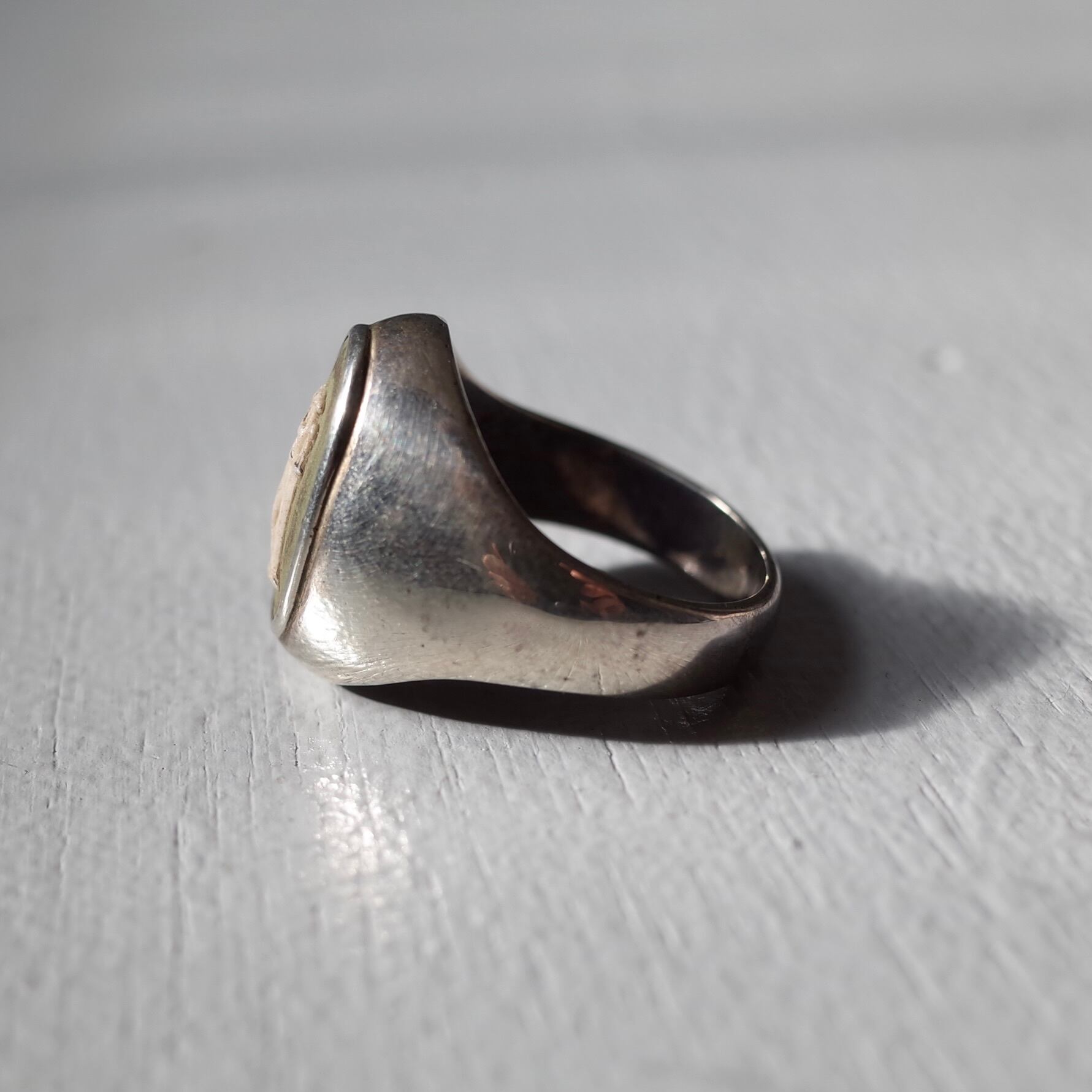 カメオがトップにはめ込まれた上品なリング。経年変化で