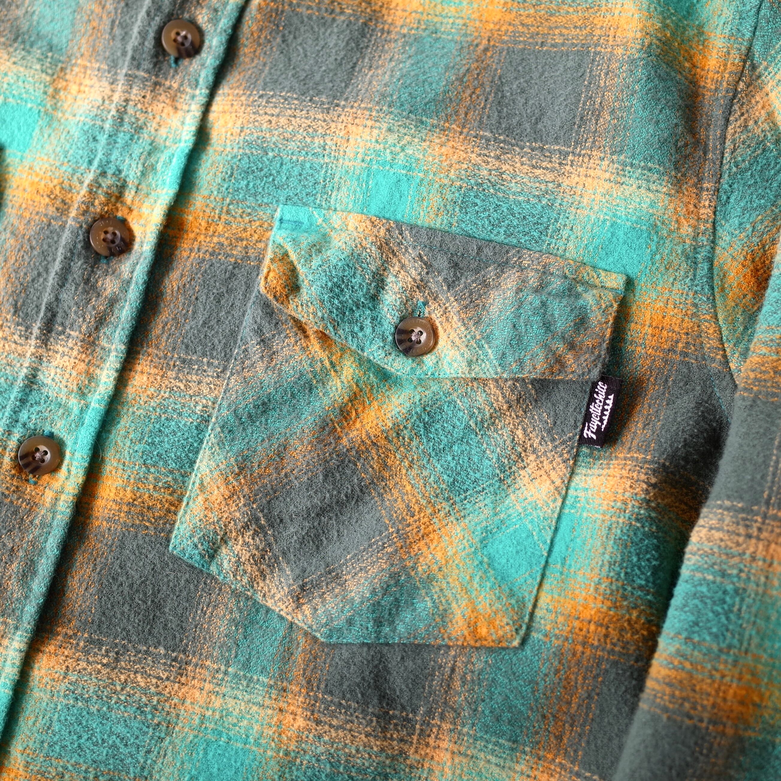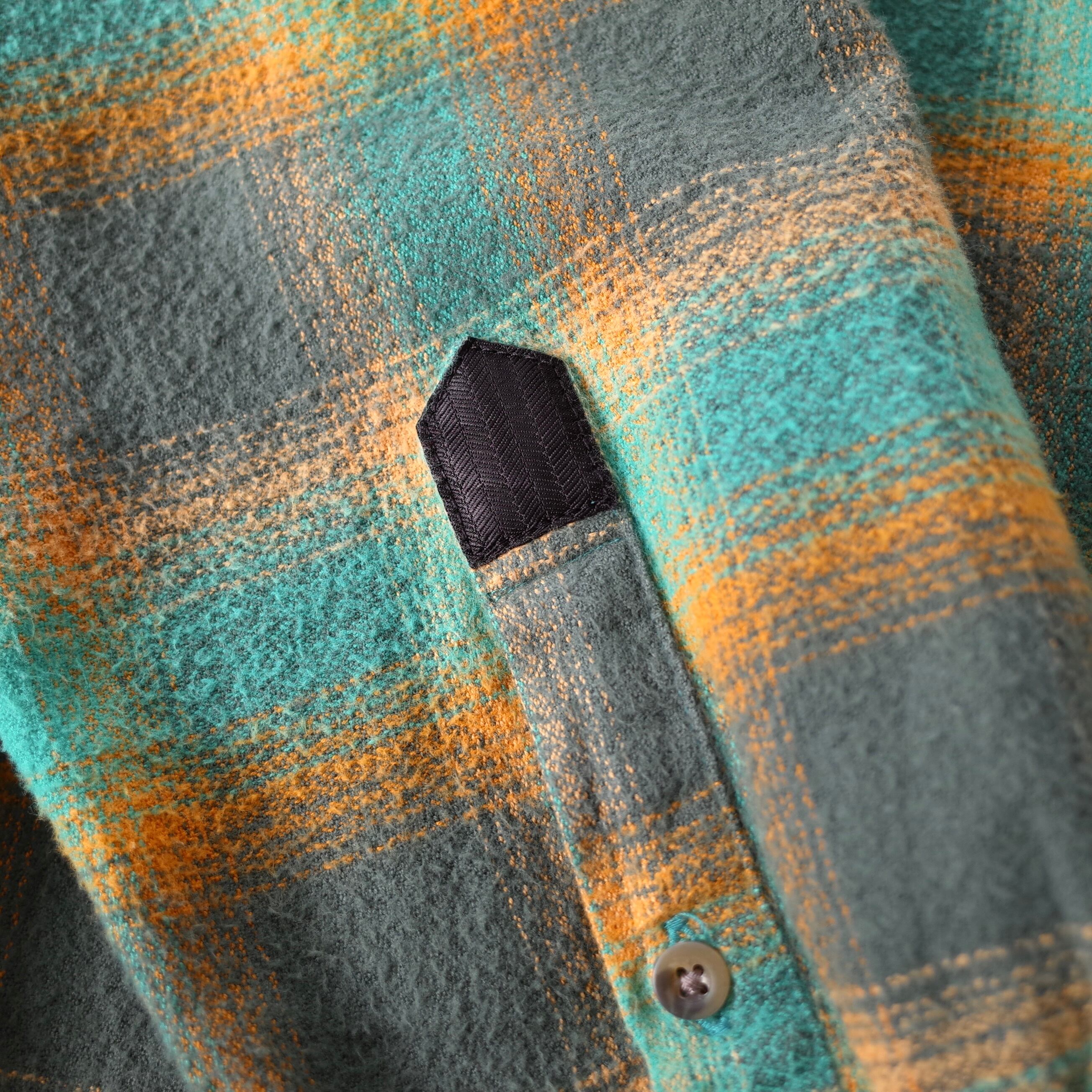ターコイズやサンイエローの美しい配色をしたチェックで