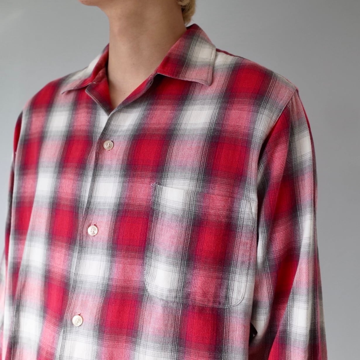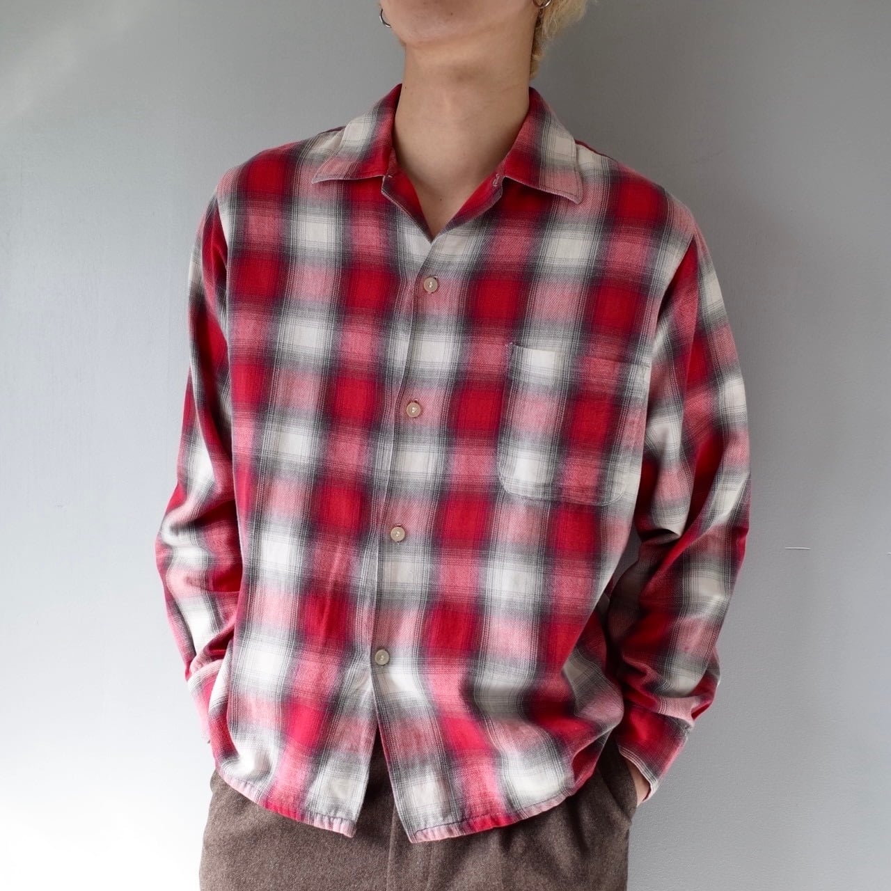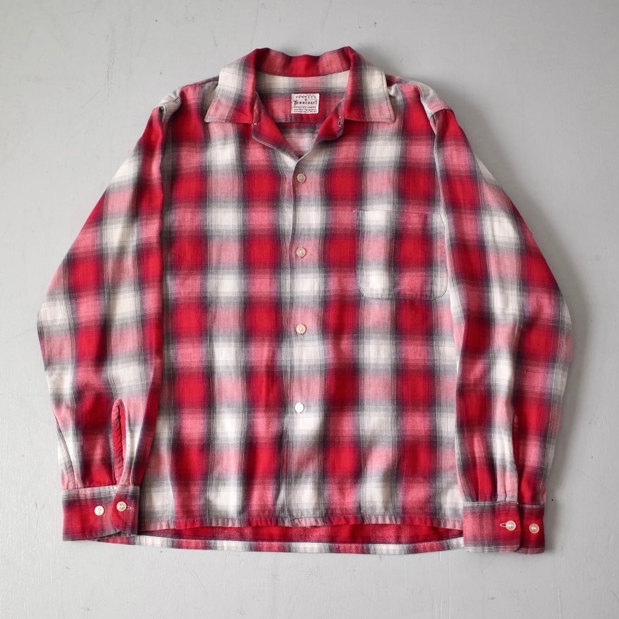 【VINTAGE】 “TOWNCRAFT” 60’s~ Open Collar Ombre Check Shirt