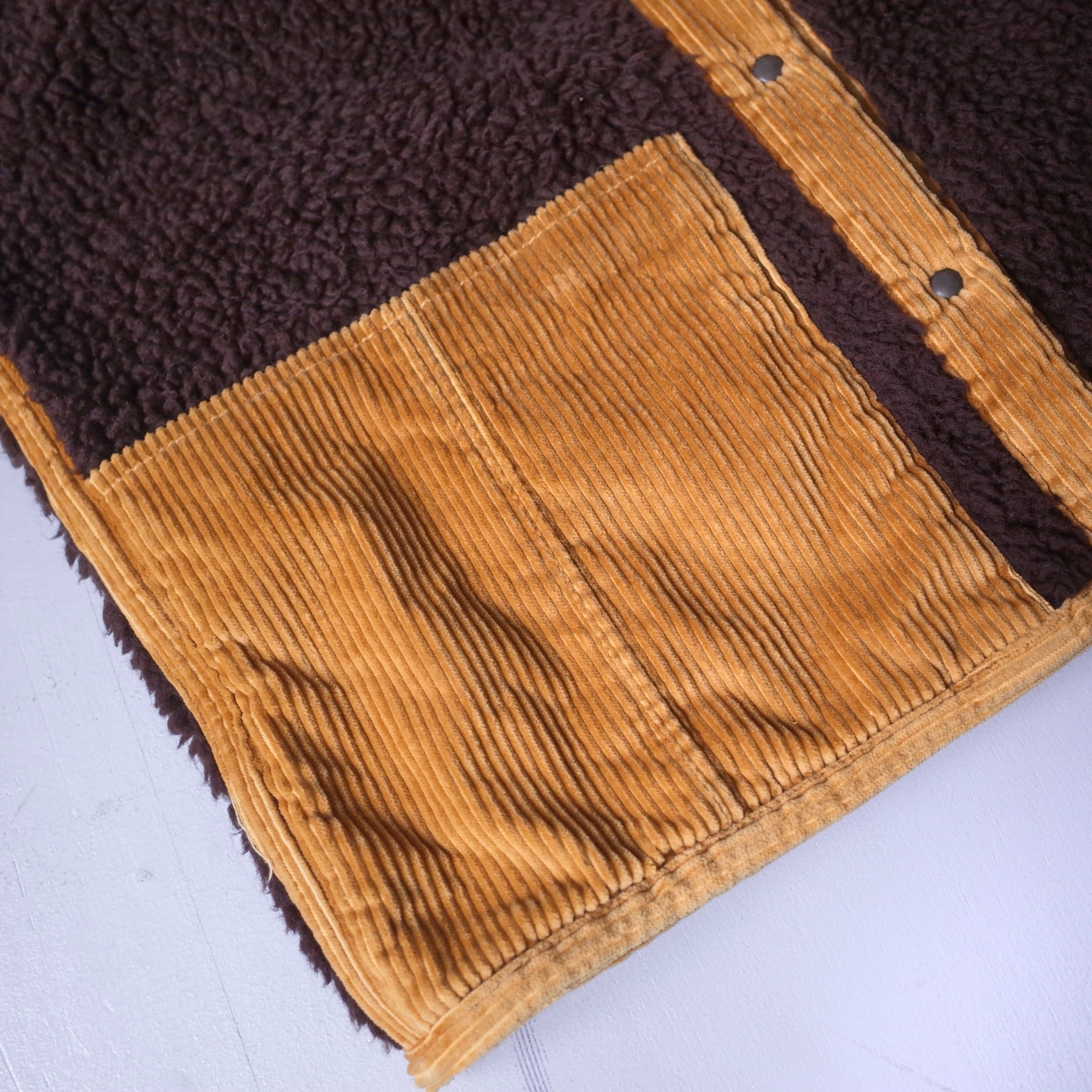 コーデュロイ生地による組み合わせに惹かれる一着。大変
