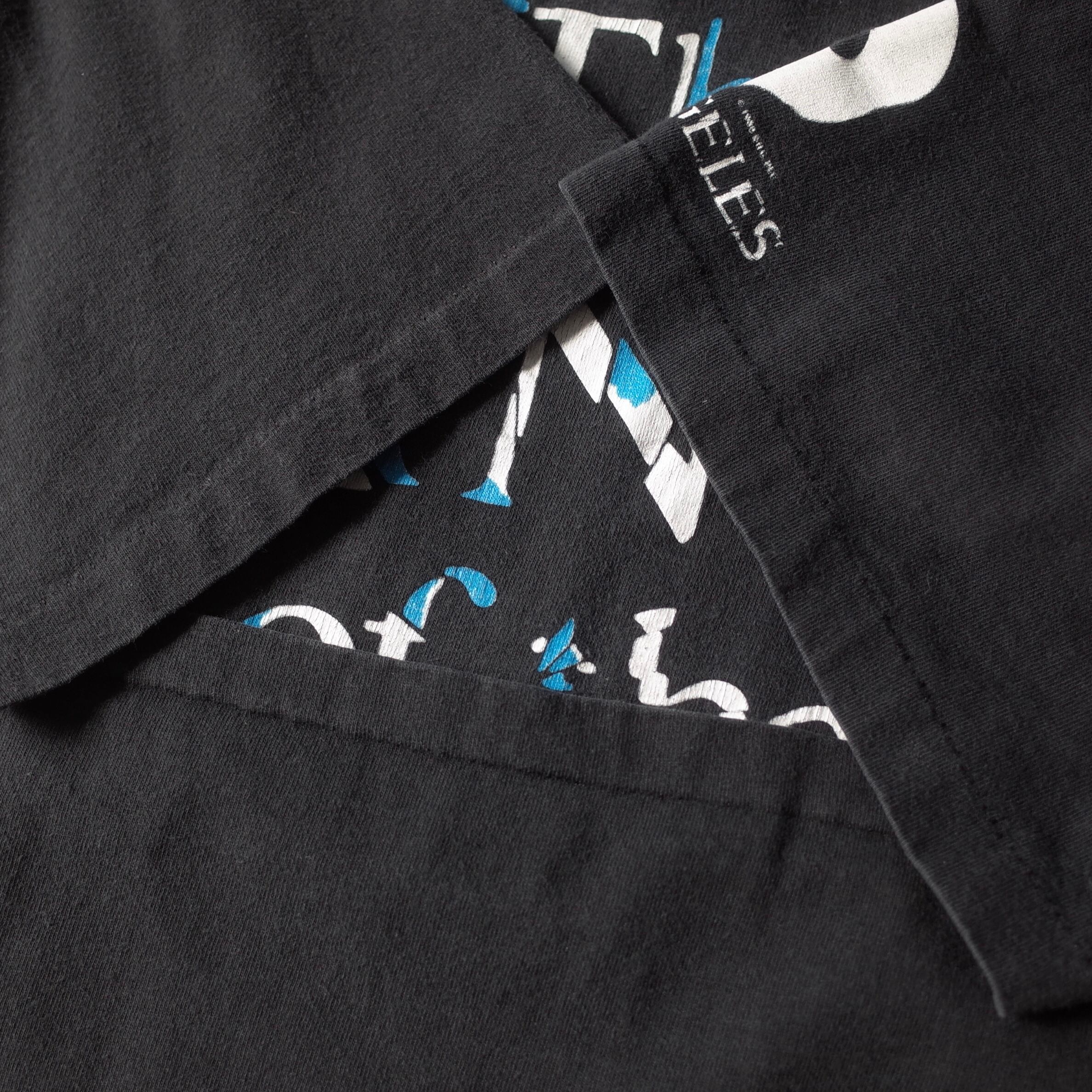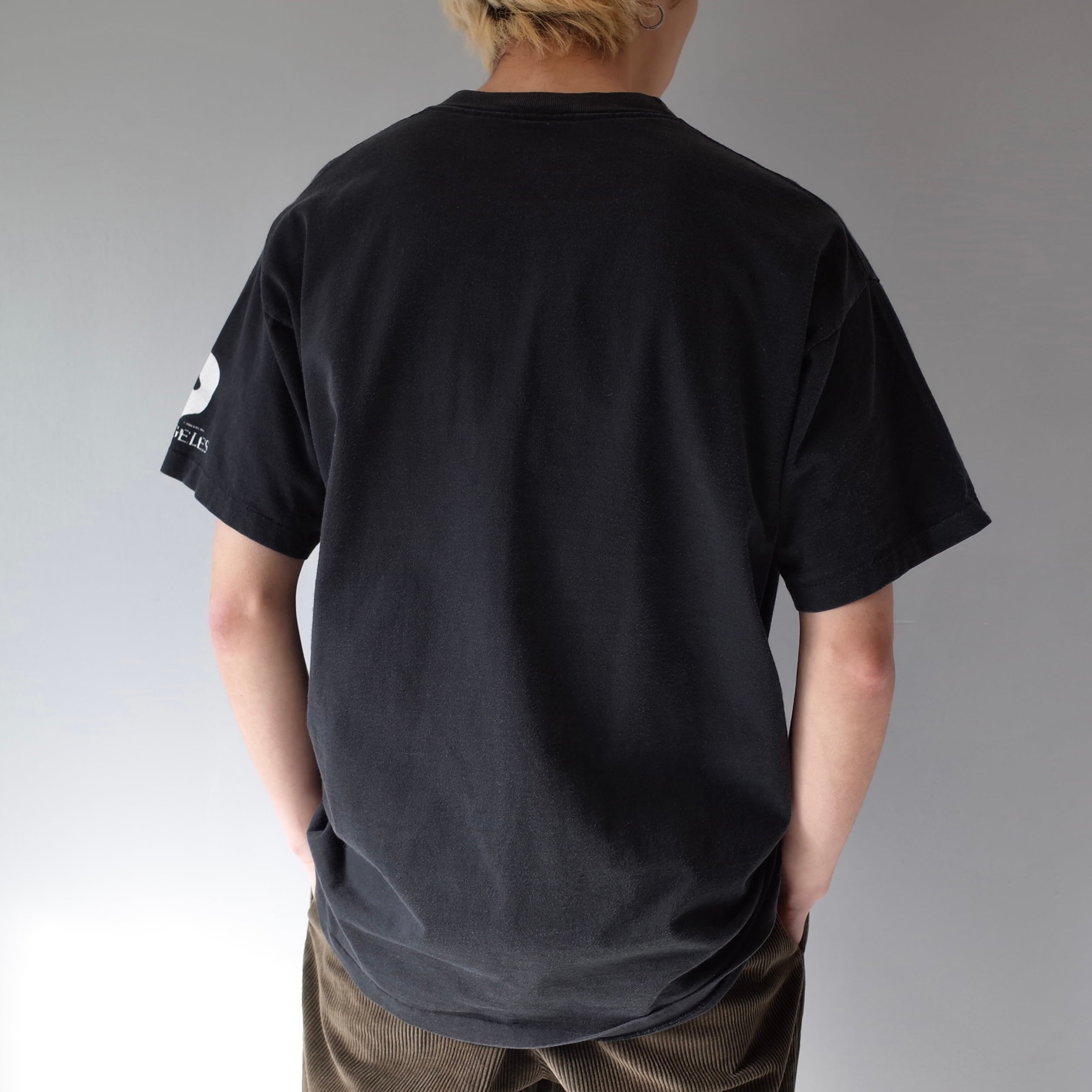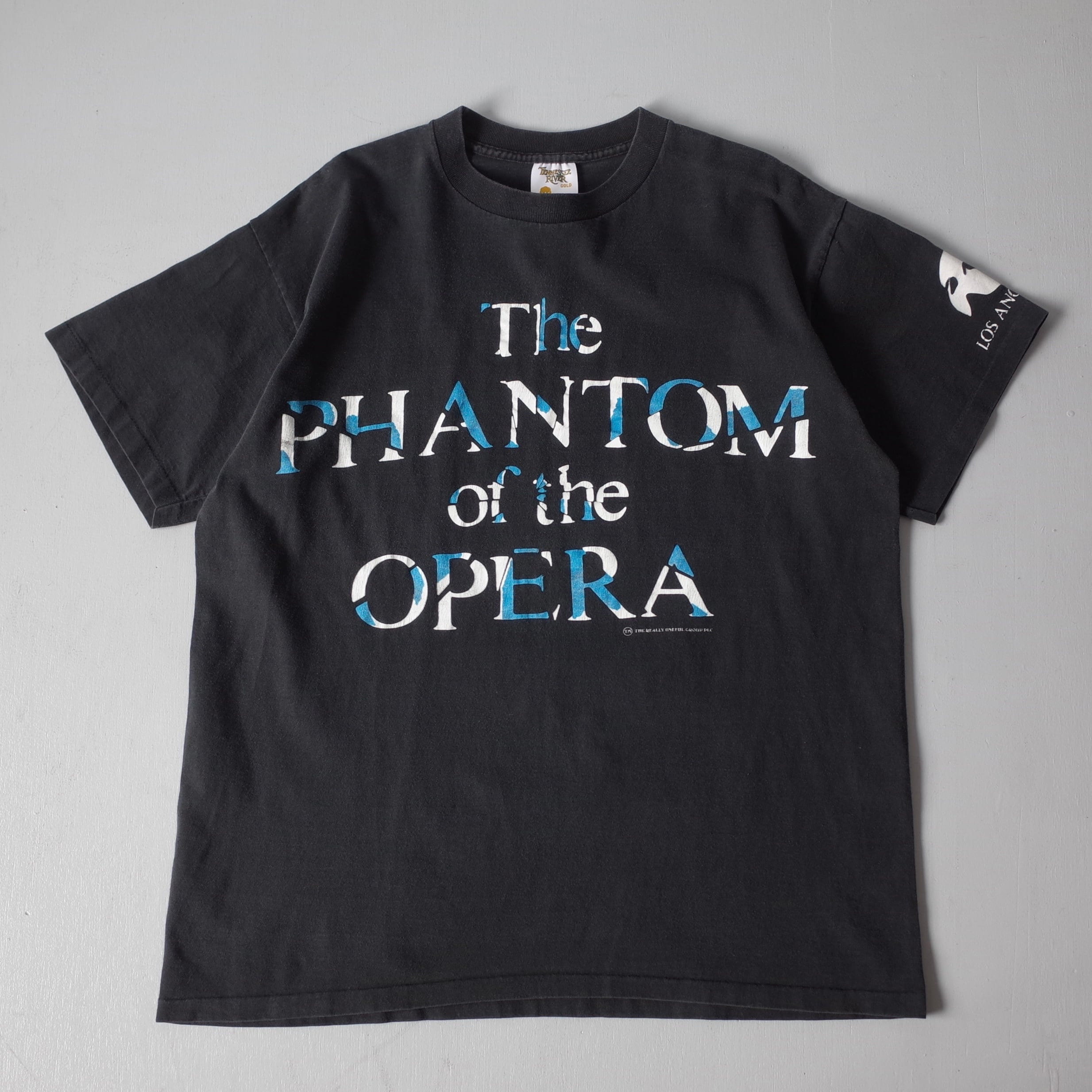 19世紀後半のパリ・オペラ座を舞台としたミュージカル『オペラ座の怪人』のTシャツを御紹介。フロントに大きくデザインされた作品タイトルが印象的で、袖プリントからロサンゼルスで行われた講演の際の1枚だと推測できます。