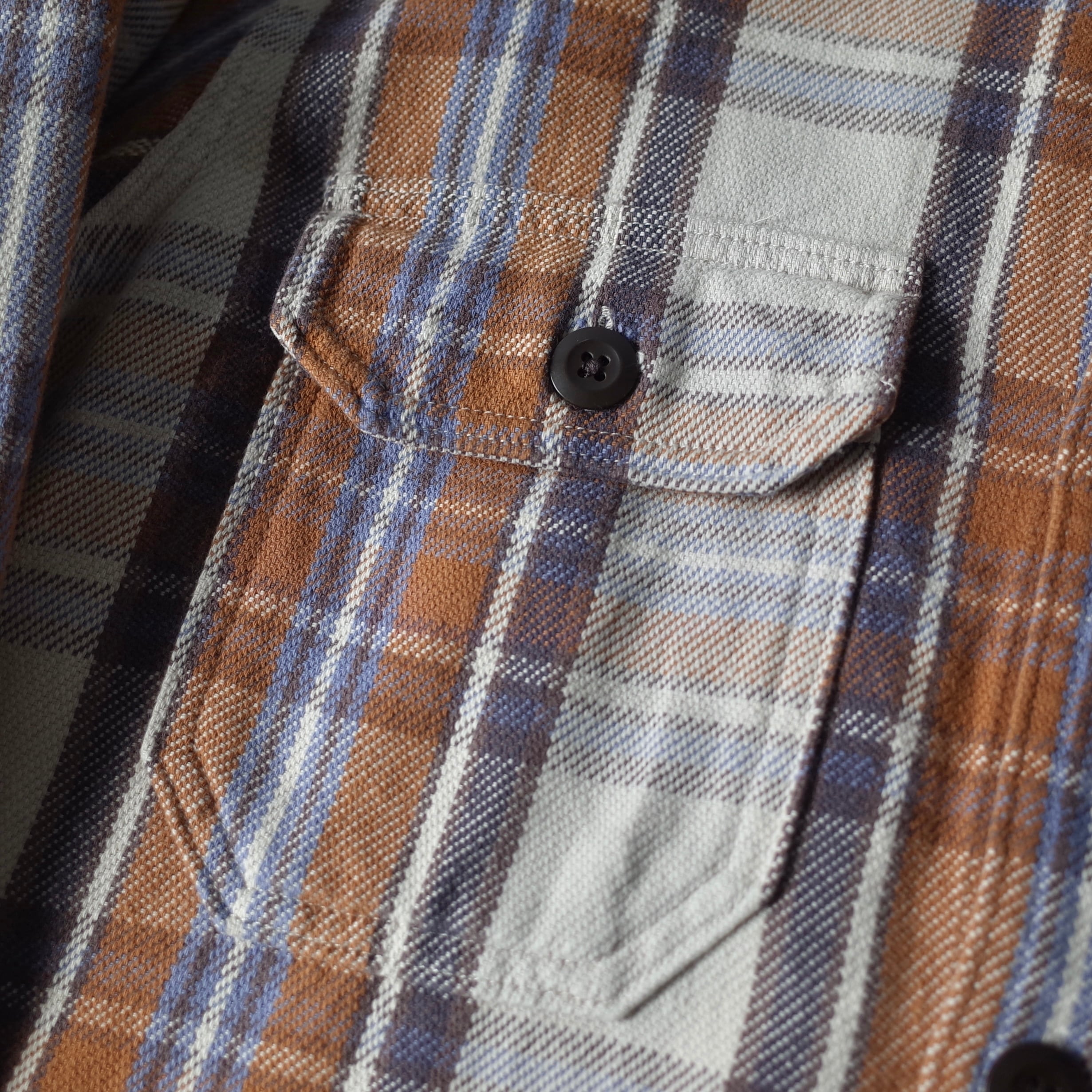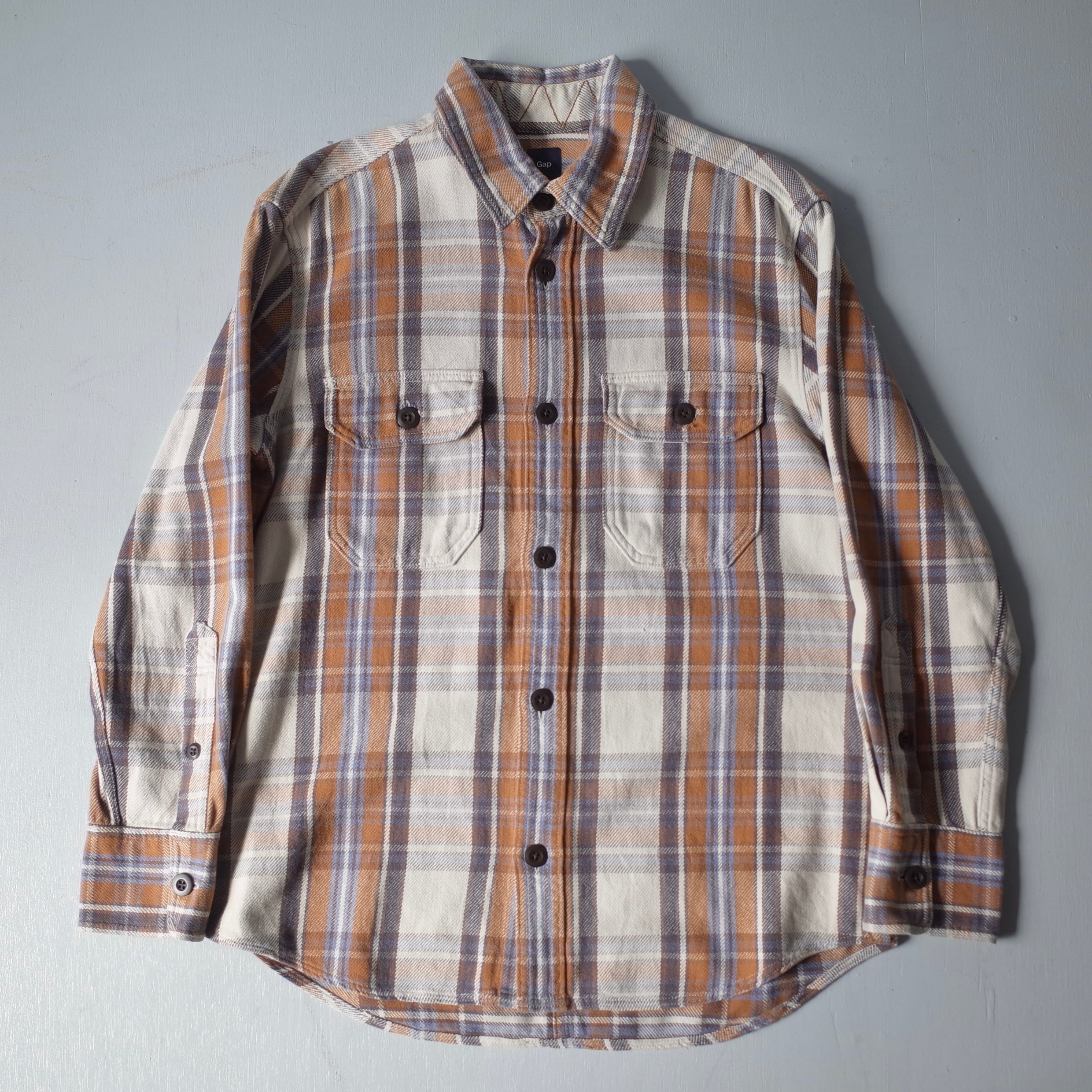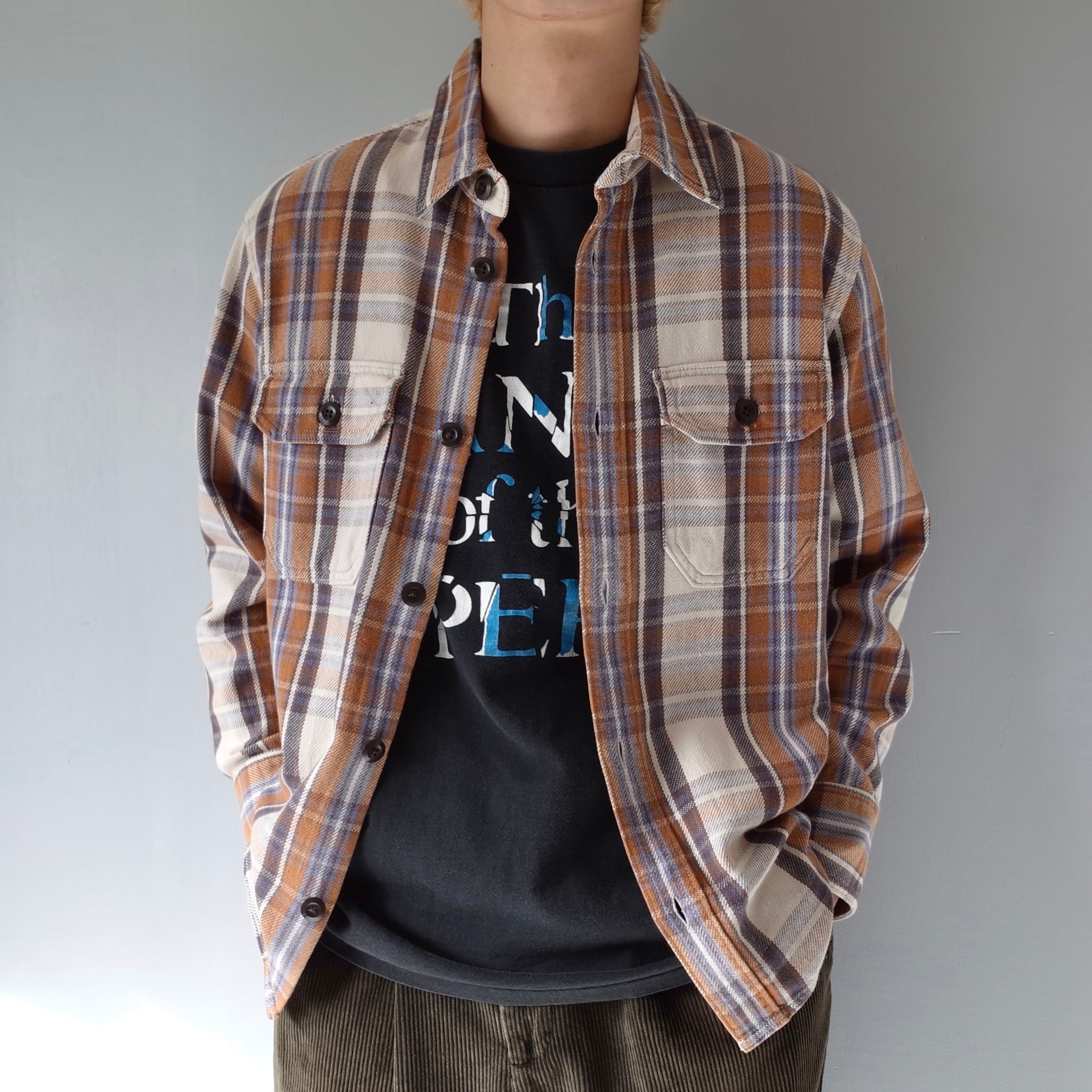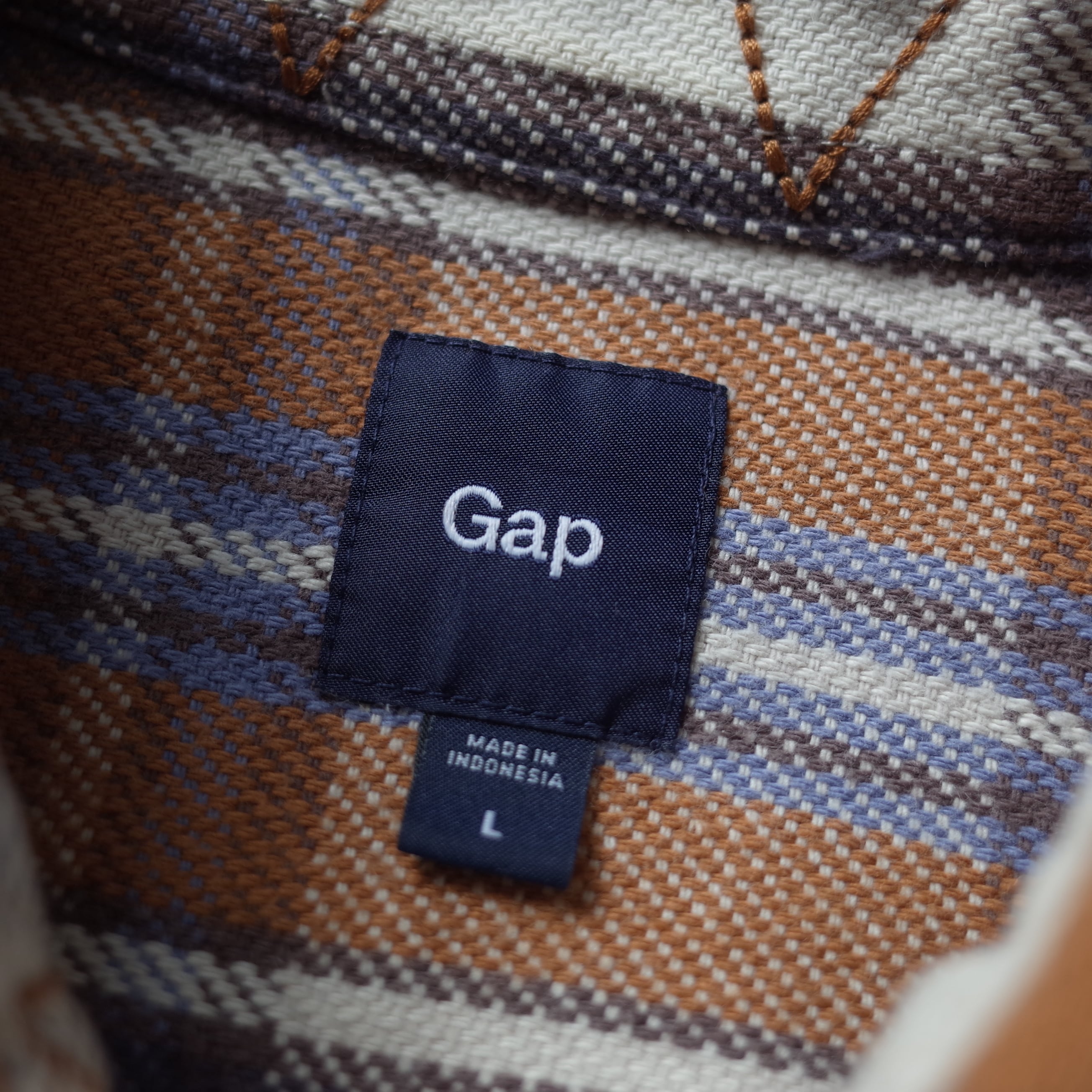 春らしさ溢れる心地良い色合いに惹かれる"GAP"のコットンネルシャツ。肉厚でラフな生地感と幅広短丈のシルエットが魅力的な一枚。春先に一枚でサラッと羽織るのは勿論、まだまだ冷え込む今の時期には薄手なタートルネックなどと合わせるのも良いではないでしょうか。是非。