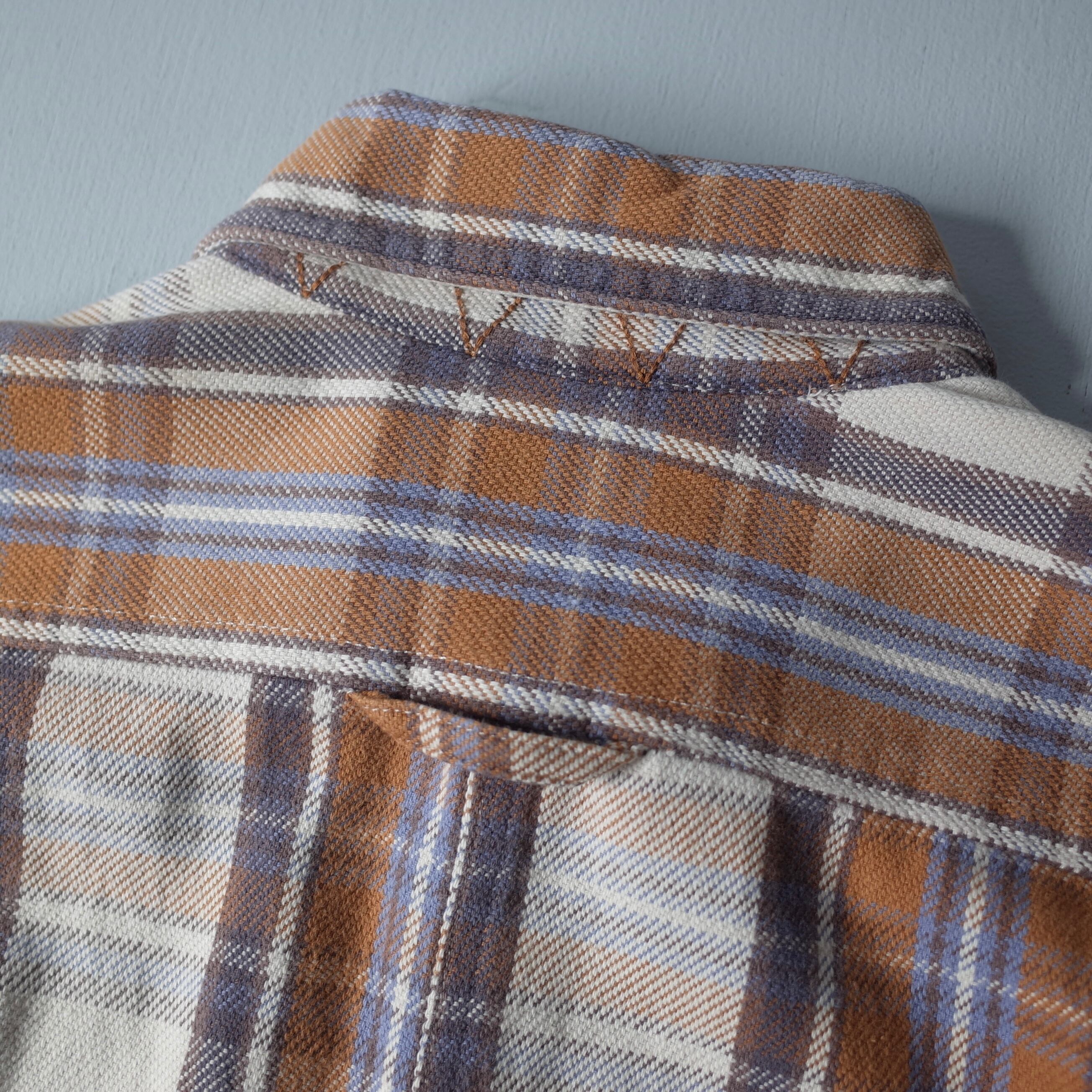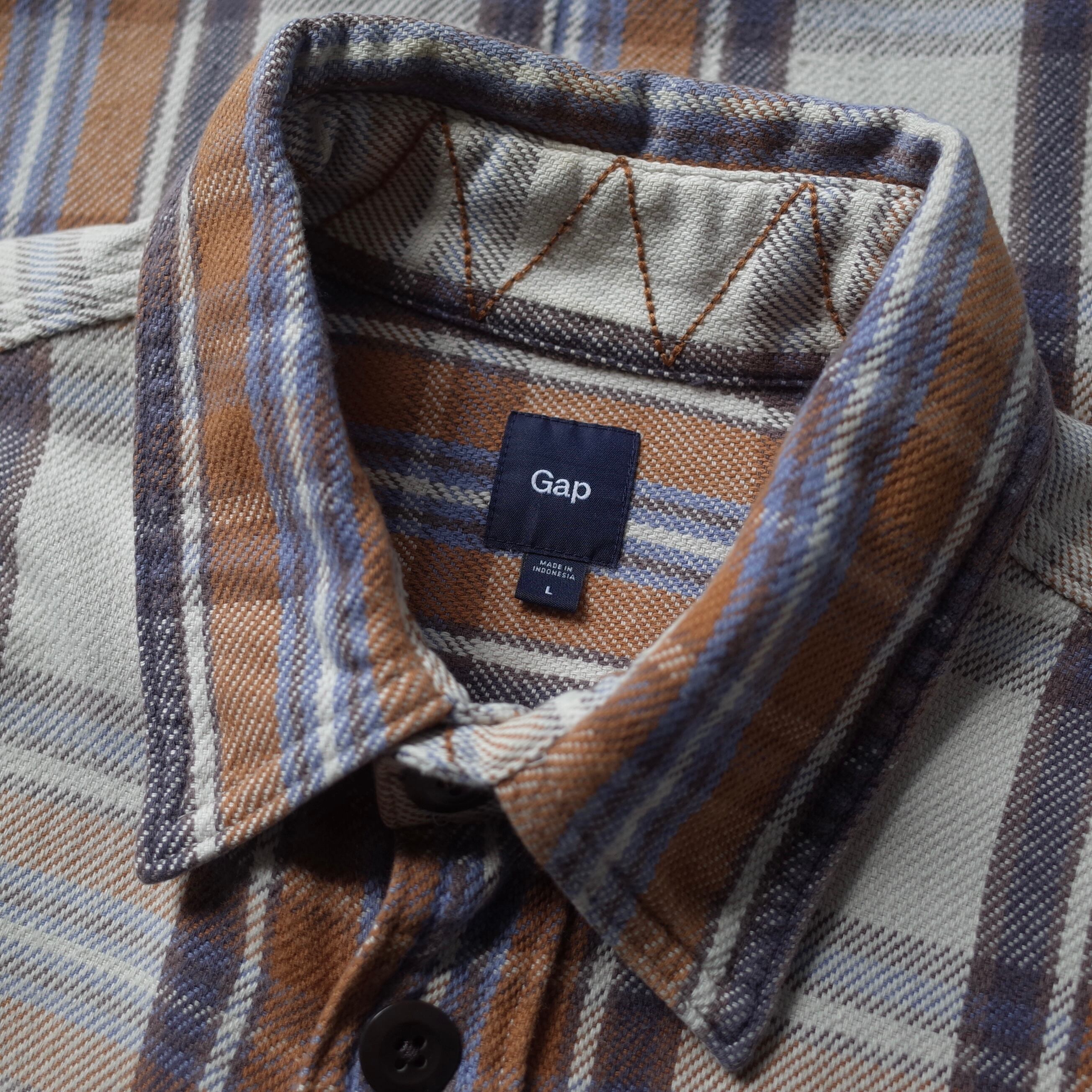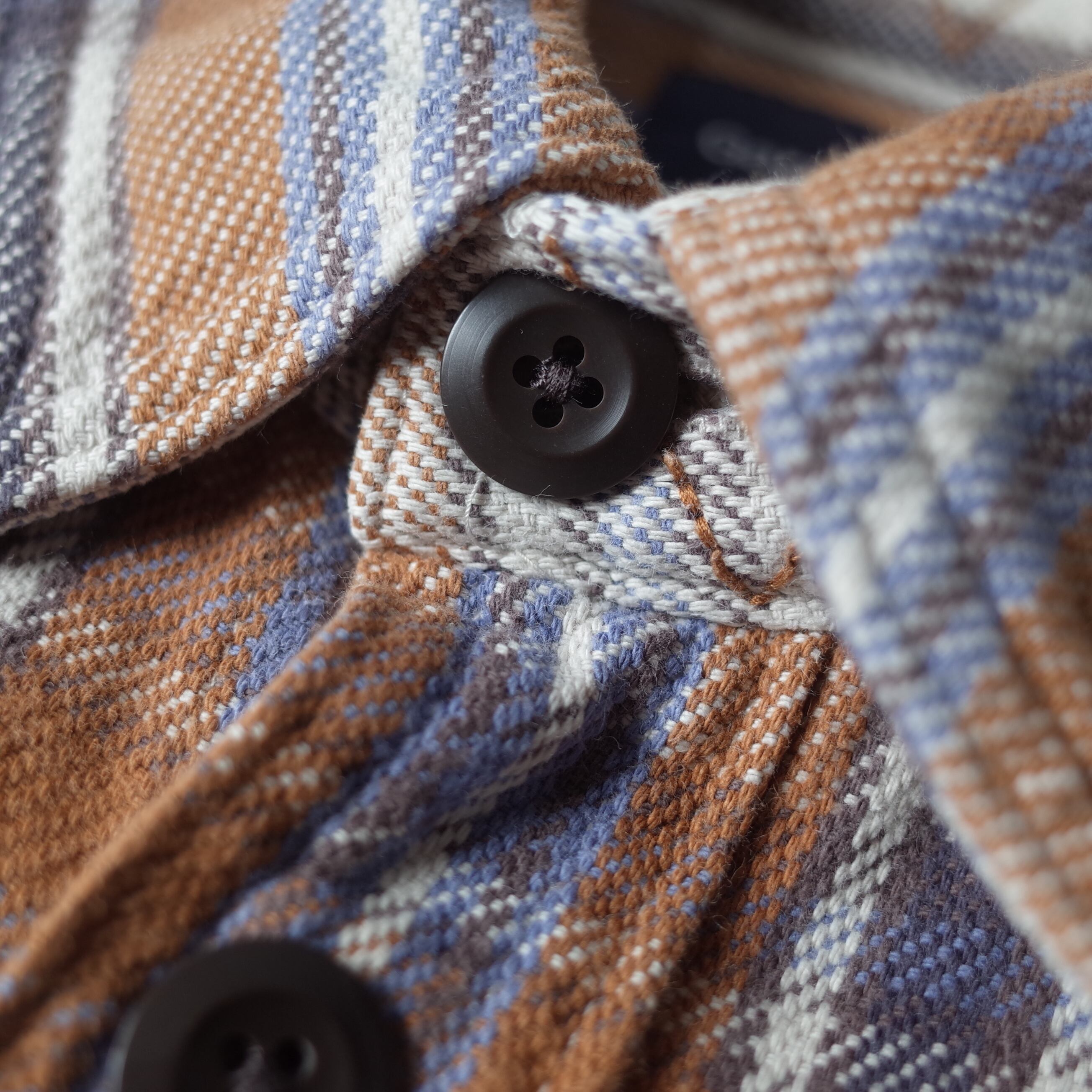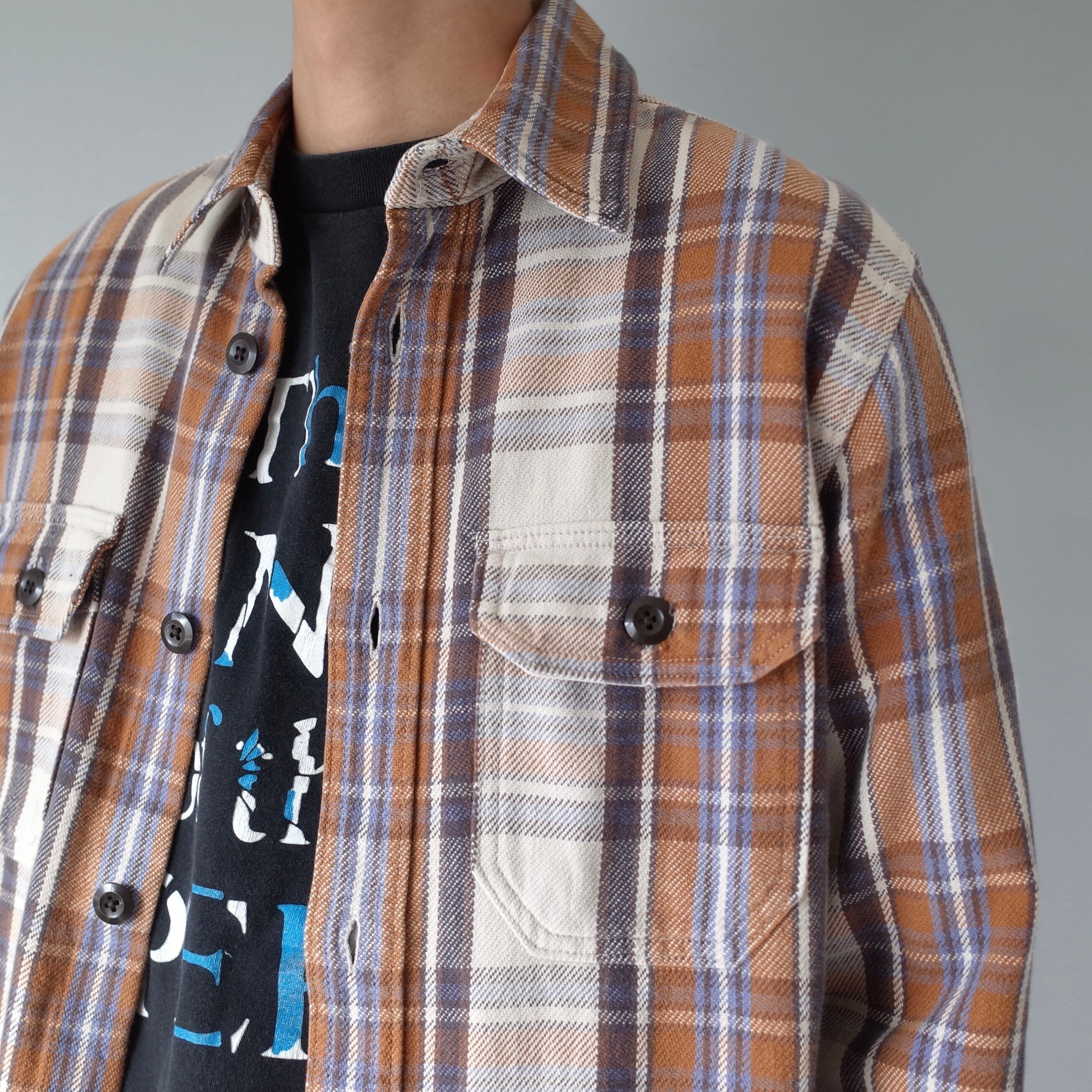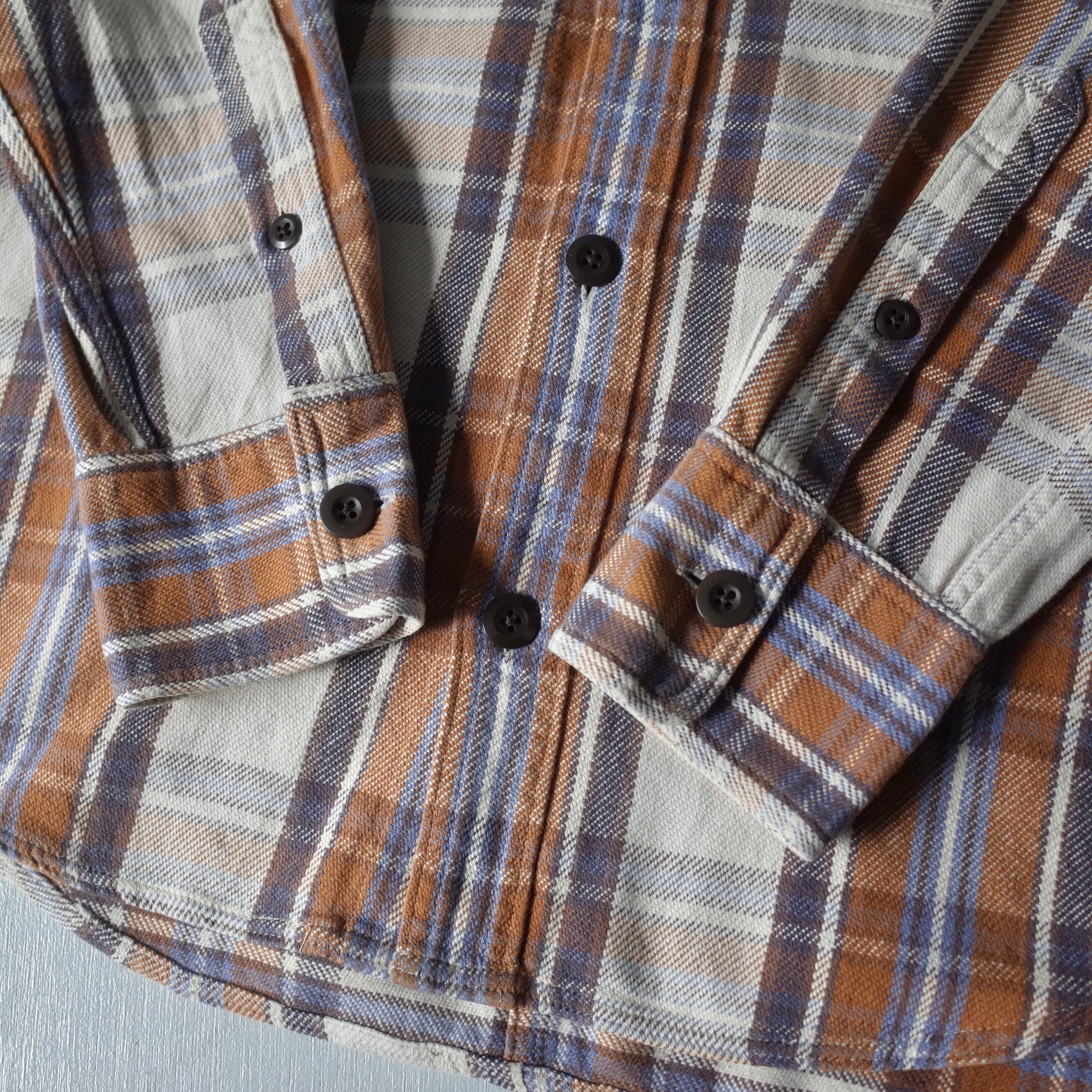 春らしさ溢れる心地良い色合いに惹かれる"GAP"のコットンネルシャツ。肉厚でラフな生地感と幅広短丈のシルエットが魅力的な一枚。春先に一枚でサラッと羽織るのは勿論、まだまだ冷え込む今の時期には薄手なタートルネックなどと合わせるのも良いではないでしょうか。是非。