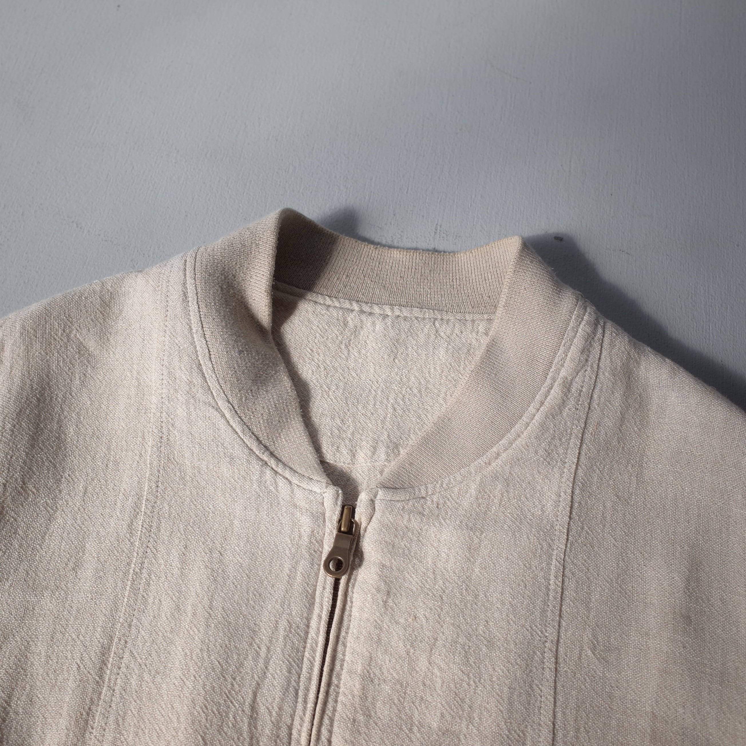 麻のトロッとした生地も心地良いジップアップブルゾン。