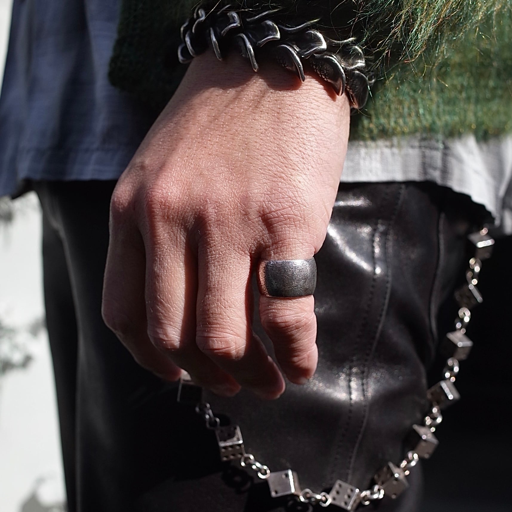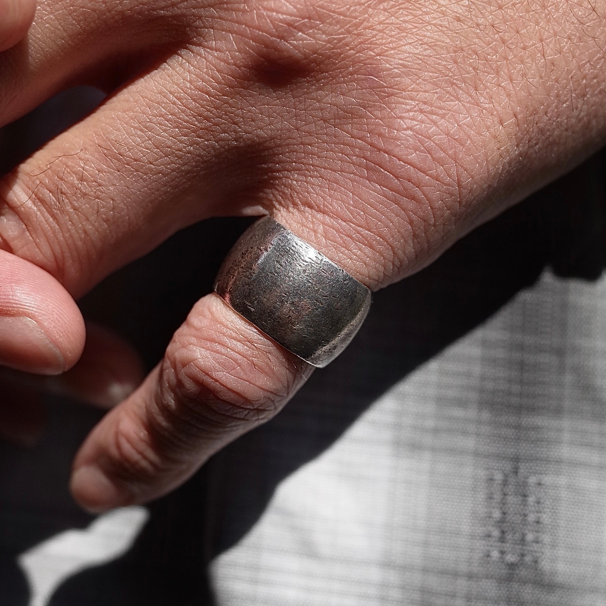 経年変化によるくすみと風合が抜群のメキシカンリング。ミニマルなデザインと重厚感ある表情が印象的で単体でも存在感を発揮し、様々なスタイルに相性良い逸品。