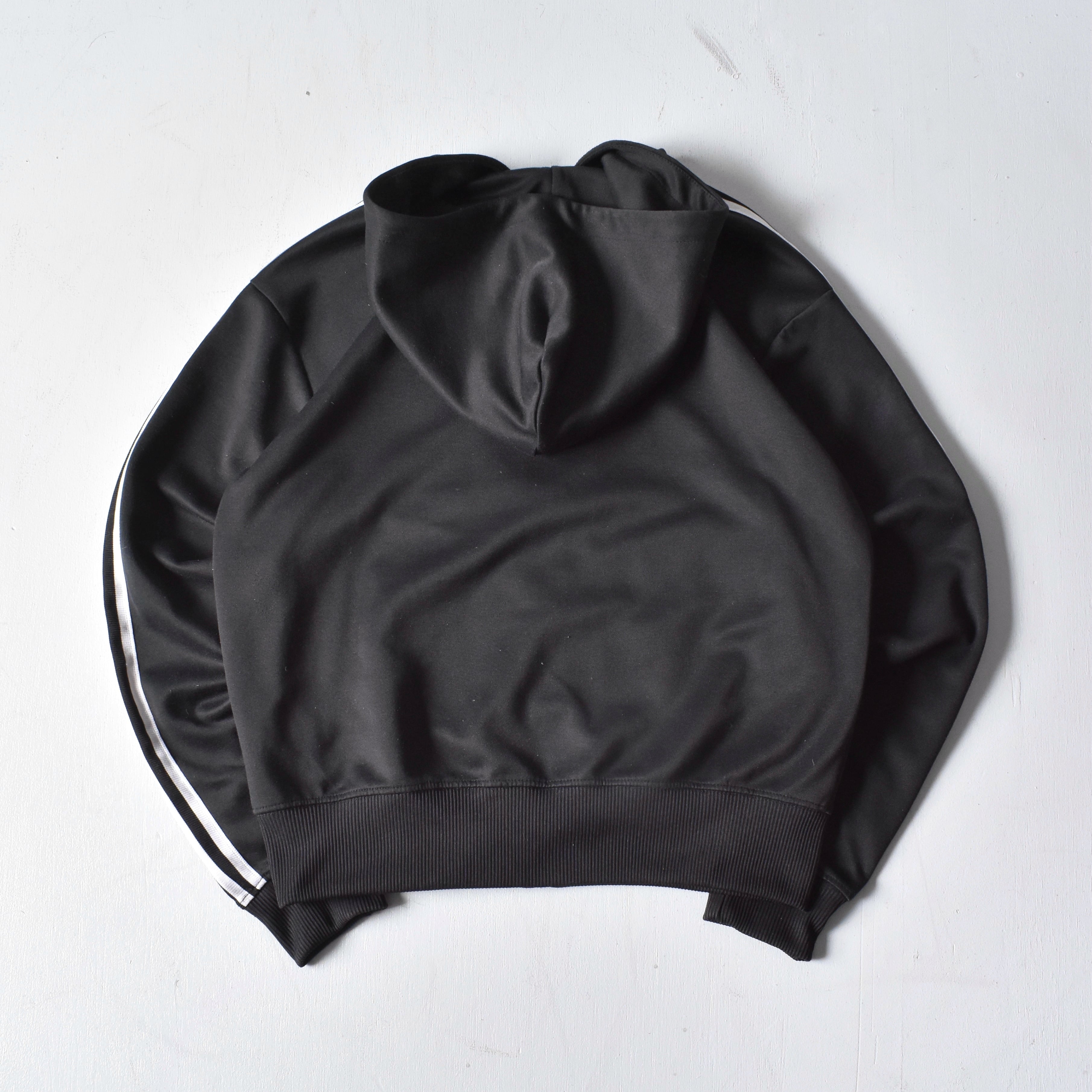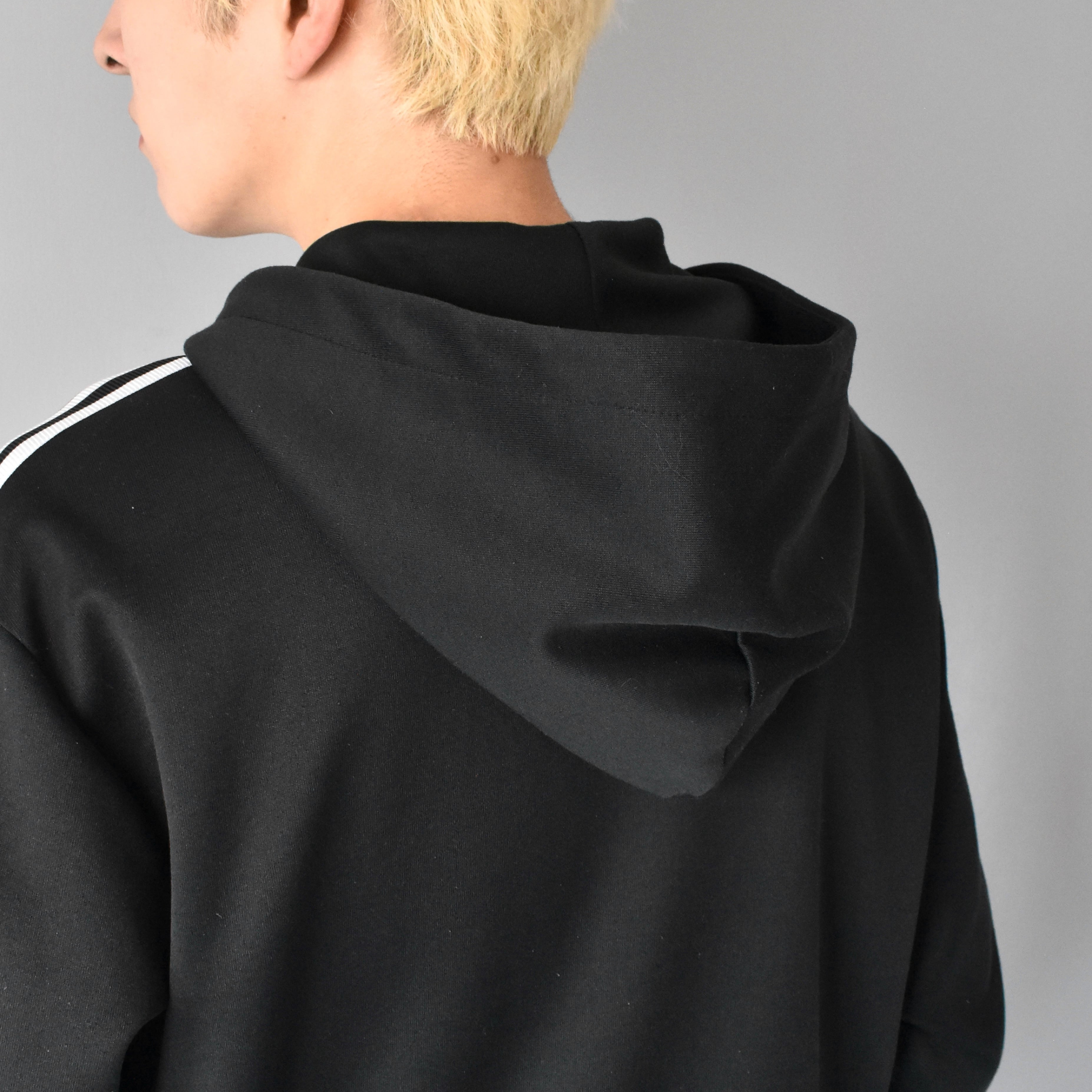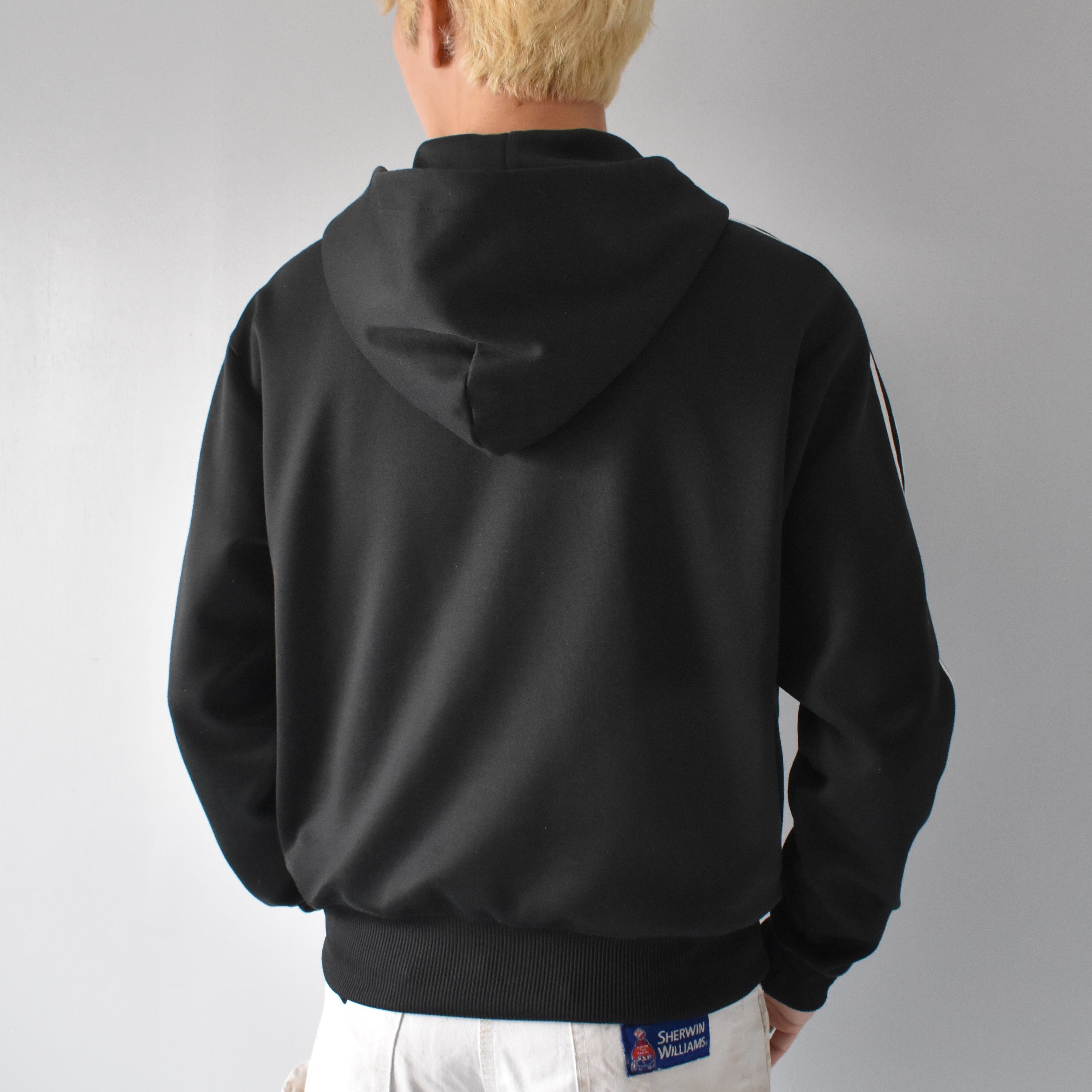 ジップが特徴的なジャケットフーディ。ブラックボディで