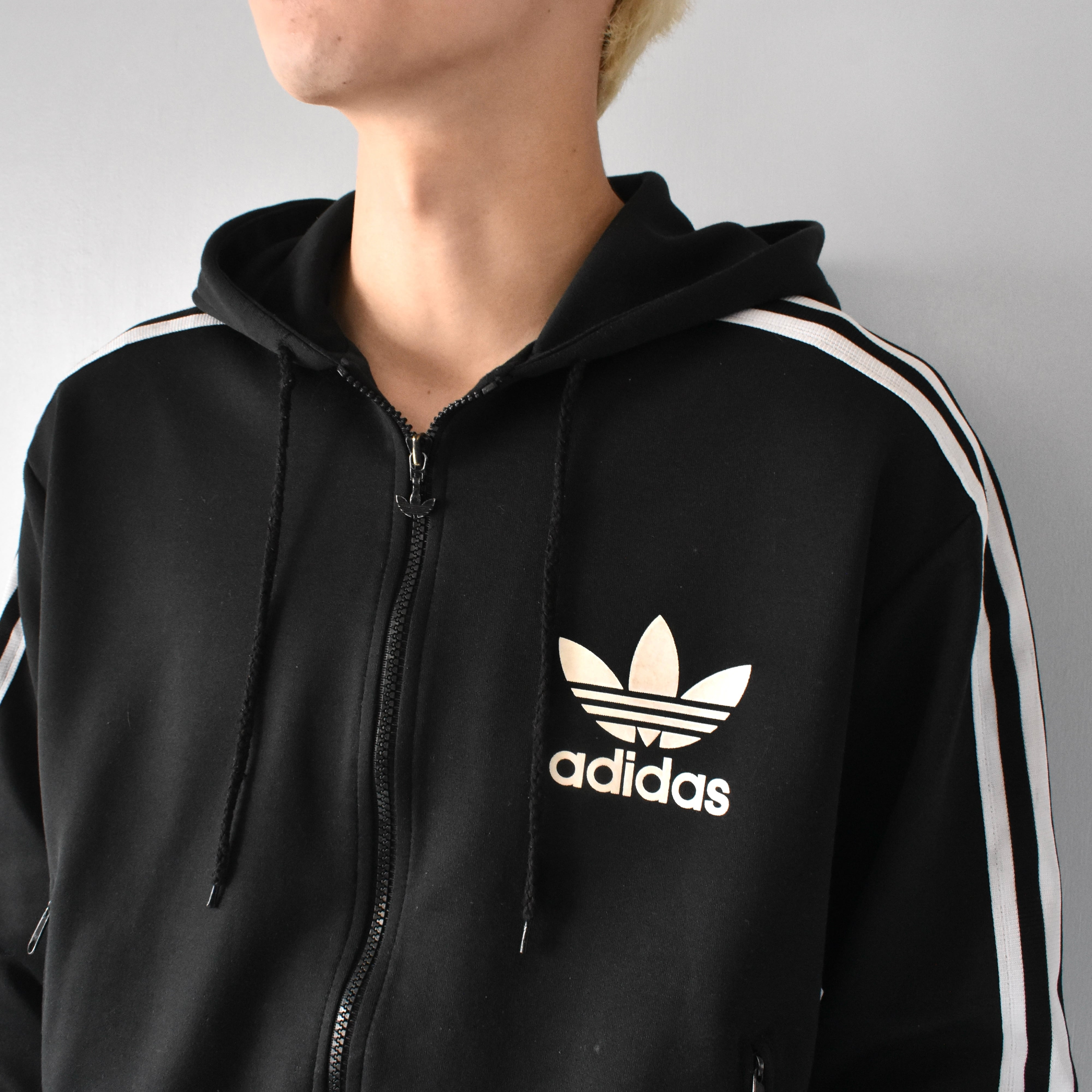 大振りな左胸のトレフォイルロゴと“adidas”オリジナル