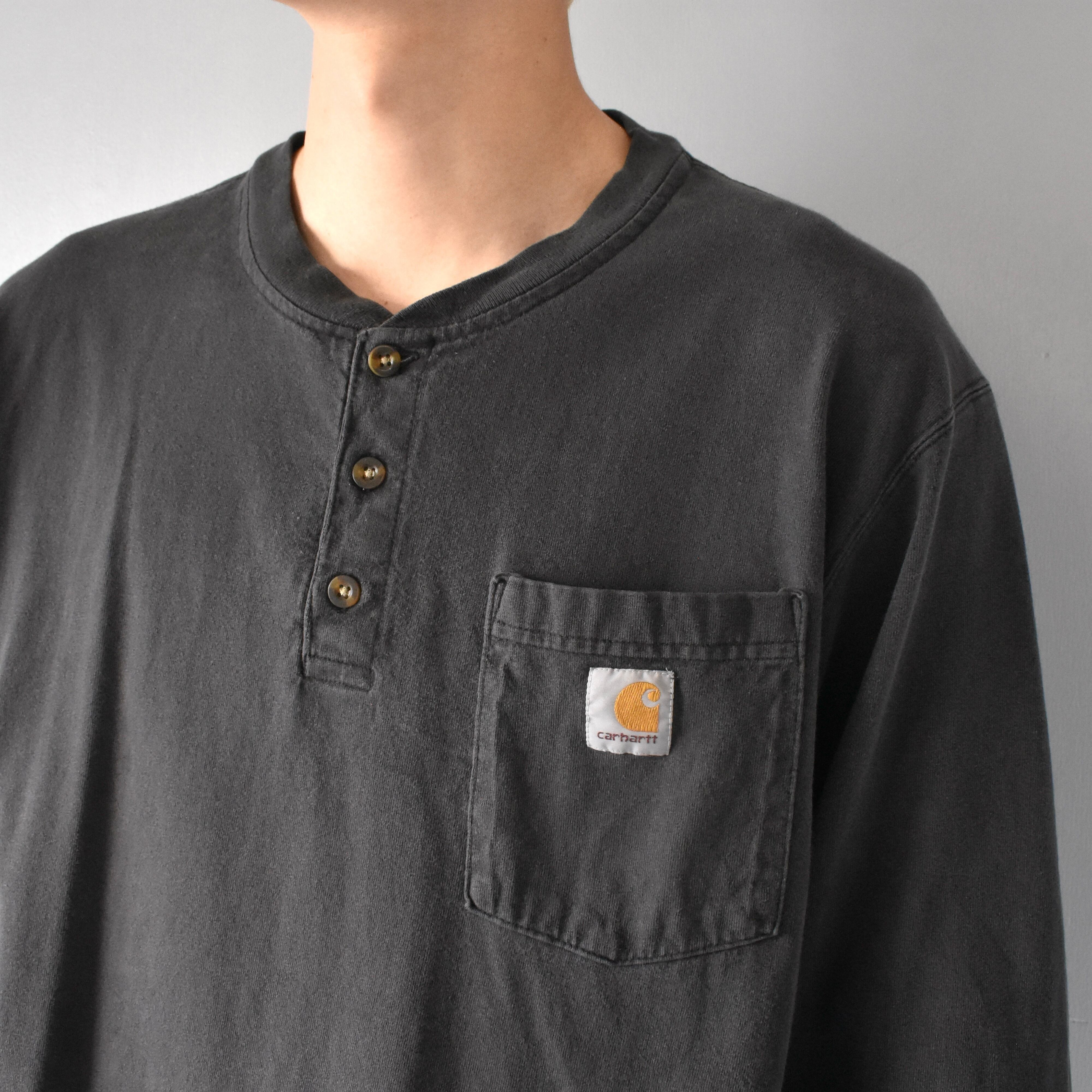 ヘンリーネック仕様の"Carhartt”Tシャツ。くたびれた