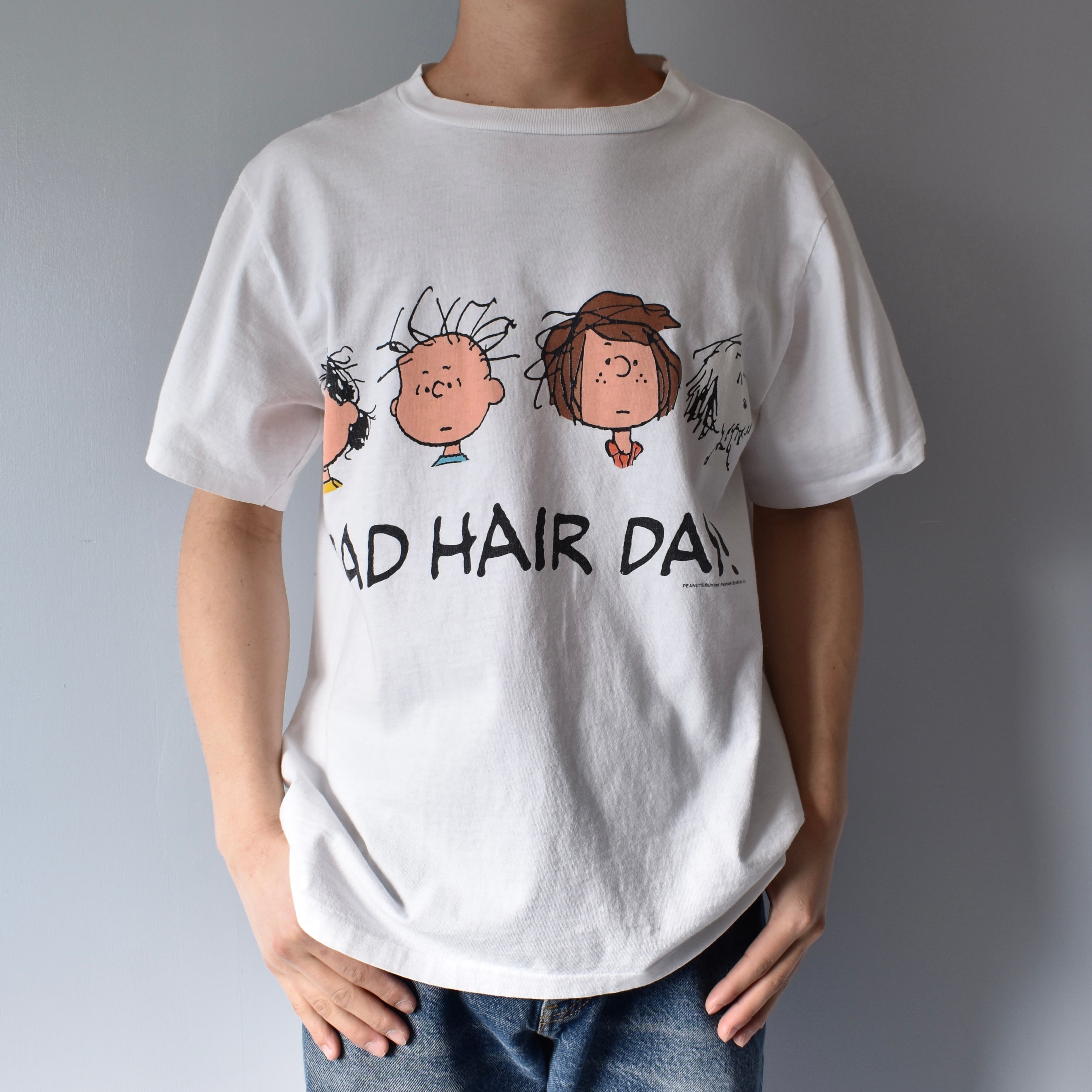 "PEANUTS" 『Bad Hair Day』 90's~ Double Side Printed Character T-shirt s/s