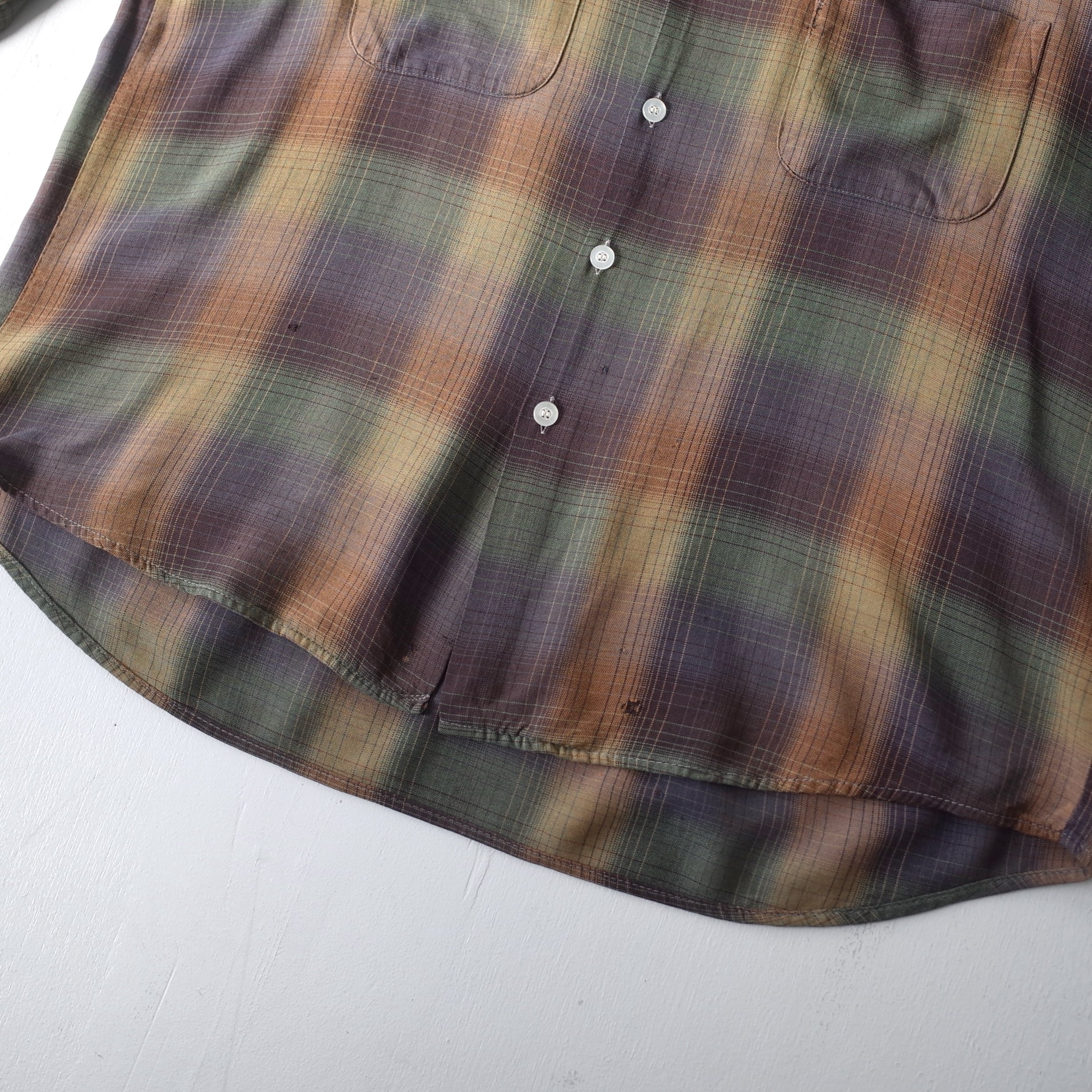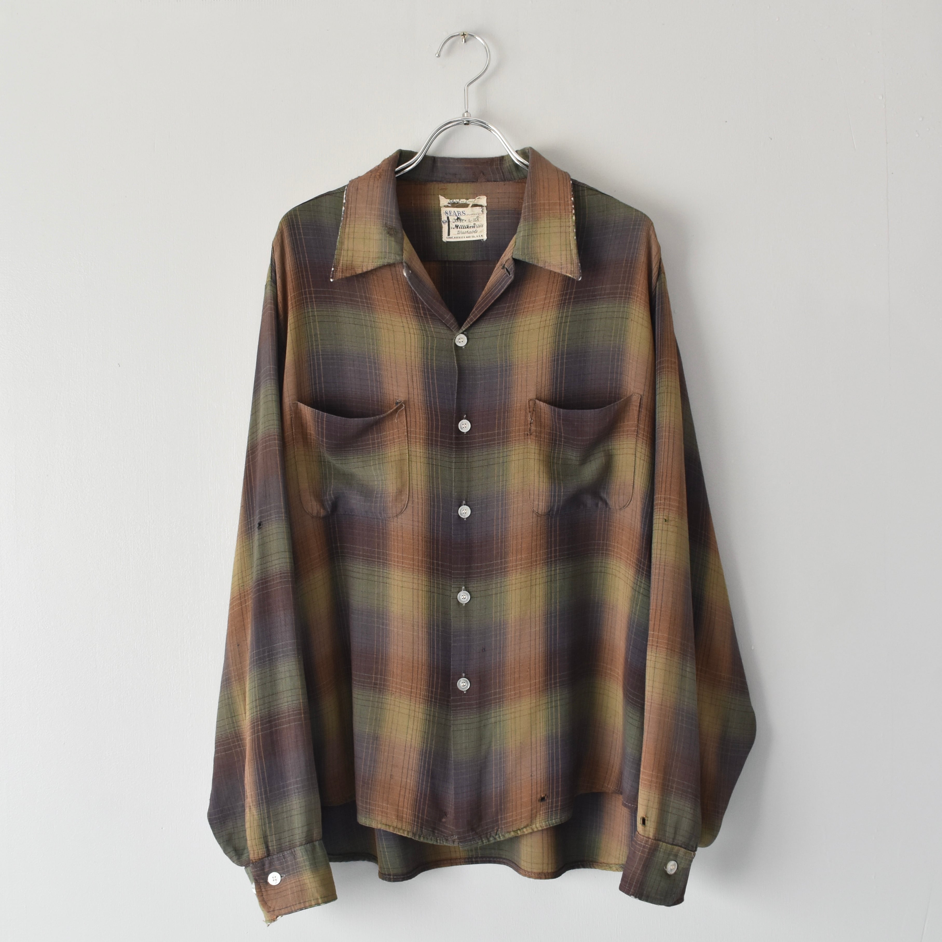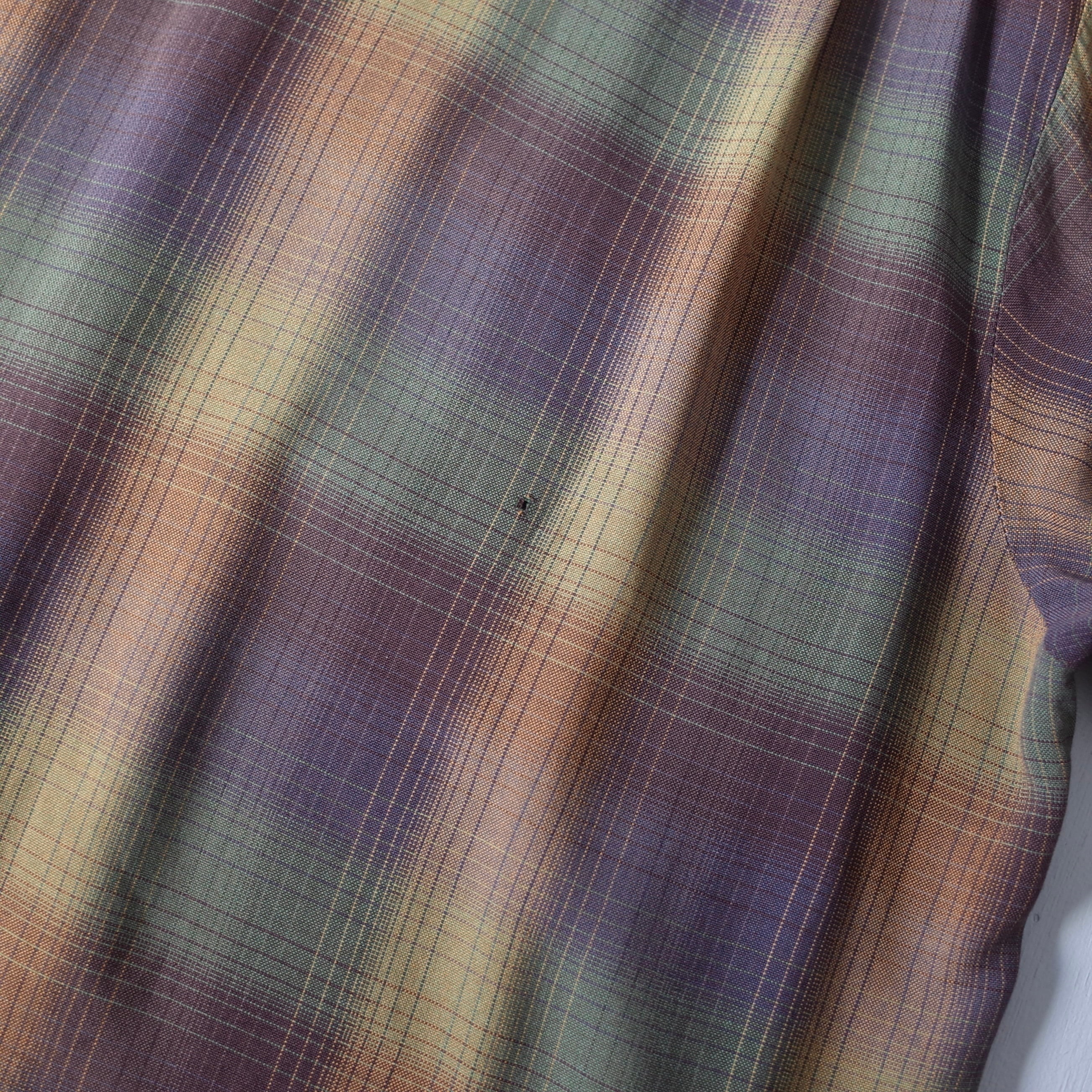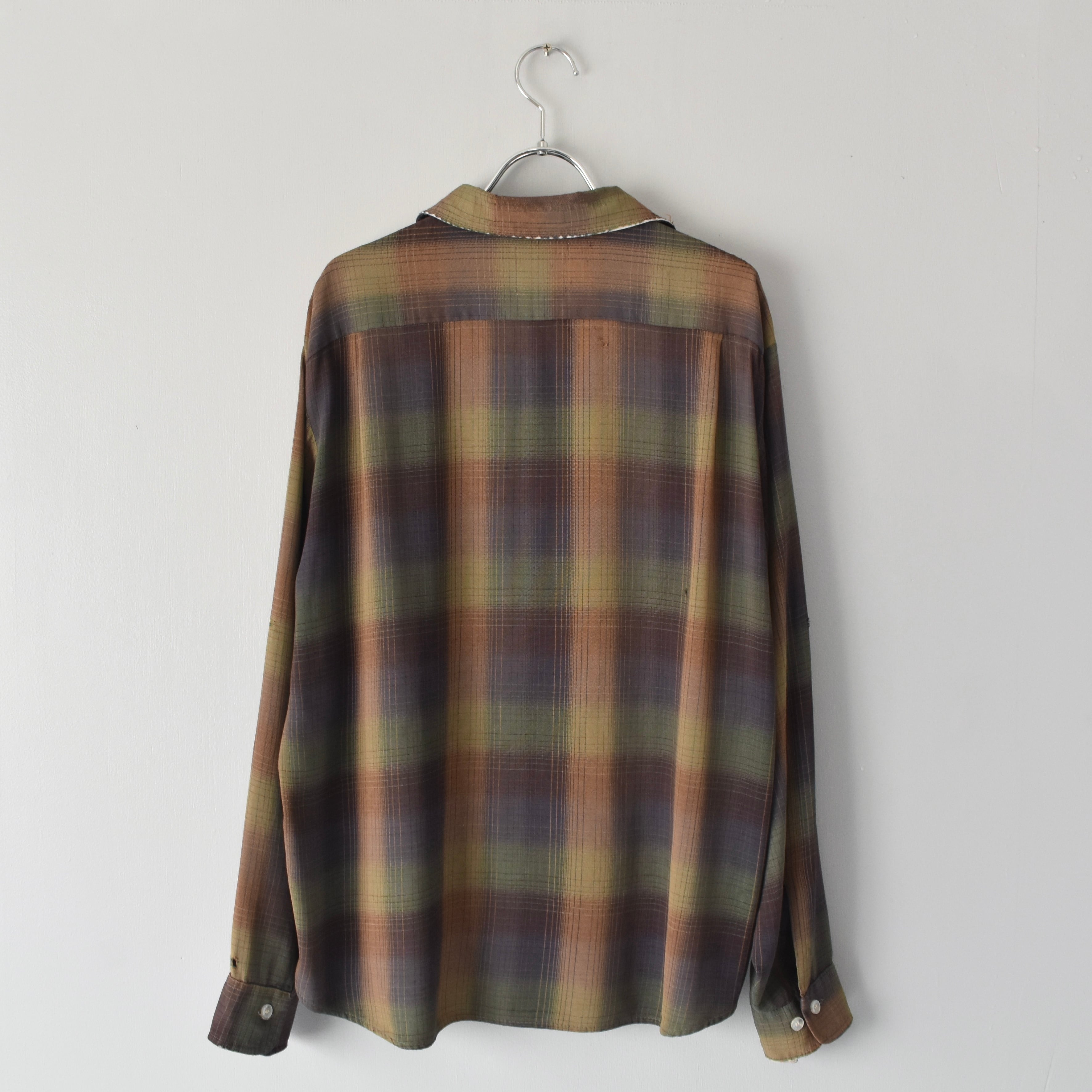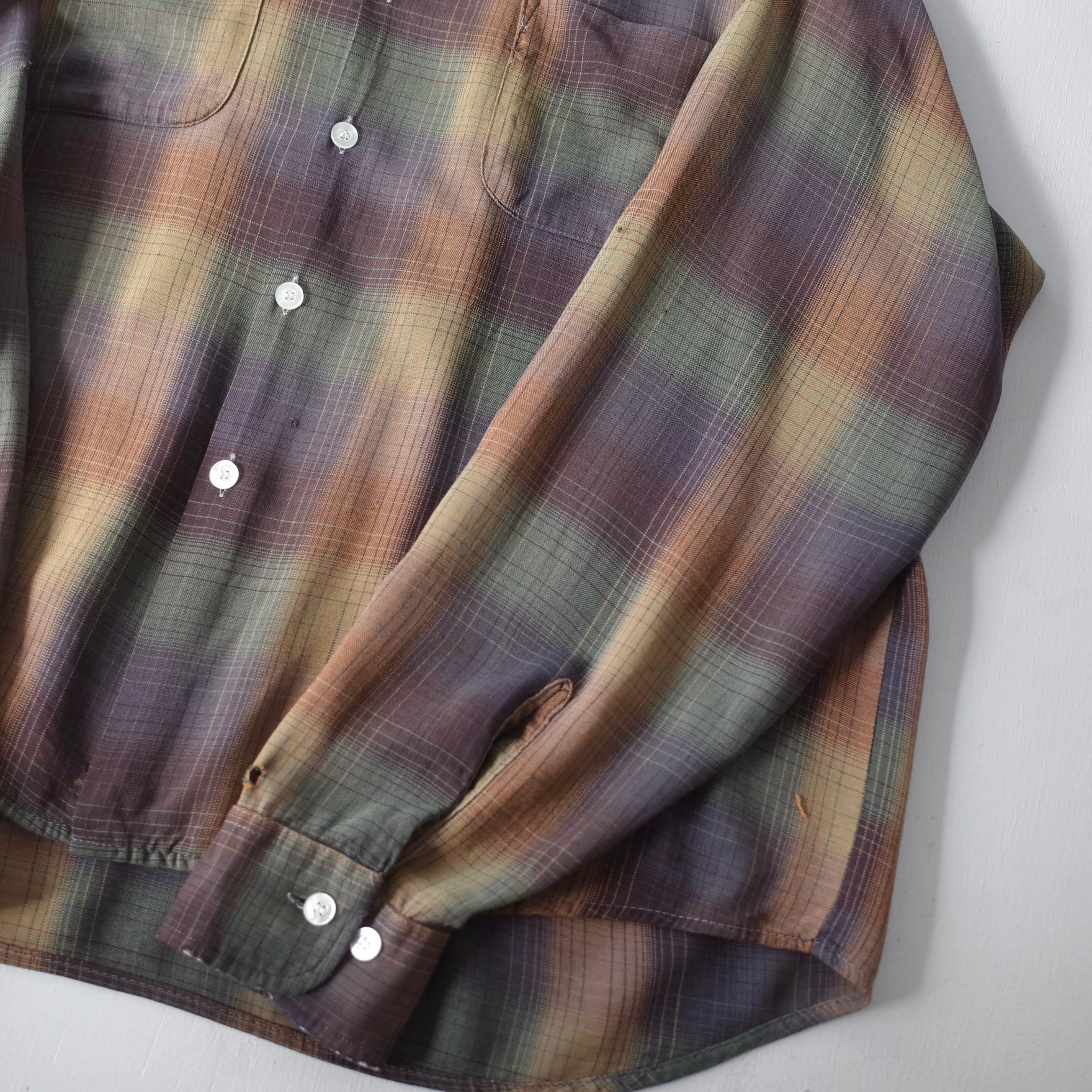 【VINTAGE】 "SEARS" 60’s~ Ombre Check Rayon Open Collar Shirt l/s