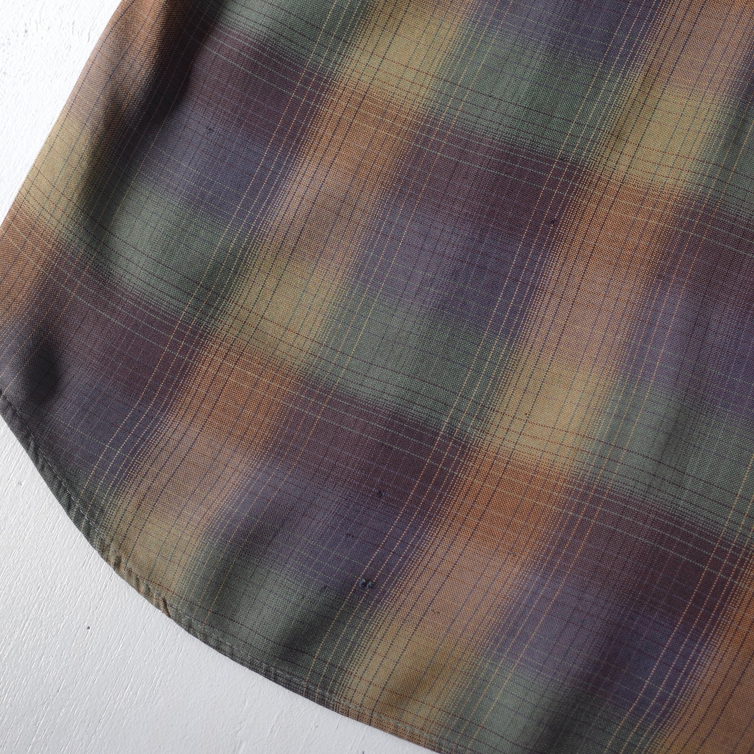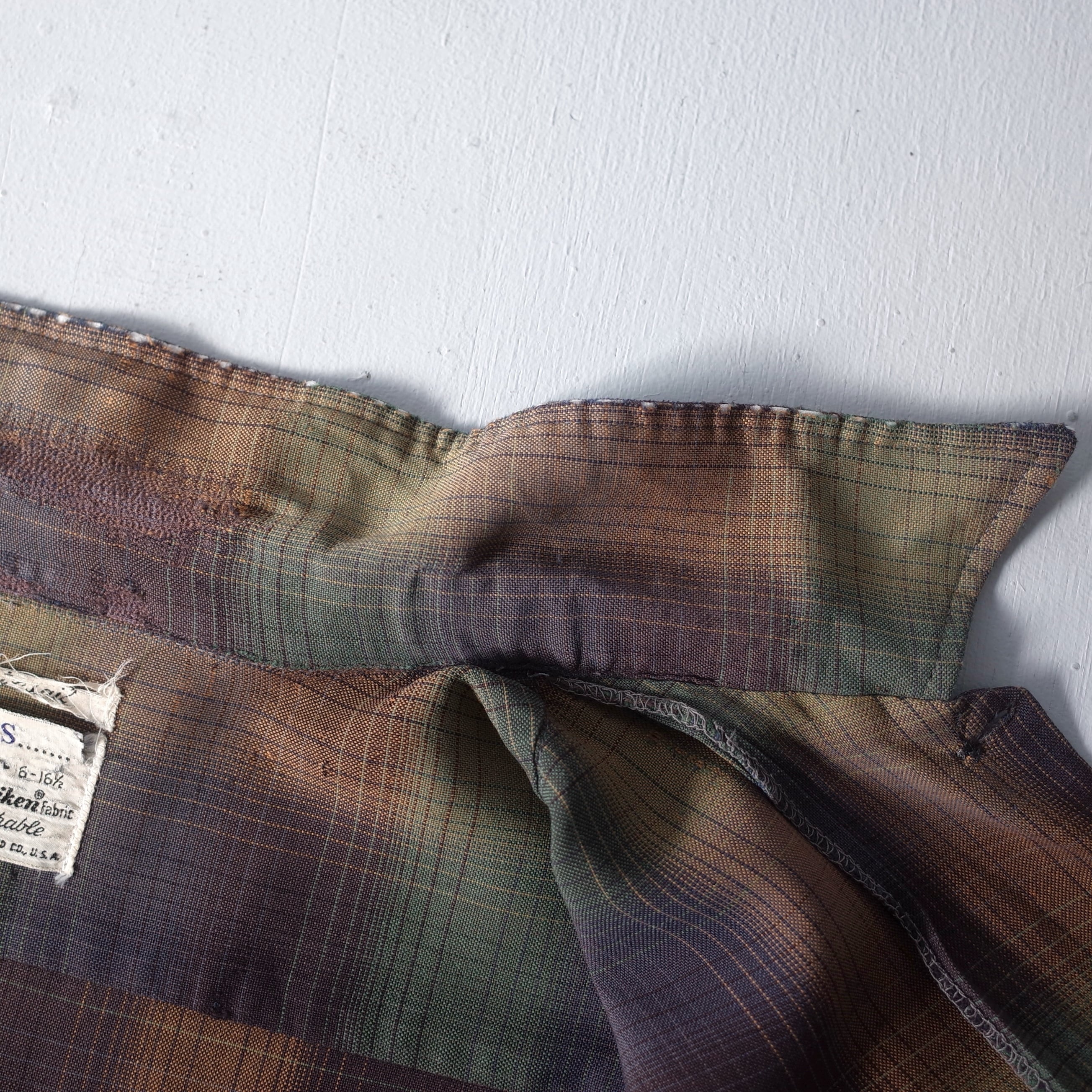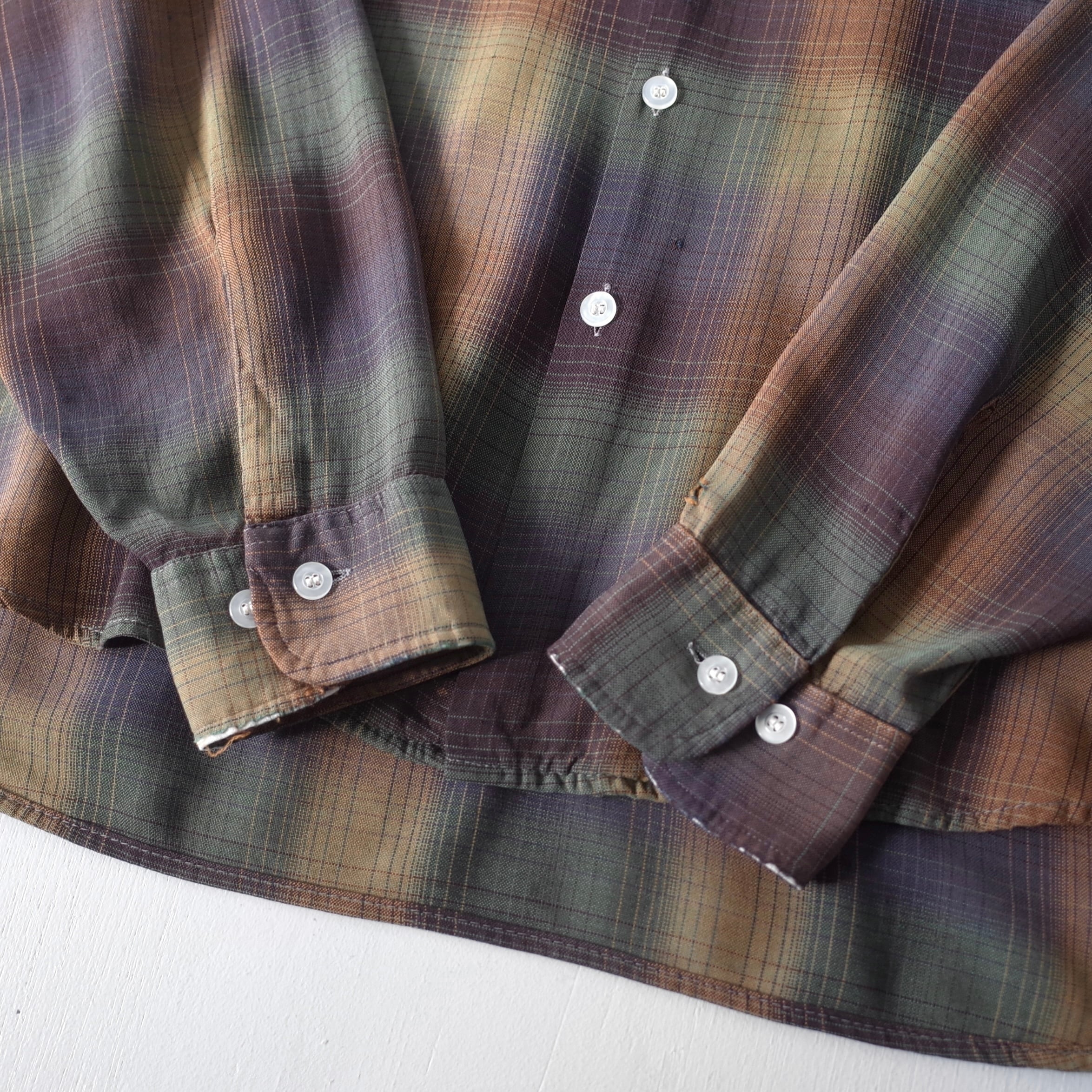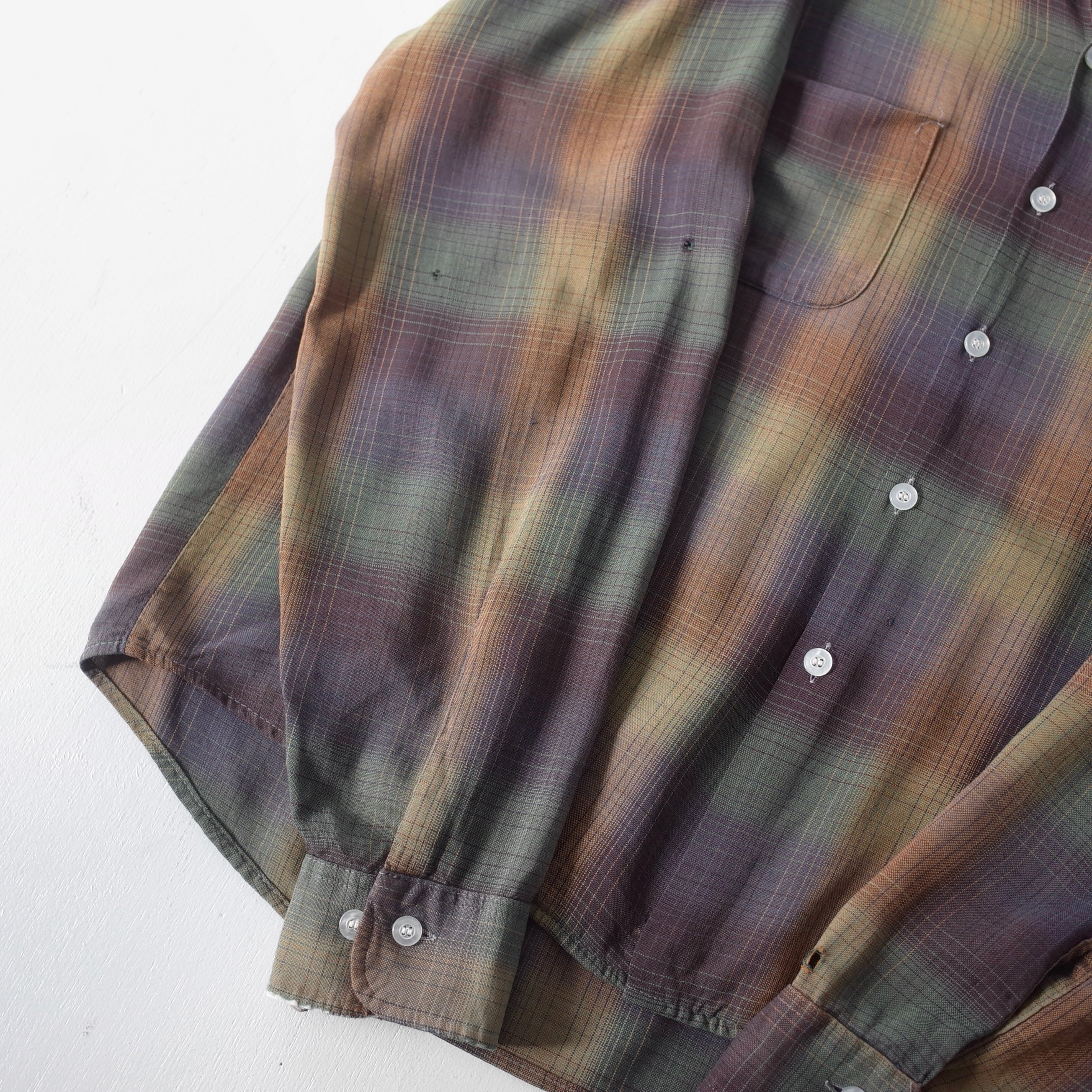 【VINTAGE】 "SEARS" 60’s~ Ombre Check Rayon Open Collar Shirt l/s