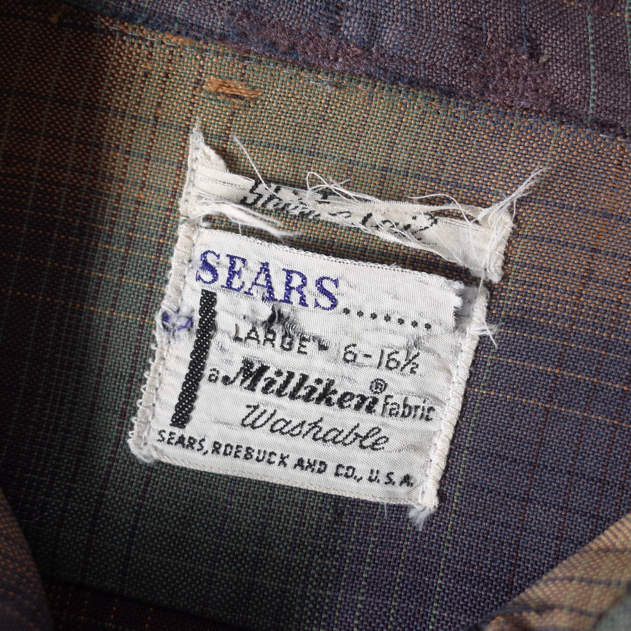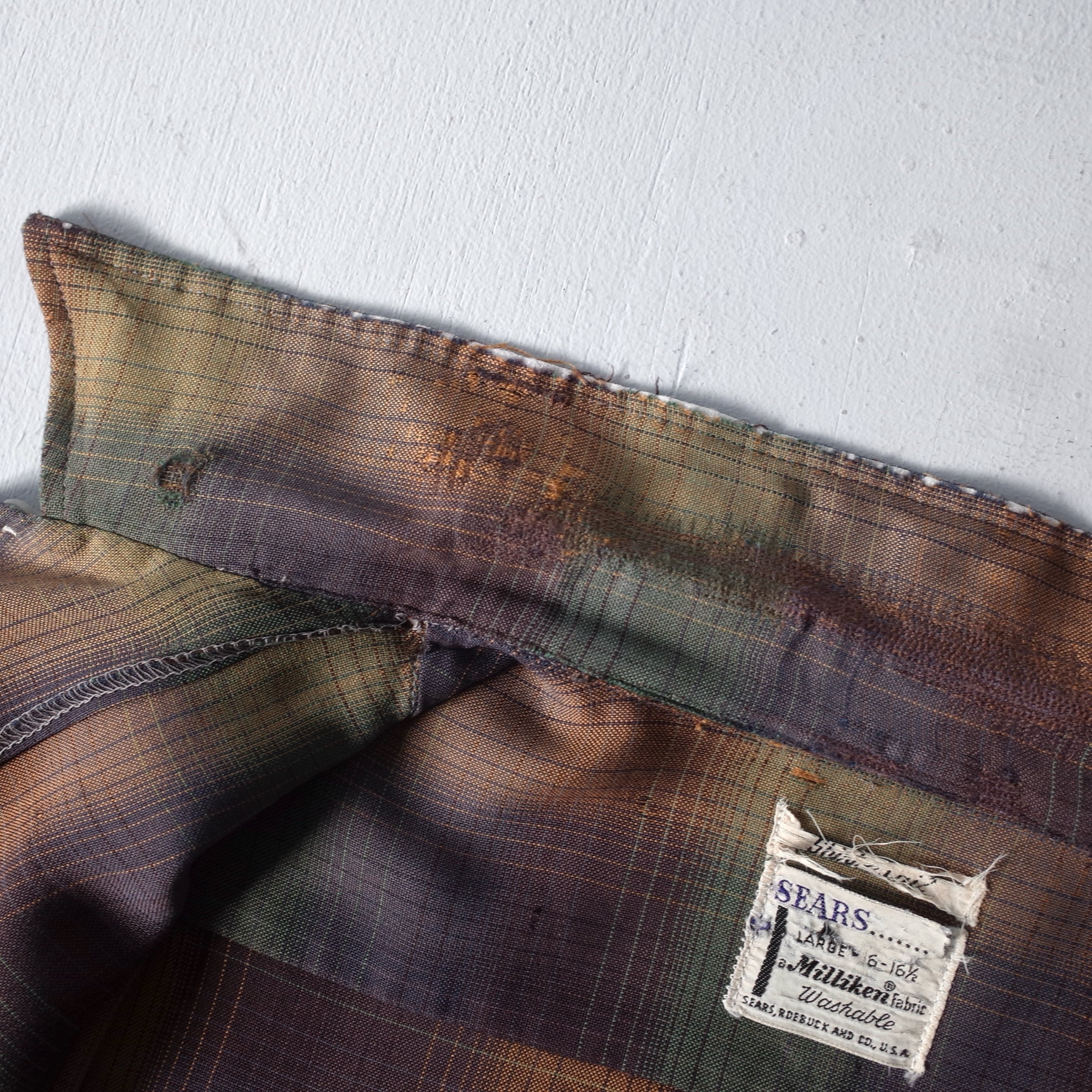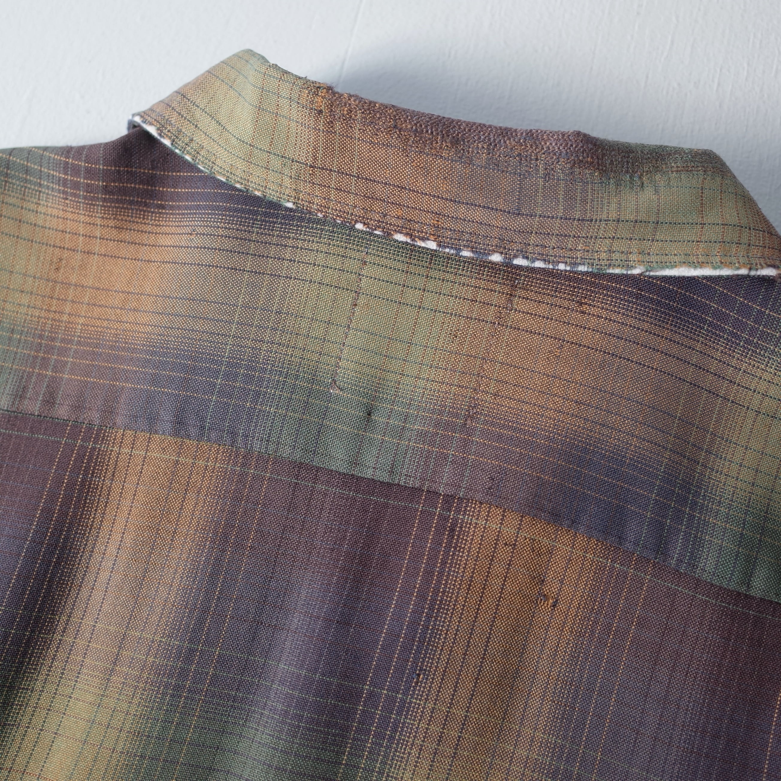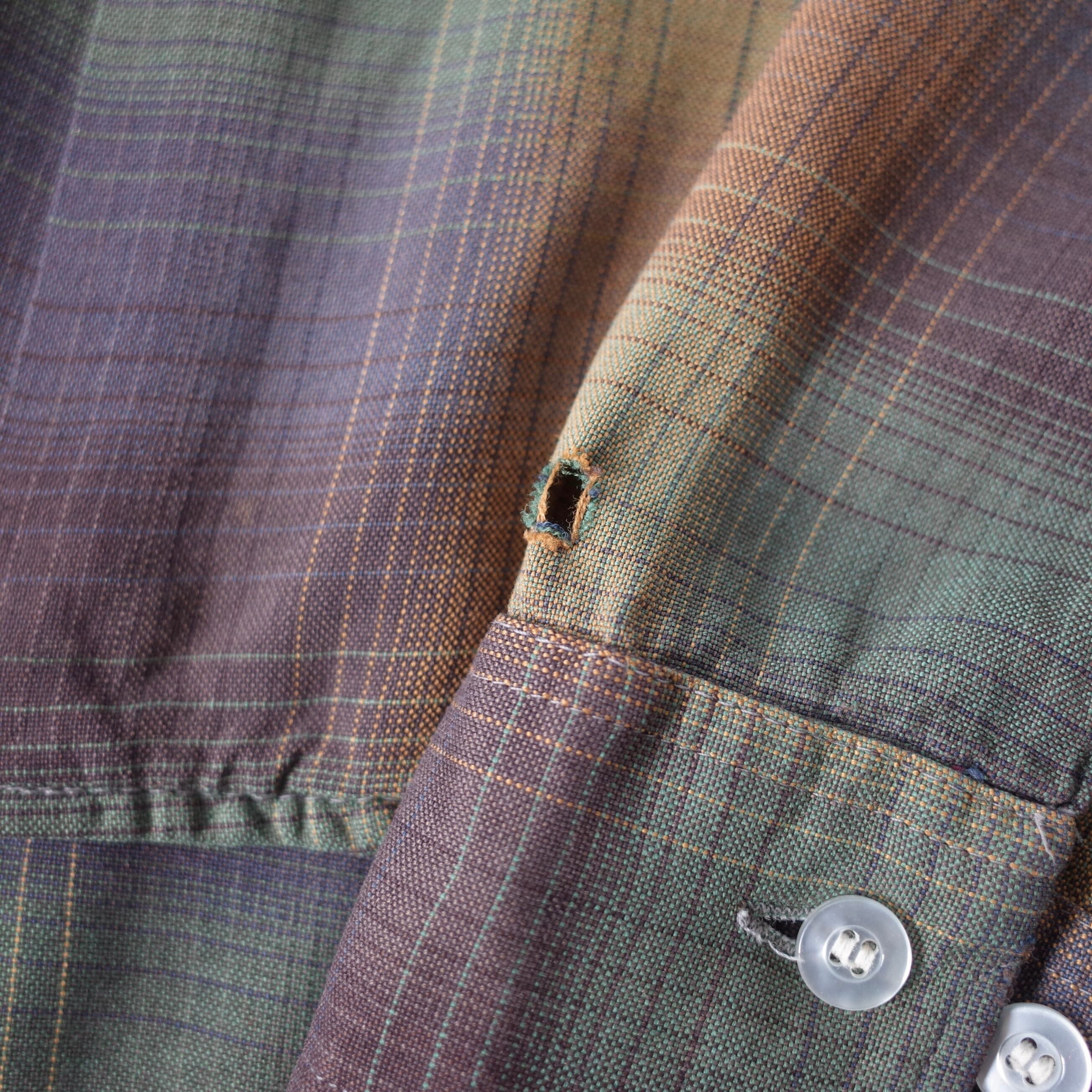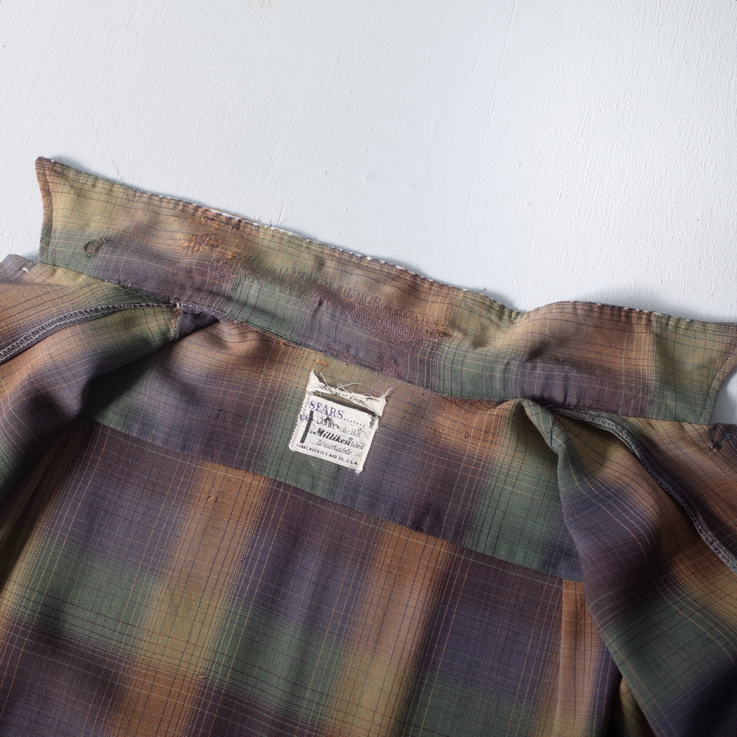 【VINTAGE】 "SEARS" 60’s~ Ombre Check Rayon Open Collar Shirt l/s