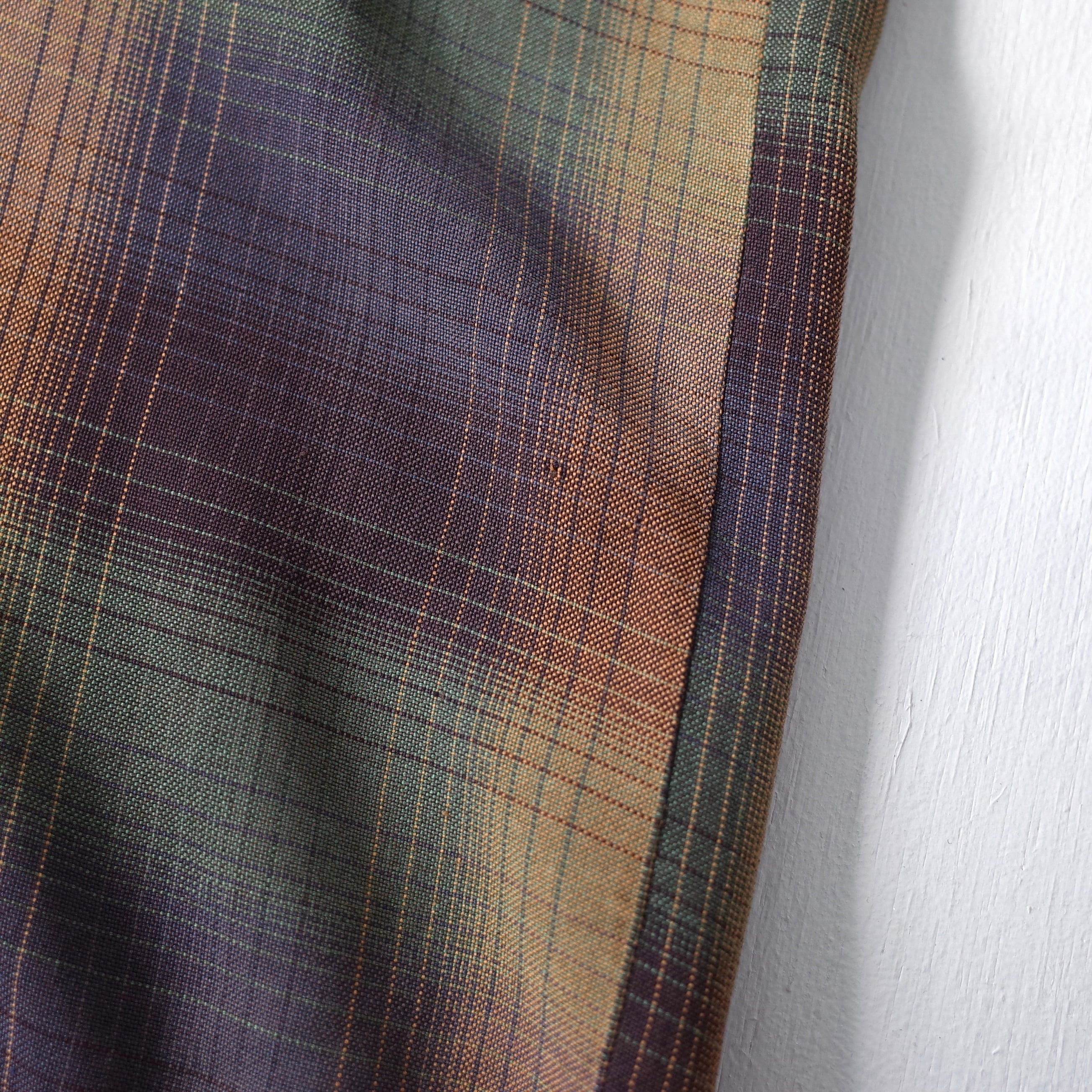 複数の色がグラデーションの様に混ざり合った、穏やかで温もりある表情を見せるオンブレチェックレーヨン。米国3大ストアブランド"Sears"による1960年代の逸品。