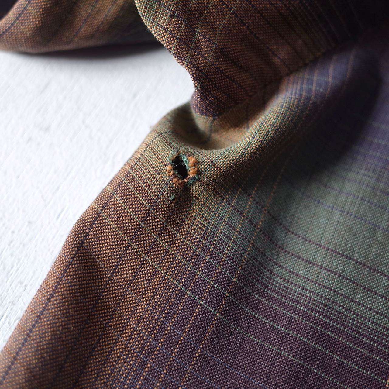 CONDITION C (ヴィンテージ、襟リペア跡、右胸ポケットステッチほつれ、所々ホール)