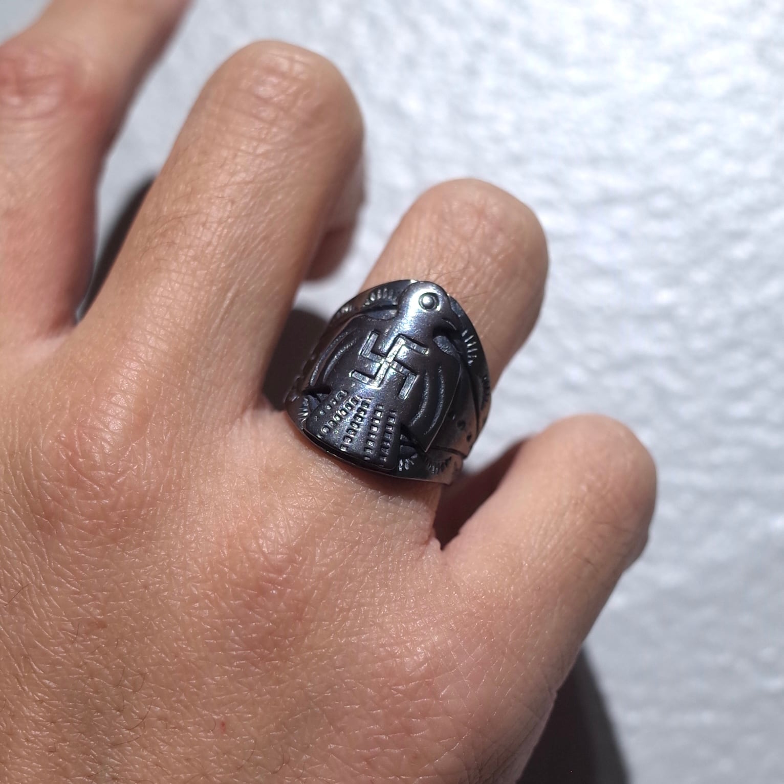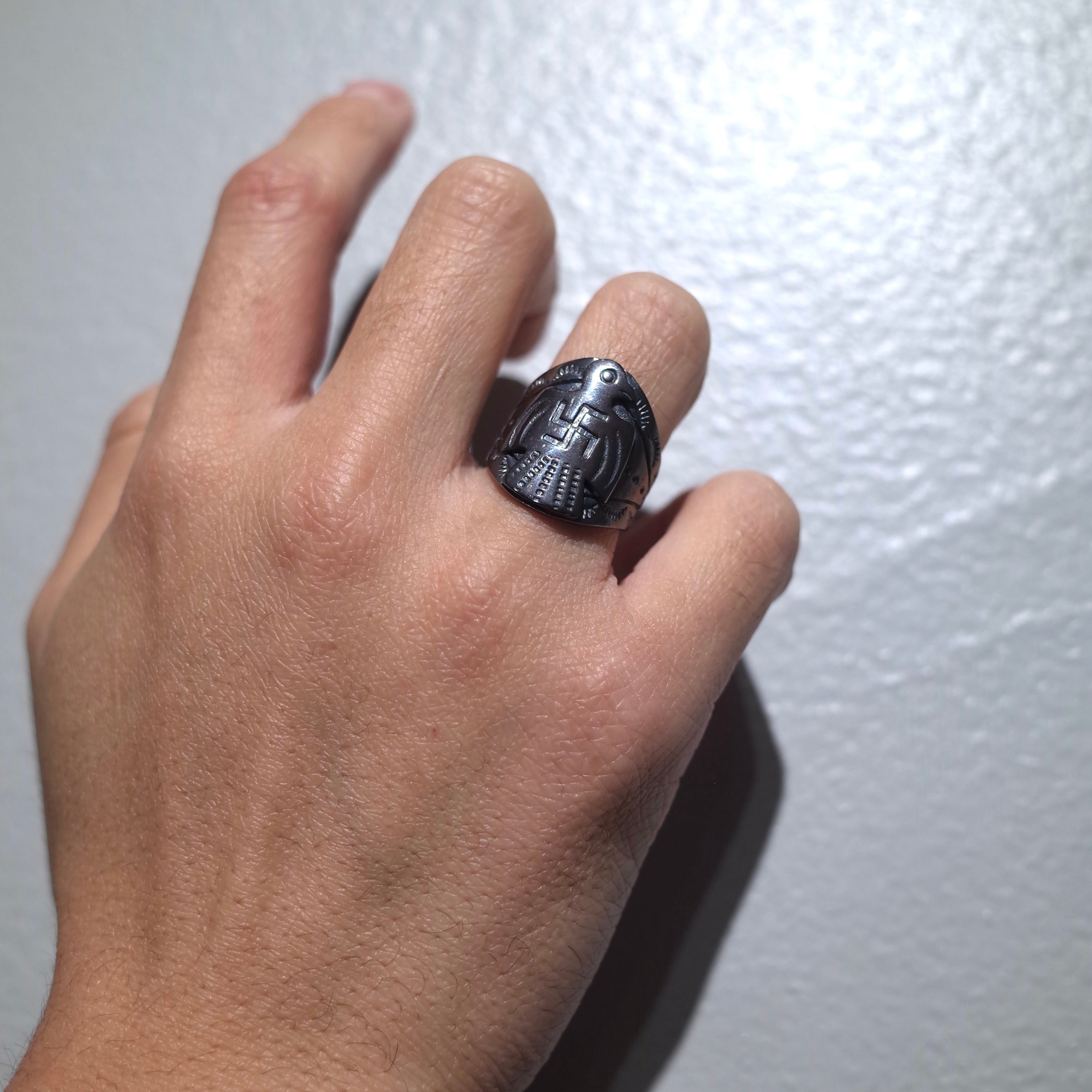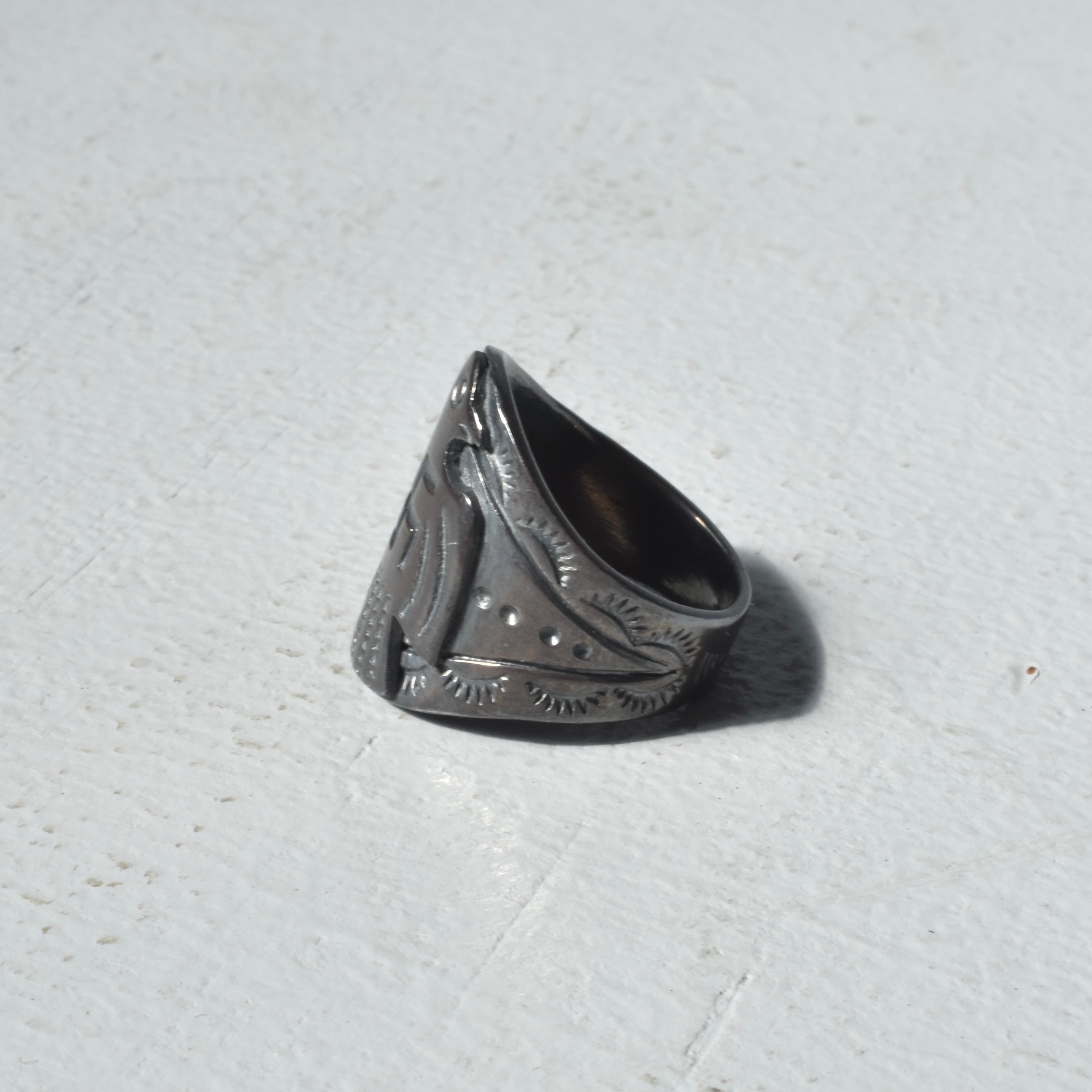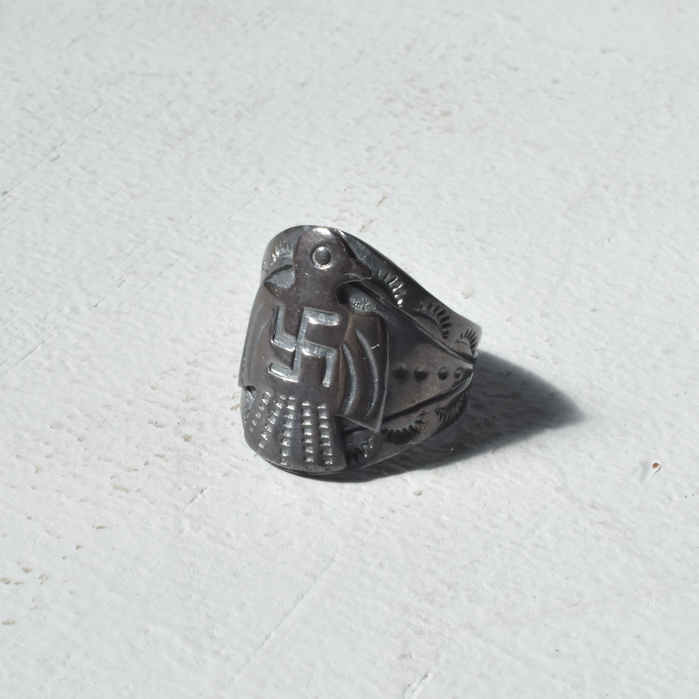 人々を守る雷の精霊『サンダーバード』と、幸運・幸福を意味する『スワスティカ』がデザインされたリング。大変縁起が良いデザインで御守りとして身につけても◎