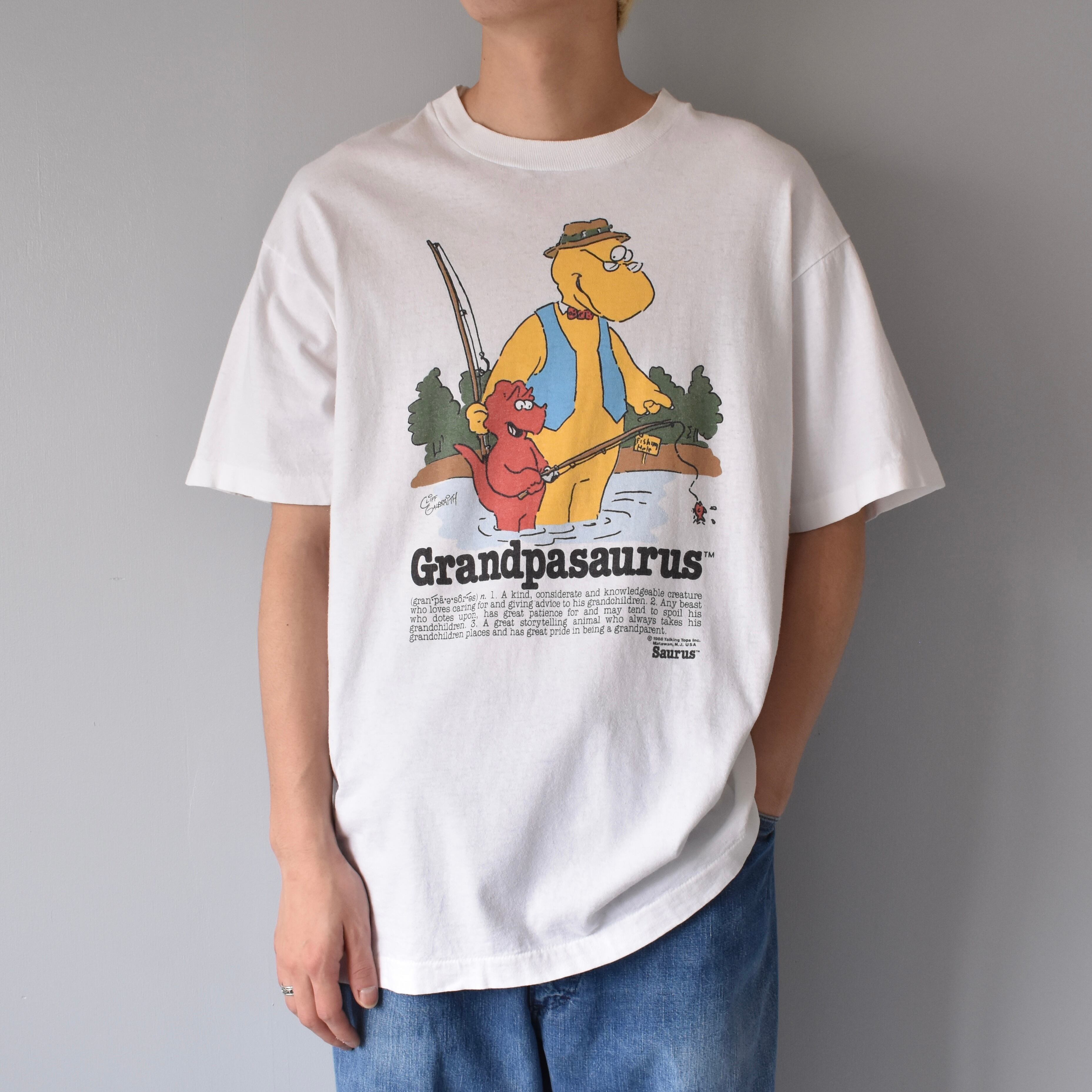 【VINTAGE】 "Grandpasaurus" 90's~ Made In USA Front Printed T-shirt s/s