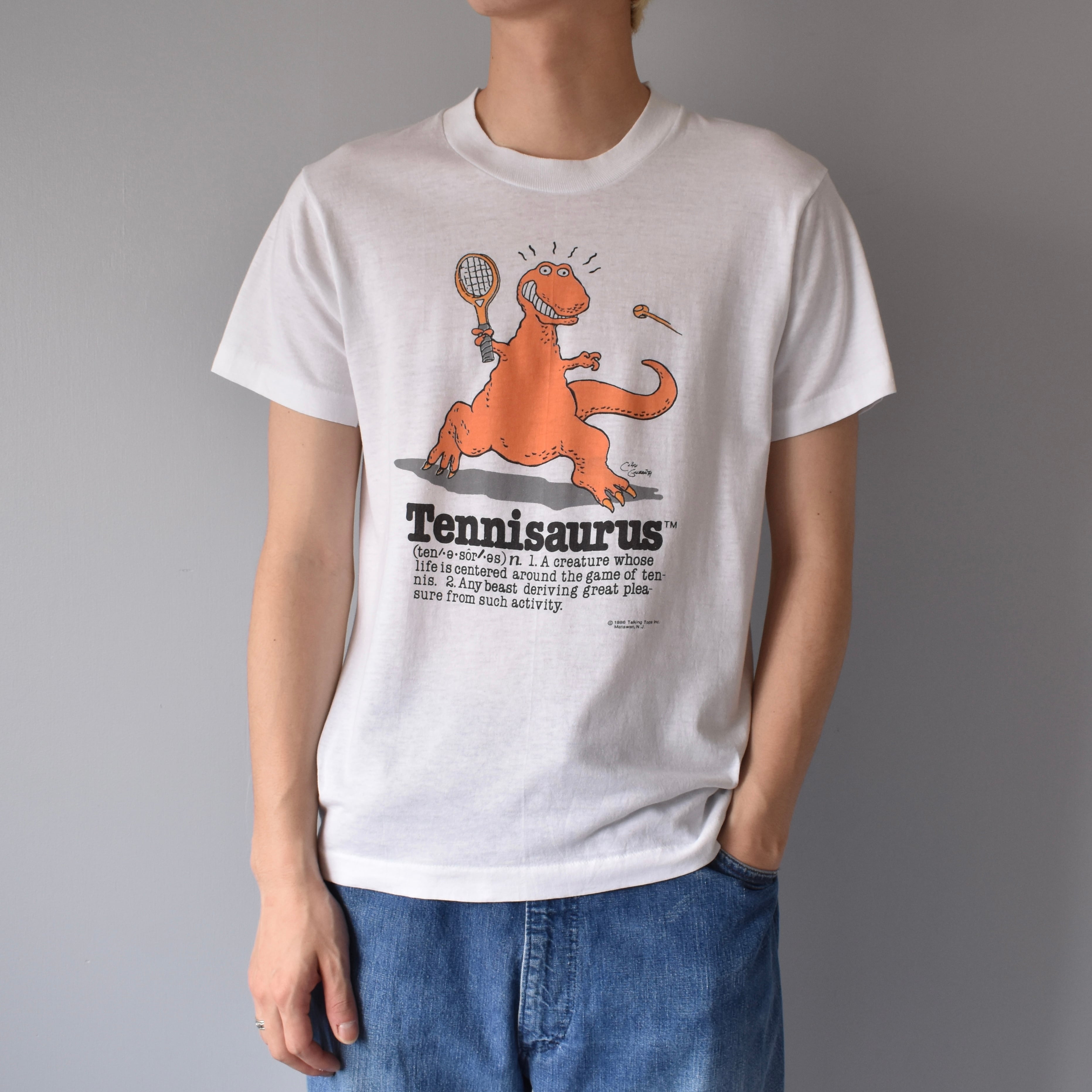 【VINTAGE】 "Tennisaurus" 90's~ Made In USA Front Printed T-shirt s/s