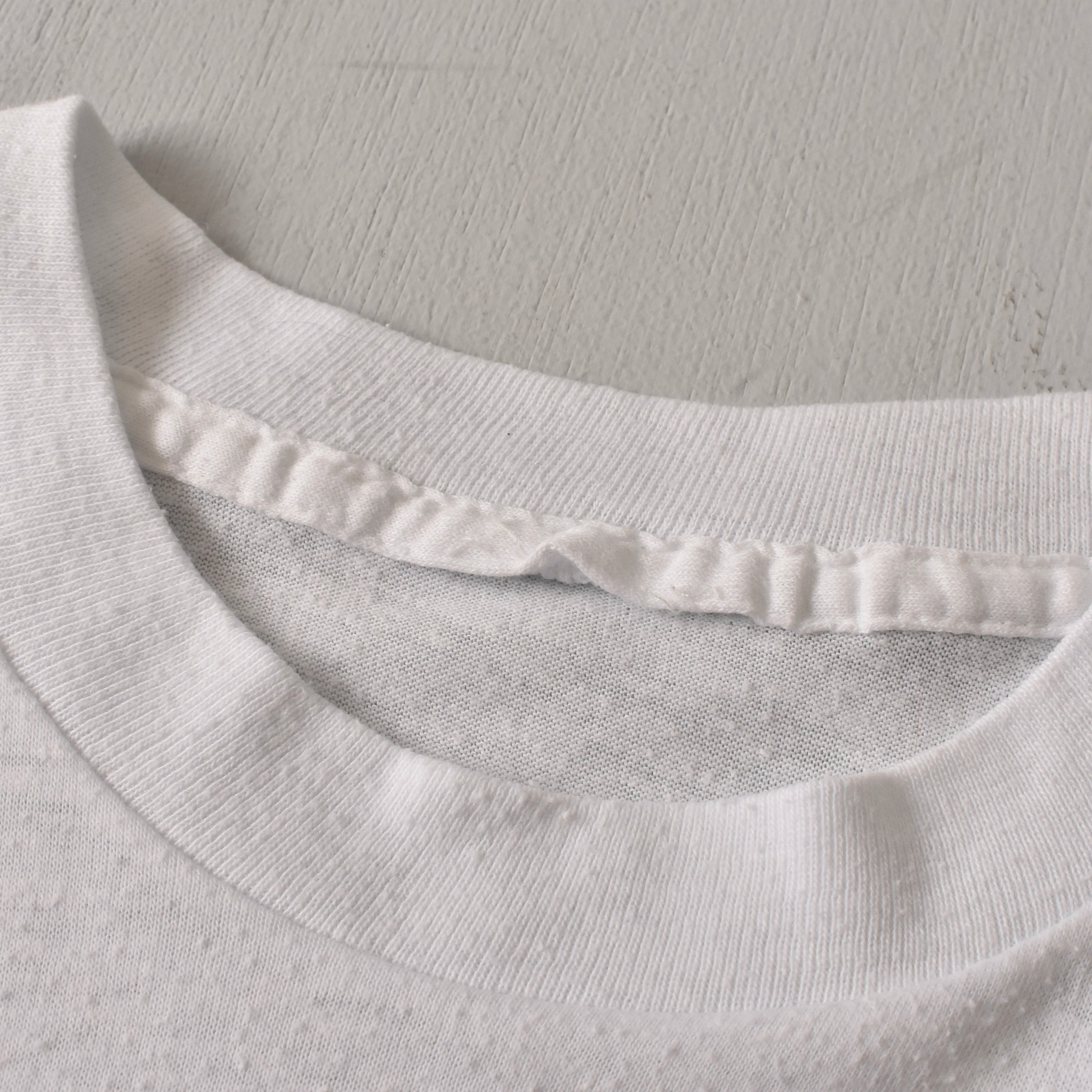 CONDITION B (使用感、プリント色移り、フロント汚れ、背面襟元ステッチほつれ、若干の毛玉感)