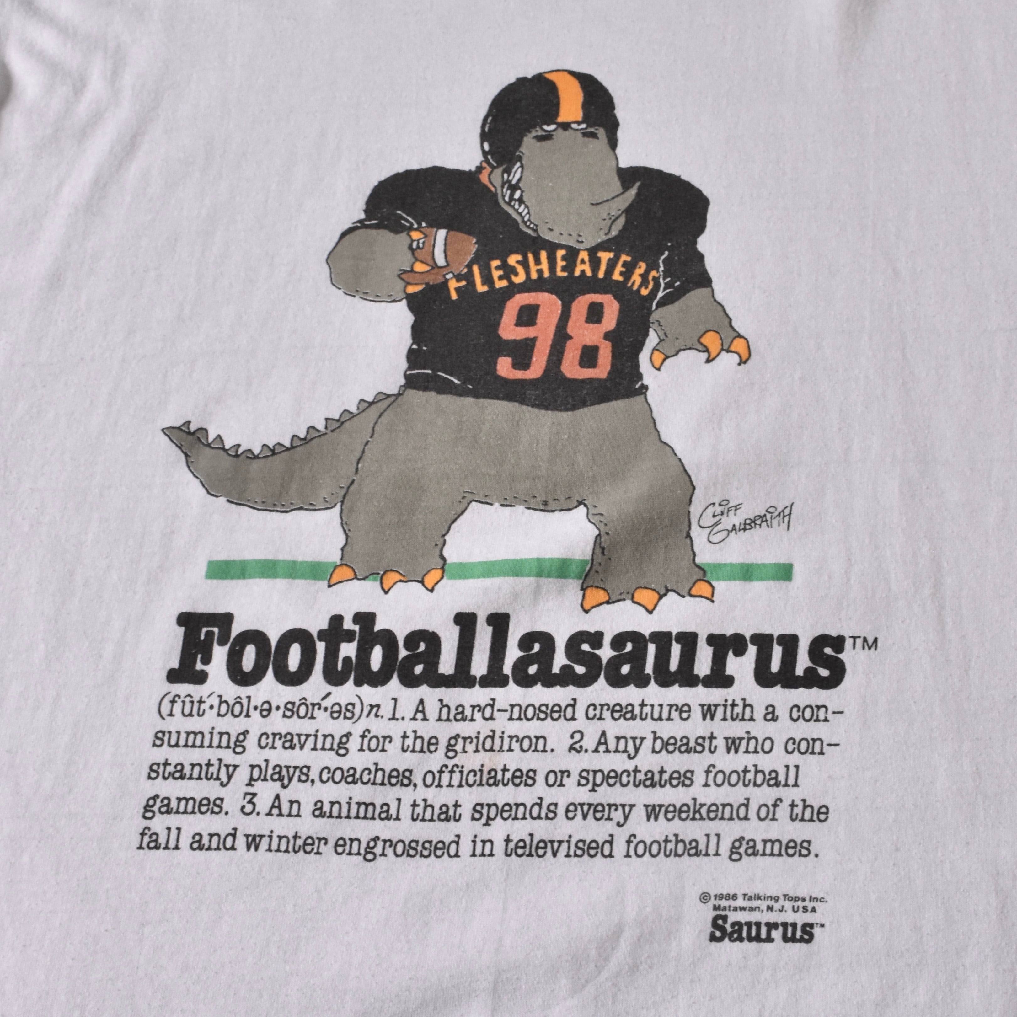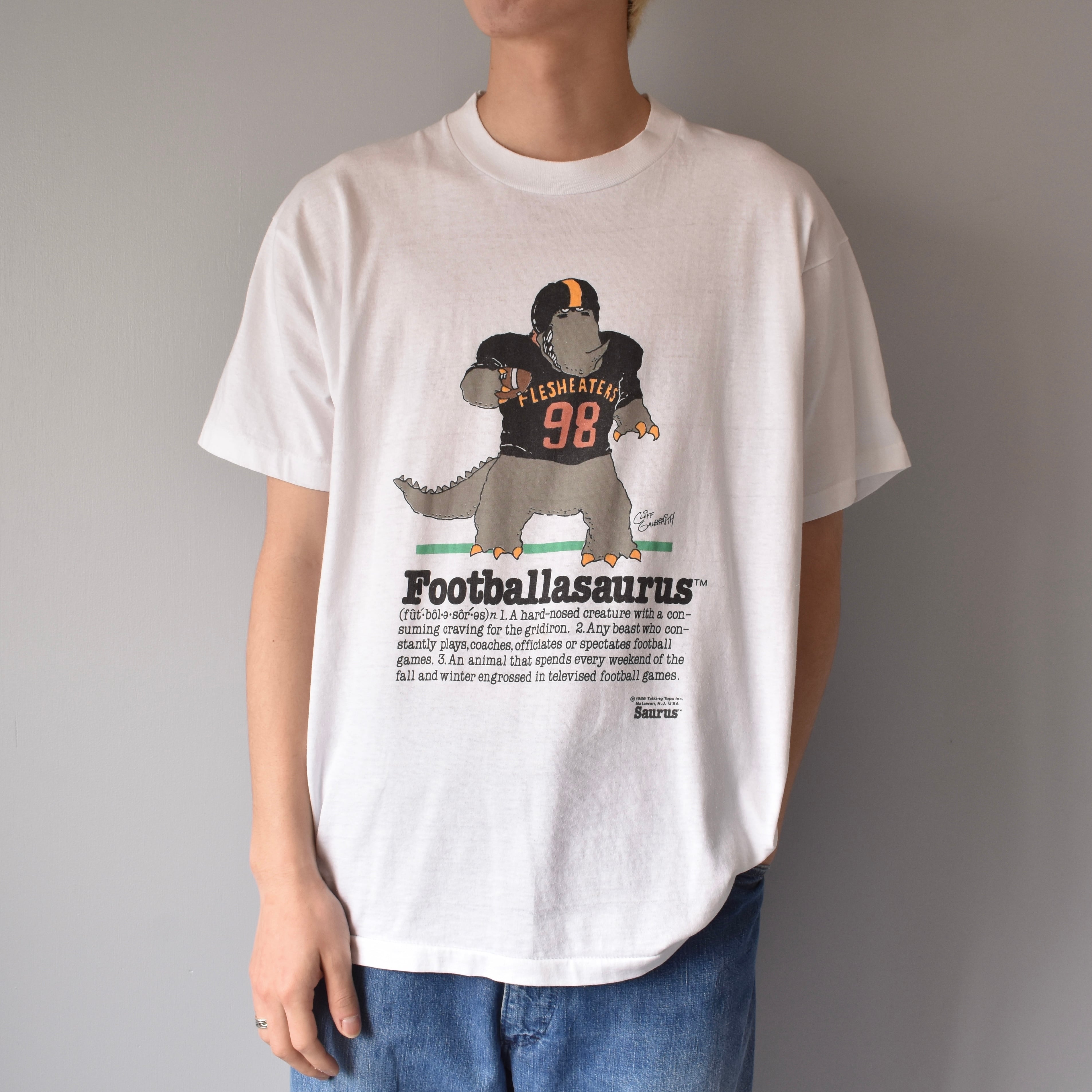 【VINTAGE】 "Footballasaurus" 90's~ Made In USA Front Printed T-shirt s/s