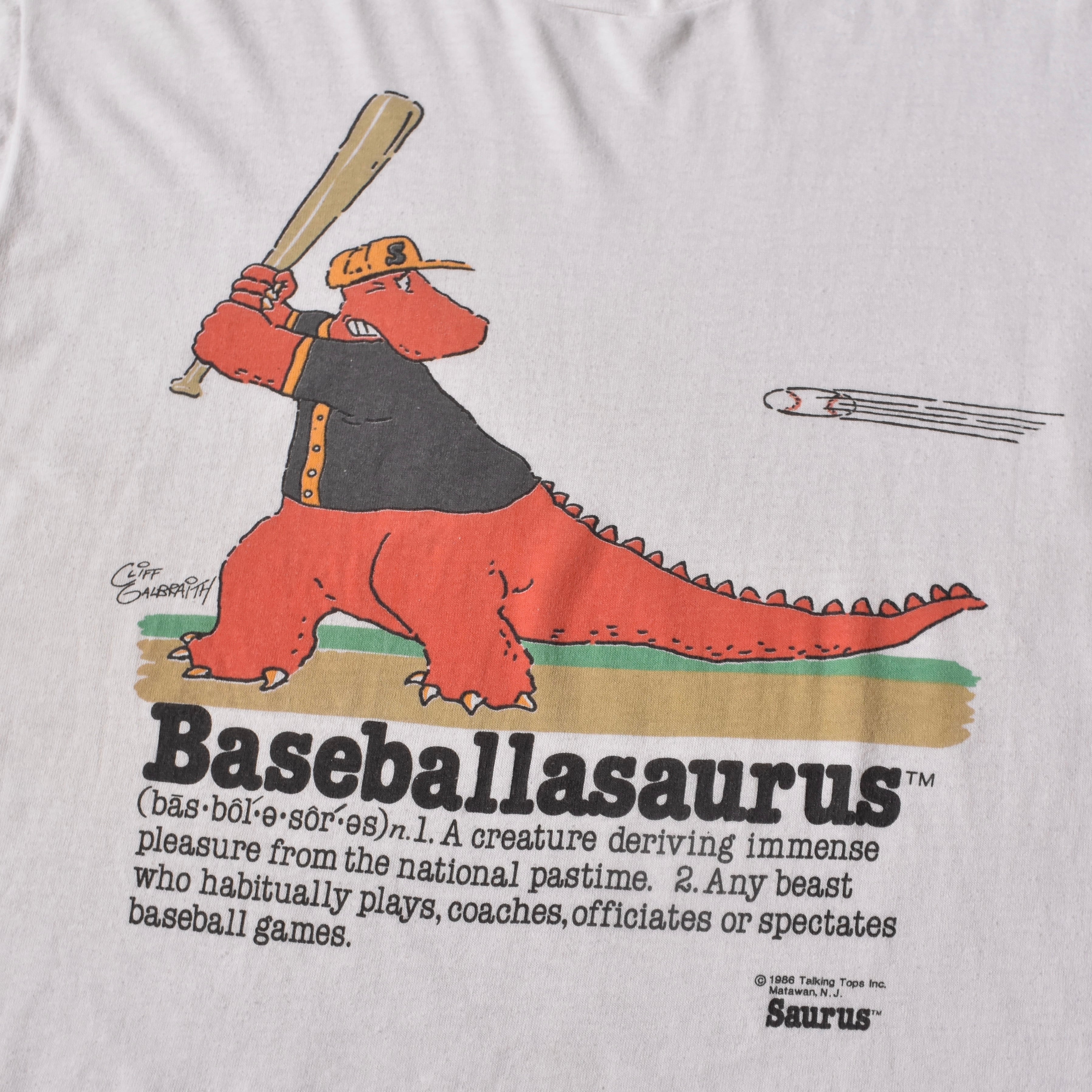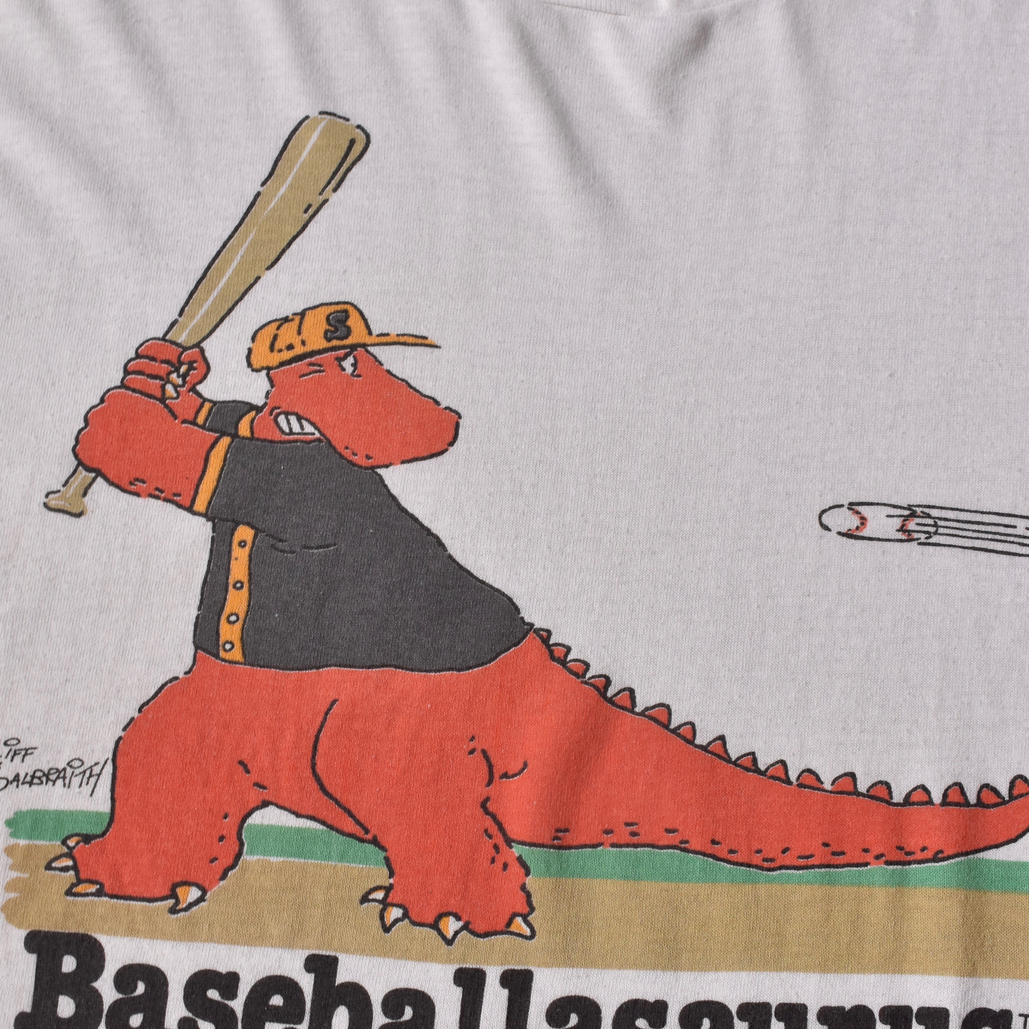 【VINTAGE】 "Baseballasaurus" 90's~ Made In USA Front Printed T-shirt s/s