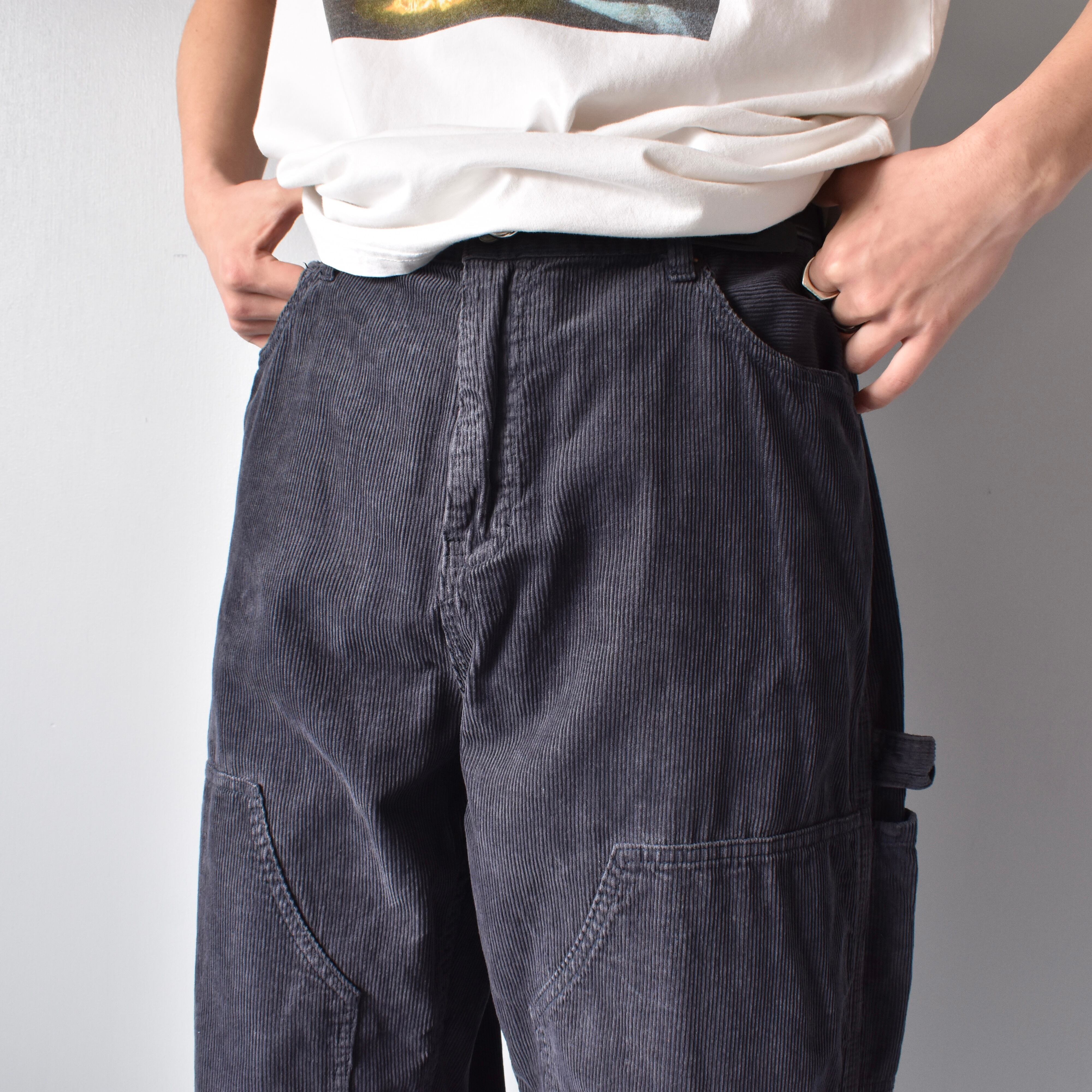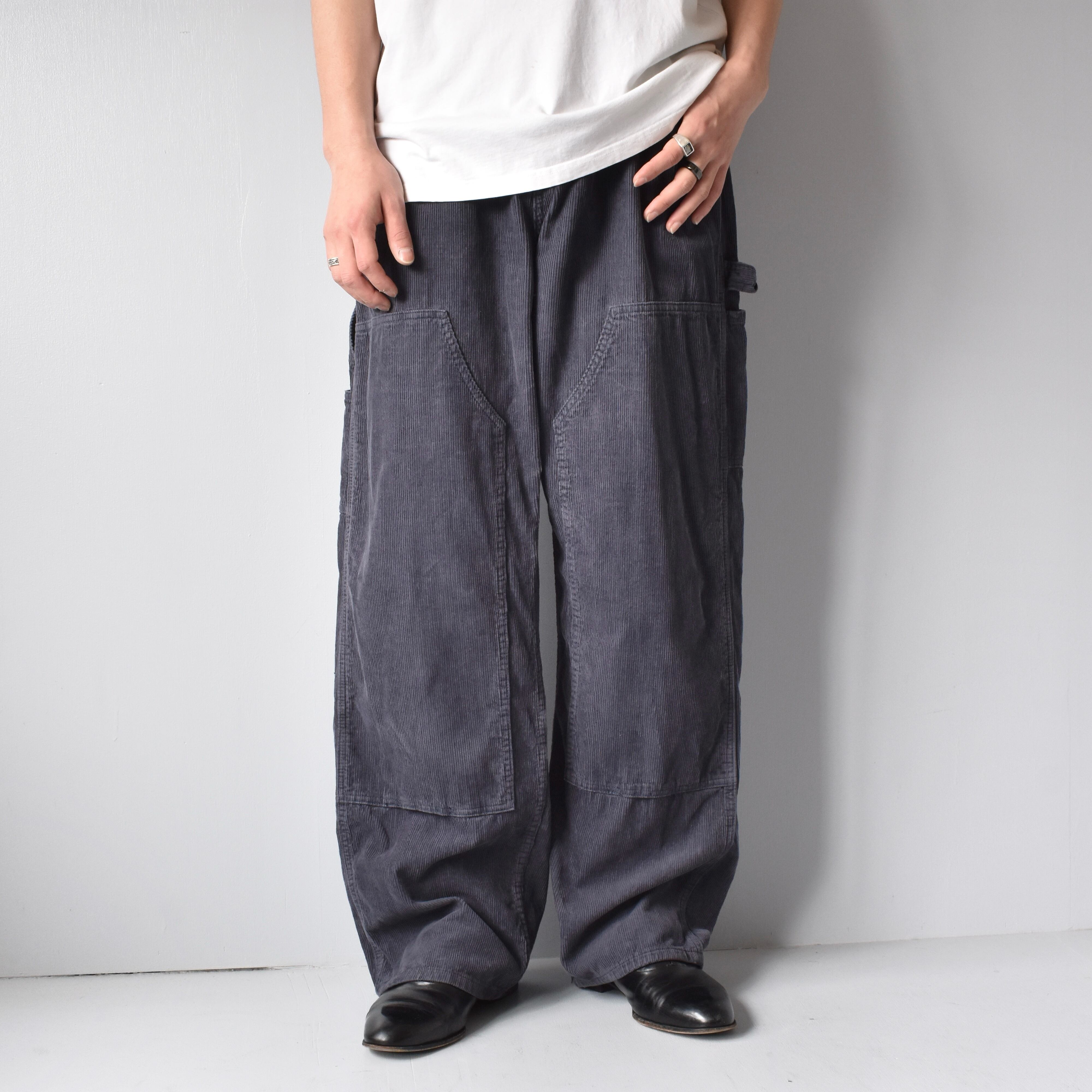 Corduroy Fabric Double-Knee Baggy Pants